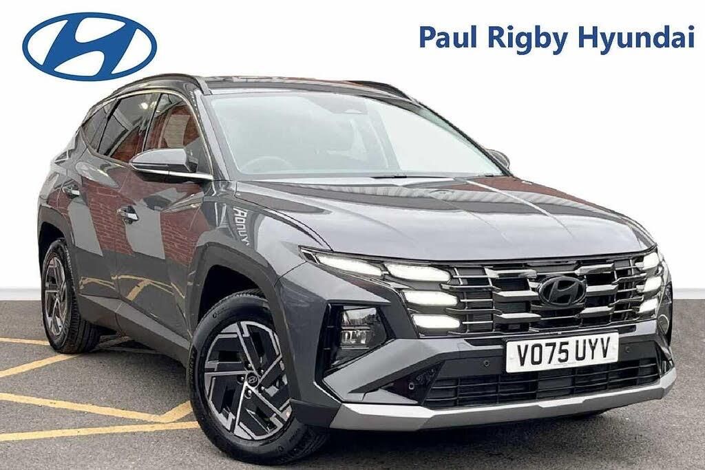Adjustable intermittent front windscreen wipers with aero wiper blade, Automatic defog system, Automatic windscreen wipers with rain sensor, Front and rear electric windows with anti-trap mechanism and one touch control, Privacy glass - Rear windows and tailgate, Rear wash/wipe with intermittent wipe setting, Tinted glass with windscreen shade band, Black wheel arches, Body colour bumpers, Body colour exterior door handles, Rear side wing doors, Roof rails, Soft touch rear door paneling, Automatic headlights with dusk sensor, Follow me home headlights, Front fog lights, LED 3rd brake light, LED daytime running lights, LED Headlights, LED rear lights, Positioning Lights - LED, Anti-lock brake system (ABS), Brake assist function, Downhill brake control, Electric parking brake, Electronic stability control, Hill start assist control (HAC), Multi-Collision braking, Traction control, Vehicle stability management, Cruise control, Drive mode selector, Driver attention warning, Emergency stop signalling system, Forward Collision Avoidance Assist (FCA) - Car, Pedestrian and Cycle, Front and rear parking sensors, Intelligent speed limit assist, Lane follow assist, Lane keep assist, PAS, Rear camera and guidance parking system, Auto dimming rear view mirror, Body colour door mirrors with integrated indicators, Electrically adjustable, heated and power folding door mirrors, 3x3 point rear seatbelts, Active bonnet, Airbag - Front, front side, curtain and centre front airbags, Childproof rear door locks, Curtain airbag roll over sensor, Front and rear seatbelt reminder, Front passenger airbag deactivation switch, Front seatbelt pretensioners, Outer rear seatbelt height adjustment, Seatbelt height adjustment for front seats, Tyre pressure monitoring system with individual tyre pressure display - TPMS, Bluetooth system, E-call, Voice recognition, Wireless Apple CarPlay/Android Auto, Wireless phone charging pad, 2 front and 2 rear speakers with 2 tweeters, 2 front and 2 rear USB-C ports, DAB Digital radio, Steering wheel mounted audio/phone controls, Hyundai road side assistance, 12.3'' LCD display with driver's supervision instrument cluster, 12.3'' widescreen navigation with bluelink and mapcare, Digital clock, Over the air updates(OTA), Rev counter, Tailgate open warning light, Trip computer, Trip odometer, Water temperature gauge, Windscreen washer fluid sensor and warning indicator, Dual zone climate control, Touch sensitive climate controls with temperature dials, 12V power outlets in front console and luggage compartment, Cupholders in rear armrest, Front and rear door pockets, Front armrest with storage box, Front centre console and door bottle holders, Height/reach adjustable steering column, Illuminated/air conditioned glove compartment, Leather wrapped steering wheel and gear knob, Luggage cover, Luggage hooks, Luggage net, Premium cloth upholstery, Retractable load cover, Sunglasses holder, Underfloor boot compartment, 64 colours interior ambient lighting, Door courtesy lights, LED interior lighting, Luggage compartment lighting, Map and reading lights, Driver and passenger sunvisors with illuminated LED vanity mirrors, Trailer wiring package - Tucson, 3 seat bench in 2nd row, 40/20/40 split folding rear seat, Adjustable head restraints (Up and down), Driver's seat manual height adjust, ISOFIX child seat anchorage points attached on outer rear seats, Manual height adjustable front passenger seat, Rear seat remote folding function, Reclining rear seats, Single front passenger seat, Deadlocks, Immobiliser, Locking wheel nuts, Remote control central locking, Smart key with keyless entry and engine start/stop button, Speed sensitive auto door locking, Thatcham category 1 alarm, Trailer stability assist, Charging cable - 7 pin type 2, Charging cable - Emergency 3 pin connector mode 2 (ICCB), 17'' Alloy wheels, Tyre repair kit