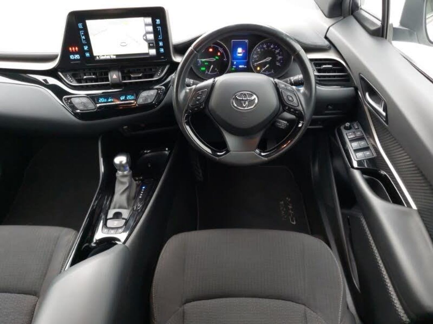 Touch 2 Go navigation system, Reversing camera display in audio screen, Reversing camera, Intelligent parking assist with front & rear parking sensors, Parking pack - C-HR, Adaptive cruise control, 18" 5 double spoke matt black alloy wheels, 8" touch screen, Dual zone automatic air conditioning, Lane departure alert with steering control, 7" Coloured TFT multi informational display, Lane change assist and blind spot monitor, Rear cross traffic alert, Push button starter, Lights on warning, Electric power steering, Bluetooth connectivity, Adjustable speed limiter, Voice recognition, Road sign assist - RSA, Vehicle Stability Control (VSC), Wi-fi connectivity, USB and Aux in connectors + 12V front outlet, Steering wheel mounted controls, DAB Radio (Digital Audio Broadcasting), 6 speakers, Door mirror puddle lights, Boot door release with push button, Body coloured bumpers, Body colour door mirrors, Body colour door handles, Bi-tone black roof, Automatic retractable door mirrors, Automatic headlights, Automatic headlight levelling, Auto high beam, Electric folding/heated door mirrors with integrated indicators, Electrochromatic rear view mirror, Follow me home headlights, Front and rear electric windows, Heated rear windscreen, Intermittent wipe, LED daytime running lights, LED front fog lights, LED headlights with sequential LED indicators, LED High mounted stop lamp, LED rear brake lights, LED rear lights, Rain sensitive windscreen wipers, Rear privacy glass, Rear spoiler, Rear wiper, Shark fin antenna, Trailer sway control, Leather effect padded armrest on front console box, Isofix seat fixing, Illuminated entry system, Illuminated door sills, Heated driver and front passenger seats, Hard tonneau cover, Glovebox with internal light, Gear shift indicator, Front head restraints, Front cupholders x 2, Front console box and front cupholders, Front and rear door pockets, Folding rear seats, 12V Accessory socket, Ambient lighting, 3 spoke leather steering wheel with multimedia switches, Chrome interior door handles, Clean air filter, Cloth upholstery, Driver + front passenger electric lumbar support, Driver and front passenger personal light, Driver and front passenger Whiplash Injury Lessening seats, Driver/passenger sunvisors and illuminated vanity mirrors, Tyre pressure monitoring system, Toyota safety sense, Supplemental restraint system (SRS) airbags - 7 airbags including driver, front passenger, curtain, side and knee airbags, Road sign information display, Rear child proof door locks, Pre collision system with pedestrian detection, Hill start assist control (HAC), Front passenger airbag on/off switch, Front and rear seatbelt reminder, ESP + traction control, Electronic parking brake, ABS+EBD+Brake assist, 3x3 point rear seatbelts, Remote central locking, Motion sensor alarm, Intrusion alarm, Immobiliser, Smart entry + Smart start, Silver dash inserts, Tyre repair kit