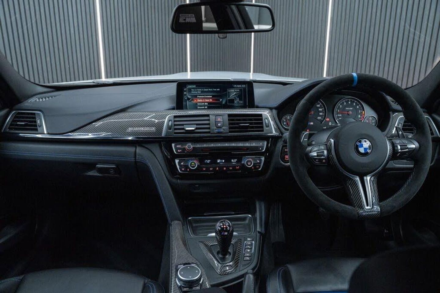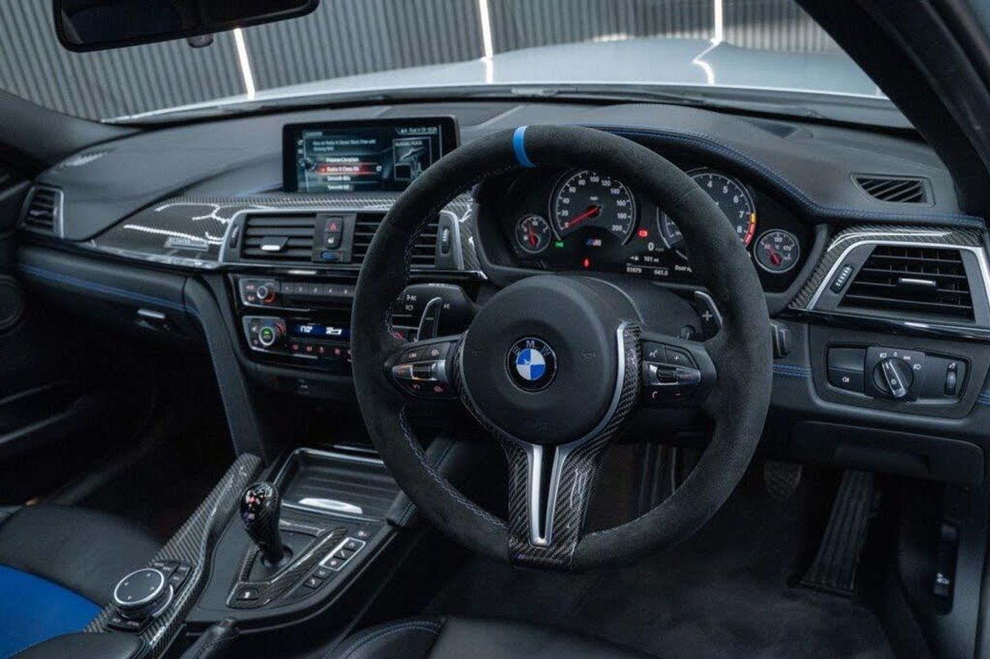 12V Power Socket in Front Centre Console and Passenger Footwell, 20in Alloy Wheels - M Light Star-Spoke Style 666M - Forged, 3.5mm Auxiliary Input Point in Centre Console for Auxiliary Playing Devices, 8 Programmable Favourite Buttons, Active M Differential, Adaptive LED Headlights with High-Beam Assistant, Adaptive M Sport Suspension, Advanced Parking Package, Air Breather, Air Conditioning - Automatic with Two-Zone Control, Airbags, Alarm System - Thatcham 1 with Remote Control and Engine Immobiliser, Alcantara Steering Wheel with 12 o Clock Mark, Armrest - Front - Folding with Storage Compartment, Automatically Dimming Rear View Mirror, BMW ConnectedDrive Online Services, BMW Emergency Call, BMW Individual High-Gloss Shadowline with Extended Contents, BMW M Foil Stripe on the Drivers Side of the CFRP Roof, BMW Professional Radio with Single CD Player - with MP3 Playback Compatibility, BMW TeleServices, Battery Safety Cut Off, Bottle Holders Integrated into Door Trim Storage Compartments - Front - Up to 1 litre, Brake Pad Wear Indicator - Front and Rear, Bumper System - Front and Rear, Central Locking Switch - Doors - Fuel Filler Cap - Luggage Compartment, Check Control Warning System for Monitoring of Lights and Door-Luggage Compartment Open Warning, Child Locking System - Rear Doors, Child Seat ISOFIX Attachment - Rear with Passenger Airbag Deactivation, Comfort Access with Smart Opener, Competition Package, Concierge Service, Condition Based Service, Crash Sensor, Cruise Control with Brake Function, Cup Holders - Front x2, DAB Digital Radio, DSC - Dynamic Stability Control Plus, Direction Indicator - Side Repeaters - Integrated in Exterior Mirrors, Direction Indicator Lights - Clear Lenses, Display - 8.8in Colour Screen, Door Sill Finishers - M Designation, Dynamic Brake Lights, Electric Windows - Front and Rear with Open-Close Fingertip Control - Anti-Trap Facility and Comfort Closing Function, Enhanced Bluetooth Telephone Preparation with USB Audio Interface and Voice Control, Extended Lighting, Extended Storage, Exterior Parts in Body Colour, Exterior Trim - High-Gloss Shadowline, First Aid Kit and Warning Triangle, Floor Mats - Velour, Folding Side Mirrors with Auto-Dimming, Front Splitter and Trims in Carbon-fibre, Full Black Panel Display, Gear Selector Trim and Surround in Carbon Fibre, Glove Box, Grab Handles - Integrated in Roof Lining x4, Handbrake Lever and Gear Lever in Leather, Head Restraints - Front, Head-Up Display, Headlight Wash, Headlining - Anthracite, Heat Protection Glazing with Green Tint, High Level Third Brake Light, High-Beam Assistant, Interior Lighting - Front Centre Over Interior Mirror with Soft-Light and Rear Centre, Interior Trim Finisher - Blue Shadow with Black High Gloss Highlight, Kidney Grille - Chrome with Double Black Vertical Slats and M3 Badging, LED Tail Lights, Laser Inscription on the Carbon FIbre Interior Trim with logo and 1 of 30 Designation, Lights-On Warning by Audio Warning Signal When Ignition is Switched Off, Lightweight M Sports Seats - with Breakthrough Elements in the Seat Back, Logo on the Front Door Sill Finishers, Loudspeaker System - Harman Kardon, Luggage Compartment - Lashing Eyes, Luggage Compartment - Light, Lumbar Support - Driver and Front Passenger, M Aerodynamics Package, M Carbon Ceramic Brakes, M Designation, M Drive Manager, M Instrument Cluster, M Mobility Tyre Sealing System, M Servotronic Power Steering, M Sports Exhaust Tailpipes - Quad - Black Chrome, M-Specific Rear Seat with Two Integrated Headrests and One Removable Centre Headrest, M-Specific Seats for Driver and Passenger, Media Package - BMW Professional, Mirror Caps - Carbon Fibre, Model Designation, Navigation System - BMW Professional Multimedia, Non Smoker Package, OBC - On-Board Computer, PDC - Park Distance Control - Front and Rear, Personal Profile, Pollen Filter, Rain Sensor with Automatic Headlight Activation, Real Time Traffic Information, Rear Backrest - Lightweight Construction - Foldable and 60:40 Dividable, Rear Diffuser - Carbon Fibre, Rear Fog Light, Rear Lip Spoiler - Carbon Fibre, Rear Suspension - Five-Link, Remote Control Including Integrated key with Inset in Chrome - 2, Remote Services, Seat Adjustment - Front Electric with Driver Memory, Seat Belt Security Check for Driver, Seat Belts - M Stripes, Seat Heating for Driver and Front Passenger, Seats - Backrest Width Adjustment - Front, Shark Fin, Side Armrests - Front and Rear Integrated into Door Trim, Side Impact Protection, Speed Limit Display, Start-Stop Button with Comfort Go Keyless Engine Start and Auto Start-Stop Deactivation Button, Steering Column with Manual Reach and Rake Adjustment, Storage Compartment in Rear Centre Console, Sun Visors with Illuminated Vanity Mirrors and Ticket Pocket, Surround-View, Suspension - Front Aluminium, Three-Point Seat Belts - All Seats, Toolkit Located in Luggage Compartment, Tyre Puncture Warning System - TPWS, Upper Dashboard - Black Nappa Leather with Fjord Blue Contrast Stitching, Visible VIN, Welcome Light, Windscreen Washer Jets - Heated, Windscreen Wipers - Two-Speed with Adjustable Intervals, iDrive Touch Controller with Shortcut Buttons, BMW Individual Extended Merino Leather - Black and Fjord Blue with Fjord Blue Contrast Stitching, Frozen Silver