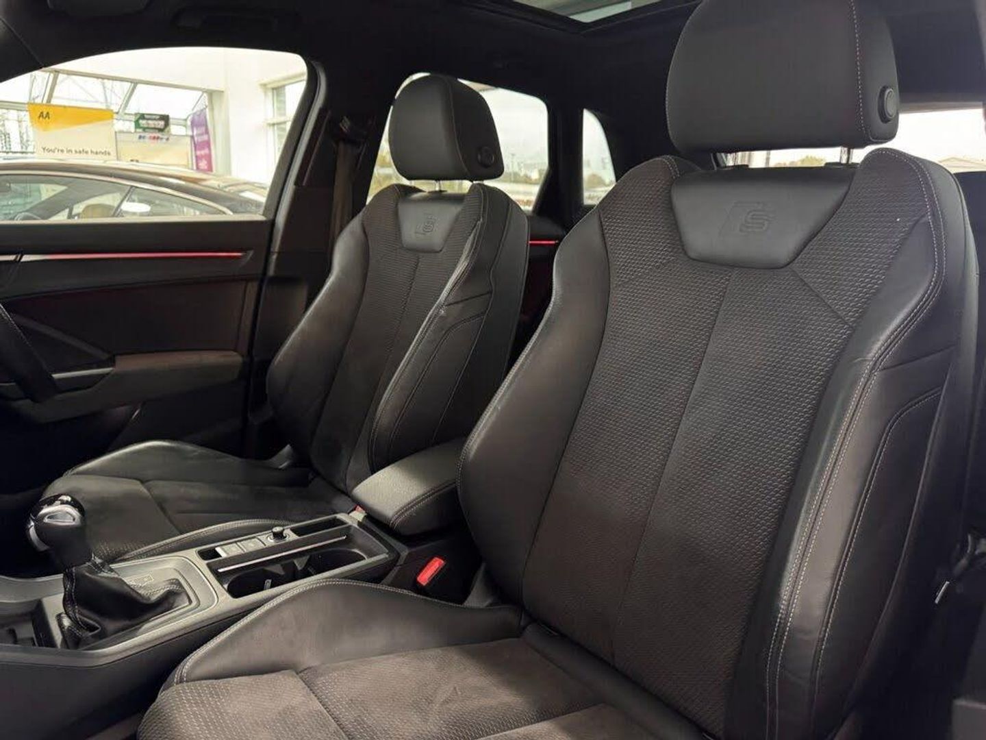 1 x USB-C and 1 x USB-A Port with Charge and Data Functions, 20in Alloy Wheels - 8.5J 5-Twin-Spoke - Module Design with Inserts in Structured Grey - Matt - Audi Sport, 20in Alloy Wheels - 8.5J 5-V-Spoke - Star Design in Matt Titanium Look - Diamond-Cut Finish - Audi Sport, 360 Degree Camera, 4-Way Electric Lumbar Support, 6-Airbag System, Adaptive Suspension with Damping Control, Adjustable Rear Seat Bench-Backrest with Centre Armrest and Cupholder, Advanced Key, Alcantara Frequency-Twin Leather - Sport Seats with S Embossing - Black with Rock Grey Stitching, Anti Theft Locking Wheel Bolts, Anti-Theft Alarm, Audi Beam, Audi Connect Infotainment Services Plus (3 Year Subscription From New), Audi Connect Safety and Service - e-call, Audi Drive Select, Audi Matrix LED Headlights with Dynamic Front and Rear Indicators, Audi Phone Box with Wireless Charging, Audi Pre-Sense Basic, Audi Pre-Sense Front with Pedestrian and Cyclist Recognition, Audi Side Assist, Audi Smartphone Interface includes Wireless Apple CarPlay, Audi Virtual Cockpit Plus, Auto Dimming and Frameless Rear View Mirror, B and C-Pillar Trim in High-Gloss Black, Black Roof Rails, Black Styling Package, Bluetooth Interface, Camera-Based Traffic Sign Recognition, Cloth Headlining in Black, Comfort and Sound Package, DAB Digital Radio, Detail in Dashboard Around the MMI Touch Colour Display in Glass Look - Black with Surround in Aluminium Look, Driver Assistance Package, Dual-Zone Electronic Climate Control, Electric Windows - Front, Electrically Adjustable Front Seats, Electromechanical Parking Brake, ESC - Electronic Stabilisation Control inc ABS - ASR and EDL, Extended Ambient Lighting Pack - Multi-Coloured, First Aid Kit and Warning Triangle, Flat-Bottomed 3-Spoke Leather-Trimmed Multi-Function Sport Steering Wheel with Gear-Shift Paddles, Folding Door Mirrors with Auto-Dimming Function for Both the Drivers and Passengers Side Electrically Folding - Adjustable and Heated with Built-In LED Side Indicators and Kerb-View Function for Passenger Side, Frame of Front Side Air Inlets in Platinum Grey - Matt, Front and Rear Floor Mats in Black with Contrast Stitching in Rock Grey, Front Centre Armrest, Front Spoiler Blade in Platinum Grey - Matt, Front Spoiler in Selenite Silver - Matt, Gear Knob in Perforated Leather, Headlights Washers, Hill Descent Control, Hill Hold Assist, Illuminated Door Sill Trims with S Logo, Inlays - Matt Brushed Aluminium - Dark, Interior Elements in Steel Grey Alcantara, Interior Lighting, ISOFIX Child Seat Mounting for the Front Passenger Seat with Front Passenger Airbag Deactivation and ISOFIX Child Seat Mounting and Top Tether for the Outer Rear Seats, Lane Departure Warning, Leatherette Door Armrests, LED Rear Lights, Light and Rain Sensor, Luggage Compartment Sill Protection in Stainless Steel, Manually Adjustable Front Seats, MMI Navigation Plus with High Resolution 10.1in Touchscreen Colour Display, Non-Smoking Package, Panoramic Glass Sunroof, Pedals in Stainless Steel, Power Operated Tailgate, Privacy Glass - Dark-Tinted Rear and Rear-Side Windows - From B-Pillar Backwards, Progressive Steering, Rear Diffuser in Titanium Black Matt, S Line Badges on the Front Wings, S Line Bumpers in Contrasting Manhattan Grey Paint Finish, Seat Belt Monitoring, Tool Kit, Tyre Pressure Warning Light, Tyre Repair Kit, Voice Control System with Natural Language Interaction, Windscreen in Acoustic Glazing