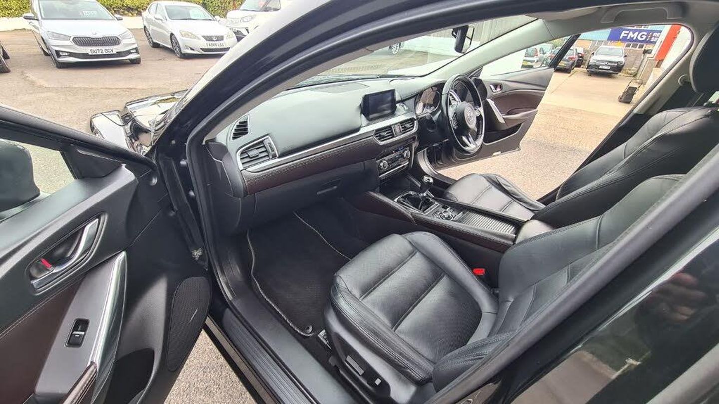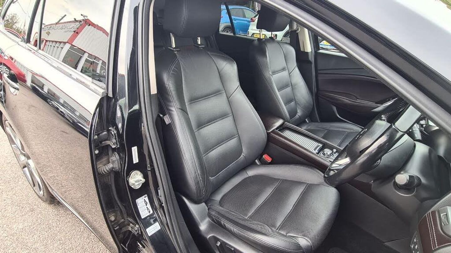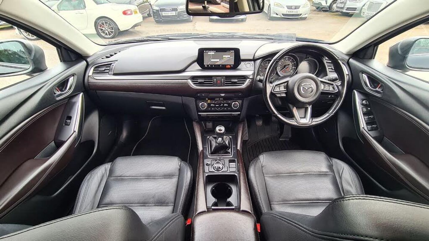 Leather interior.*LOW MILEAGE*HUGE SPECIFICATION*FULL MAZDA SERVICE HISTORY*HEATED LEATHER SEATS + STEERING WHEEL*HEADS UP DISPLAY*SAT NAV*XENON LIGHTS*MASSIVE BOOT*PARKING CAMERA + SENSORS*GREAT FUEL ECONOMY 70.6 MPG*