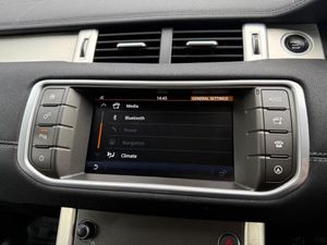 12-12 Way - Electric Seats, 12V Auxiliary Power Sockets - Front and Luggage Compartment, 18in Alloy Wheels - 7 Spoke - Style 706 - Sparkle Silver Finish, 5in TFT Driver Information Centre, 8in High Resolution Touch Screen, ABS - Anti Lock Braking System, Airbags - Driver Knee, Airbags - Front - Driver and Front Passenger, Airbags - Side Curtain - Driver and Front Passenger and Row Two, Auto-Dimming Interior Mirror, Auxiliary Power Socket - Front and Luggage Compartment, Bluetooth Telephone Connectivity with Streamed Audio, Body Coloured Door Handles, Body Coloured Roof with Matching Spoiler, Body-coloured Door Claddings, Cabin Air Quality Sensor, Carpet Mats with Edging, Centre console - Covered Storage Compartment, Climate Control - Automatic with Air Filtration and Automatic Recirculation, Climate Control - Rear Vents, DAB - Digital Audio Broadcast, DSC - Dynamic Stability Control, Dark Techno Silver Inner Tow Eye Finisher, Door Mirrors - Narvik Black, EBA - Emergency Brake Assist, EBD - Electronic Brake-Force Distribution, EDC - Engine Drag Torque Control, EPAS - Electronic Power Assisted Steering, Electric Parking Brake, Evoque Badge in Silver, Exhaust Finishers - Bright Square, Exterior Mirrors - Electric Adjustment-Heated-Power Fold-Puddle Lamps with Projected Evoque Graphic-Direction Indicators, Front Fog Lights, Front Height-adjustable Seat Belts, Front and Rear Parking Aid, Global Opening for all Windows, HDC - Hill Descent Control, HSA - Hill Start Assist, Hazard Warning Lights Under Heavy Braking, Headlight Power Wash, Headlights - Automatic High Beam Assist, Headlights - Xenon with Automatic Levelling and LED Signature Lights, Heated Front Seats, Heated Rear Screen, ISOFIX Mounting Points in Outboard Rear Seats, Illumination - White Ambient Lighting, Illumination - White Lighting, Illumination for Footwell-Glovebox-Load Compartment Lamp x1, InControl Protect, InControl Touch - Level 1, InControl Touch Navigation, Interior Mood Lighting, Lane Departure Warning with Autonomous Emergency Braking, Locking Wheel Nuts, Luggage Compartment - Anchor Points, Luggage Cover, Manual Tailgate, Manually Adjustable Steering Column - Four-Way, Narvik Black Fender Blade, Narvik Black Grille, No Engine Badge, Oxford Leather Gear Knob, Oxford Leather Steering Wheel with Audio Controls and Cruise Control, Parking Aid - Front, Proximity Sensing and Touch Detection For Overhead Map Lights, Push Button Start, RSC - Roll Stability Control, Rain Sensing Windscreen Wipers and Automatic Headlights - Automatic, Range Rover Smart Key Controls - Remote lock-Unlock-Double Lock-Lights on Tailgate Open, Rear Centre Armrest, Satin Brushed Aluminium Centre Console Finisher, Seat Belt Reminder, Seats - Rear Centre Head Restraint, Side Sills - Anthracite, Sun Visors - Illuminated Vanity Mirrors, TCS - Traction Control System, TPMS - Tyre Pressure Monitoring System, TSA - Trailer Stability Assist, Tailgate Finisher in Narvik Black, Terrain Response, Three Seat Bench - 60-40 Split, Torque Vectoring, Trim Finisher - Satin Brushed Aluminium, Tyre Repair System, USB Connectivity, Volumetric Alarm, Windscreen - Heated, Windscreen Washer Jets - Heated