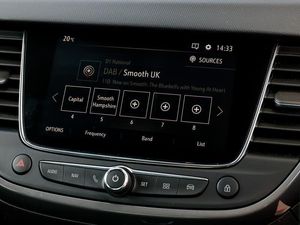 Winter pack - Crossland, Rear view camera plus pack - Crossland, Multimedia sat nav pro with 8" colour touchscreen, AM/FM, Bluetooth streaming, Bluetooth mobile phone portal, apple CarPlay/Android Auto + 6 speakers, Steering wheel audio controls, Bluetooth connectivity, 3.5" monochrome instrument colour display, Cruise control + speed limiter, Instrumentation - Speedometer, rev counter, low fuel gauge warning light + water temperature gauge warning light, shift up/down indicate light, Vauxhall connect, DAB Digital radio, Steering wheel mounted audio/phone/cruise controls, Automatic headlamp levelling system, LED daytime running lights, 60/40 split folding rear seat backrest