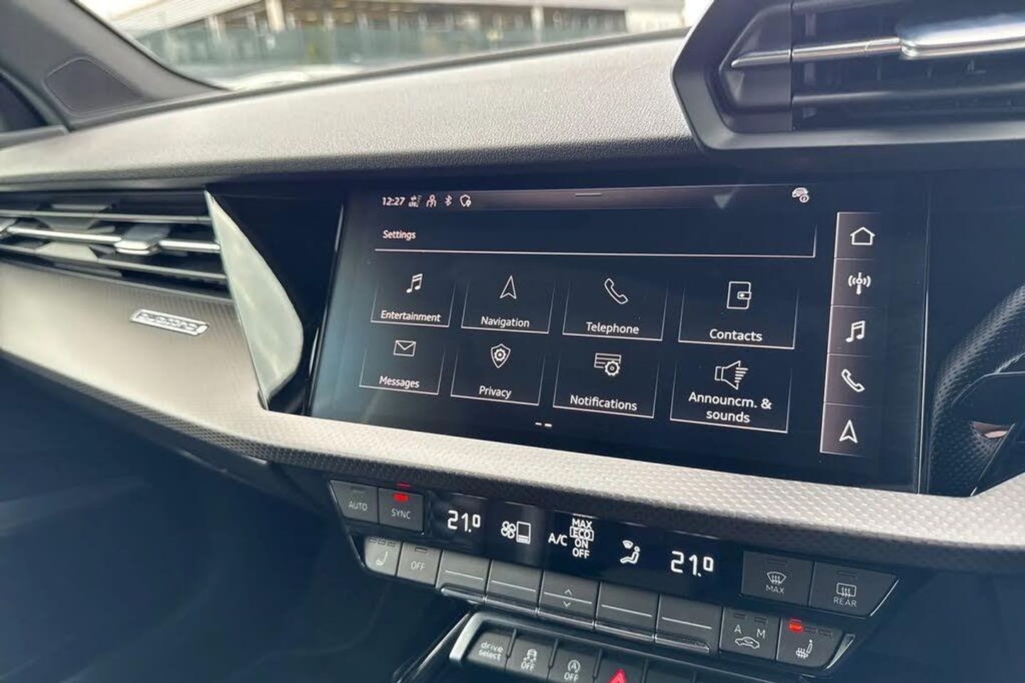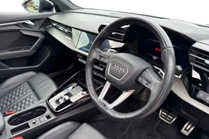 Cruise Control, Advanced Safety, Start/Stop, Bluetooth, Headup Display, Lane Assist, DAB, Light and Rain Sensor, Panoramic / Sunroof, AC/Climate, Heated Seats, Ambient Lighting, Sat Nav, Alloys;This 2022 Audi RS3 TFSI Vorsprung is a remarkable example of performance and luxury. As a Euro 6 compliant model, it features a potent 2.5 litre petrol engine paired with Audi's renowned four wheel drive system, ensuring exhilarating performance and confident handling. The Vorsprung trim level signifies a high specification, and this particular vehicle is equipped with the desirable RS Dynamic Pack for enhanced driving dynamics. Convenience is further elevated by the Bluetooth Interface, Audi Smartphone Interface with Android Auto compatibility, and electrically adjustable front seats with a memory function for the driver. Adaptive Cruise Control also comes as standard, making longer journeys more relaxed. The acceleration of this RS3 is truly impressive, achieving 0-62mph in a mere 3.8 seconds. This rapid acceleration demonstrates its superior performance capabilities when compared to other vehicles in its class. The combination of its powerful engine, advanced drivetrain, and sophisticated technology creates a driving experience that is both thrilling and refined, making this Audi RS3 TFSI Vorsprung a standout choice for any discerning driver.
