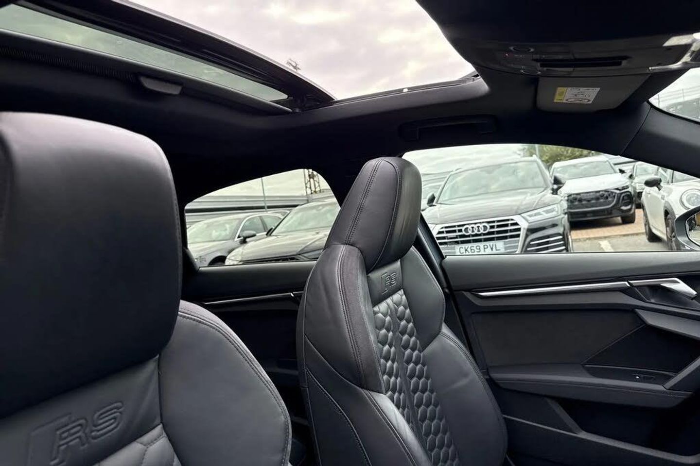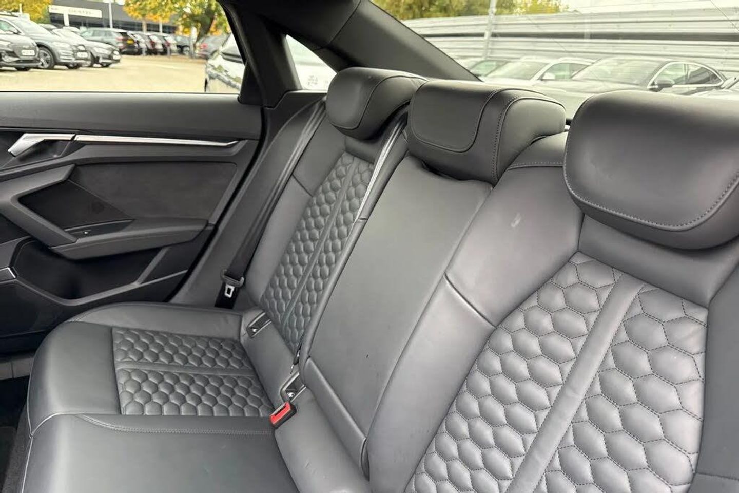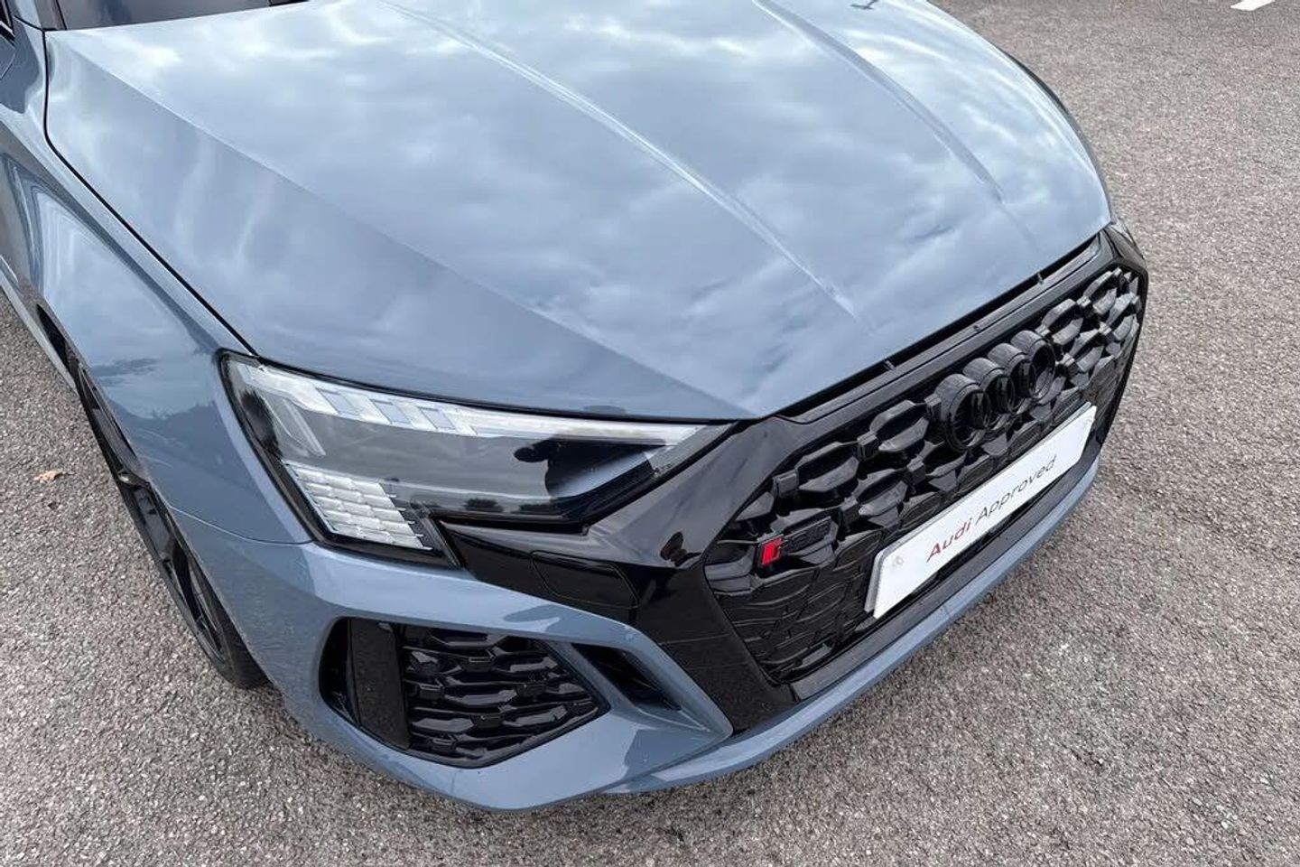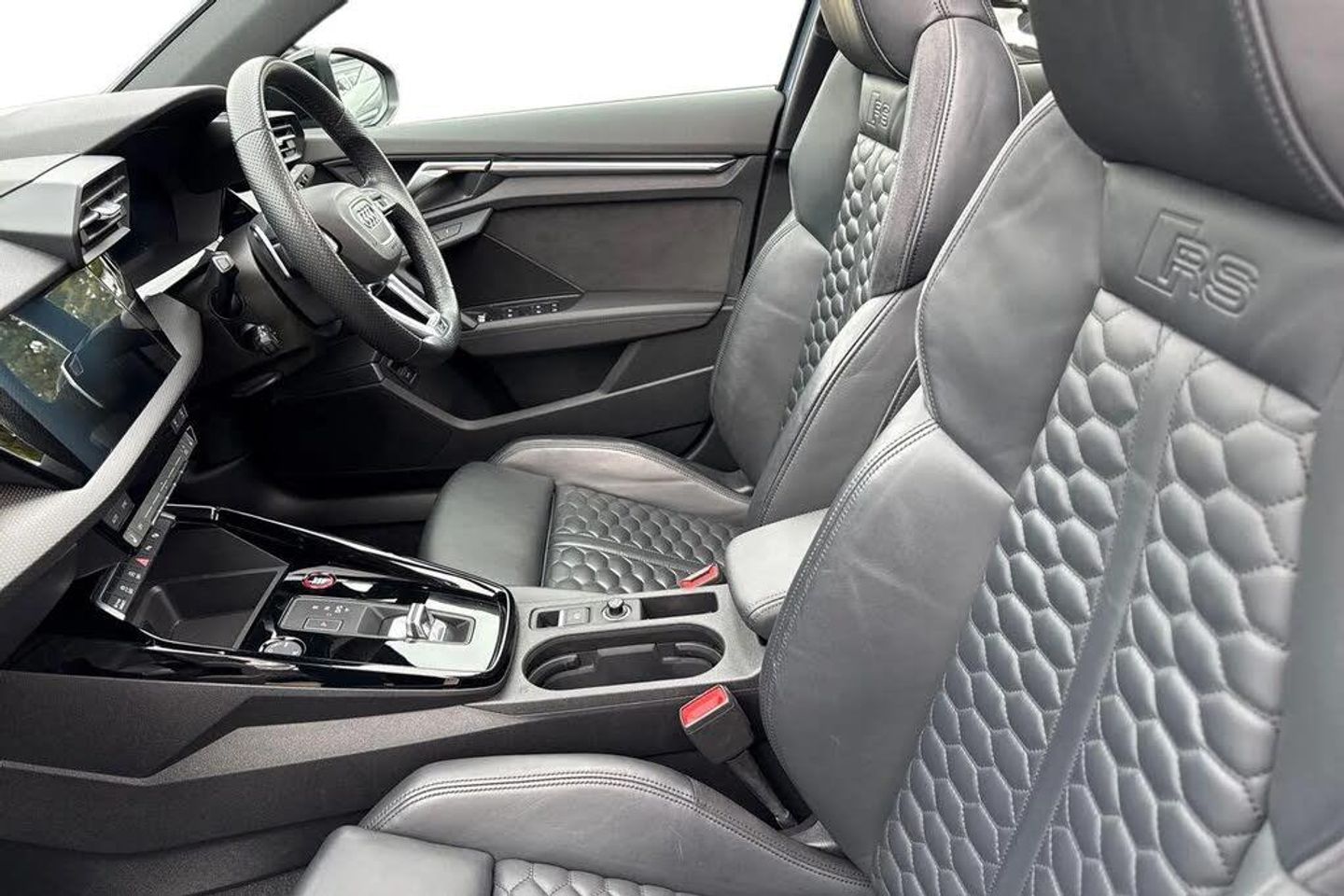 Adaptive cruise assist,Adaptive cruise control,Audi connect emergency call and service,Audi smartphone interface,Audi virtual cockpit with RS specific display 12.3" full colour digital instrument cluster,Automatic start/stop system with recuperation,Bluetooth interface,Camera based traffic sign recognition,Collision avoidance assistant,Head up Display,Lane departure warning system,Legal emergency call,Parking assist with parking system plus,Power operated tailgate - Luggage compartment lid opens electrically,Progressive power assisted steering,Reversing camera,Quattro permanent four wheel drive,Rear suspension,DAB Digital radio,3rd brake light,Acoustic glass windscreen,Audi beam uses LEDs to project the Audi sport logo onto the ground as you exit your RS 3,Audi matrix LED headlights, LED rear lights, dynamic front and rear indicators and headlight cleaning system,Auto dimming rear view mirror,Black side skirts,Body colour roof,Carbon exterior door mirror,Carbon fibre engine cover,Electric adj heated/folding + auto dimming exterior mirrors with memory + LED indicator + auto kerb side function for passenger side exterior mirror,Front spoiler in high gloss black,Heat insulating glass windscreen,Light and rain sensors,Panoramic glass sunroof,Privacy glass - dark tinted rear and rear side windows from B-pillar backwards,RS exterior features in gloss black,RS sports exhaust system,3 spoke leather multifunction steering wheel with gear shift paddles,4 way lumbar support for front seats,40/20/40 split folding rear seat bench,Black cloth headlining,Dual zone electronic climate control,Electrically adjustable front seats with memory function for driver's side,Front and rear headrests,Front centre armrest,Front sports seats RS embossed logo,Front/rear floor mats,Heated front seats,Honeycomb stitching and RS embossing,Illuminated door sill trims inlays in aluminium with RS 3 logo,RS emblems,Stainless steel pedals and front footrest in black,Aluminium interior elements pack - RS3,Ambient lighting pack - RS3,Comfort and sound pack - RS3,Driver assistance pack with 3 spoke leather multi function steering wheel - RS3,MMI navigation plus with MMI touch - RS3,RS bodystyling - RS3,Storage Pack - RS3,3x3 point rear seat belts,ABS/EBD,ASR,Audi pre sense front,Driver/Front Passenger airbags,EDL,ESC - Electronic Stability Control + traction control,Front passenger airbag deactivation,Front side airbags with head airbags and interaction airbag,Hill hold assist,Seat belt reminder with passenger presence detection in rear,Tyre pressure loss indicator,Warning triangle and first aid kit,Anti theft alarm,Anti-theft wheel bolts,Electronically operated child lock,Remote control central locking,Full decorative carbon trim,19" 5 Y spoke black with graphic print alloy wheels,Tool kit,Tyre repair kit,RS Dynamic Pack
