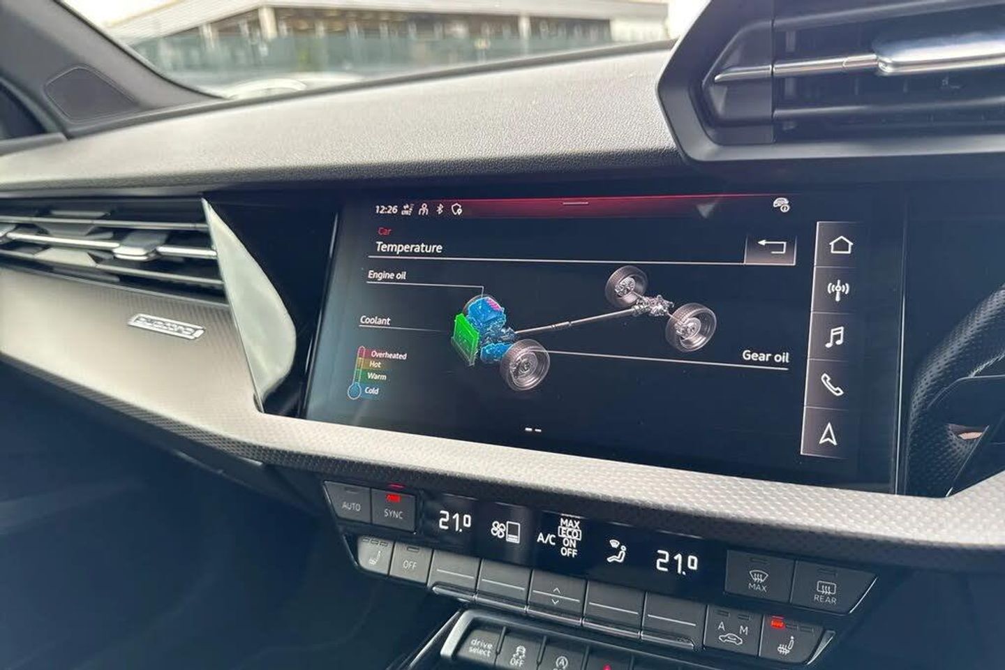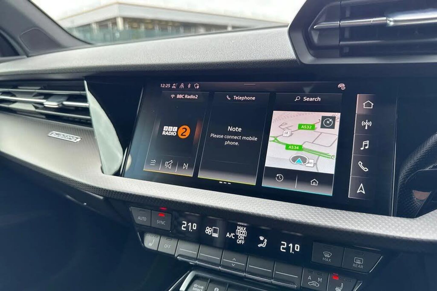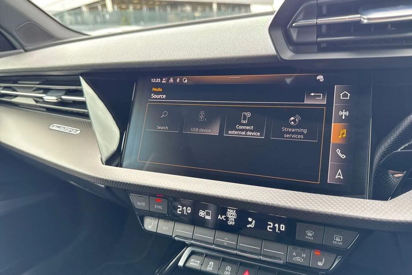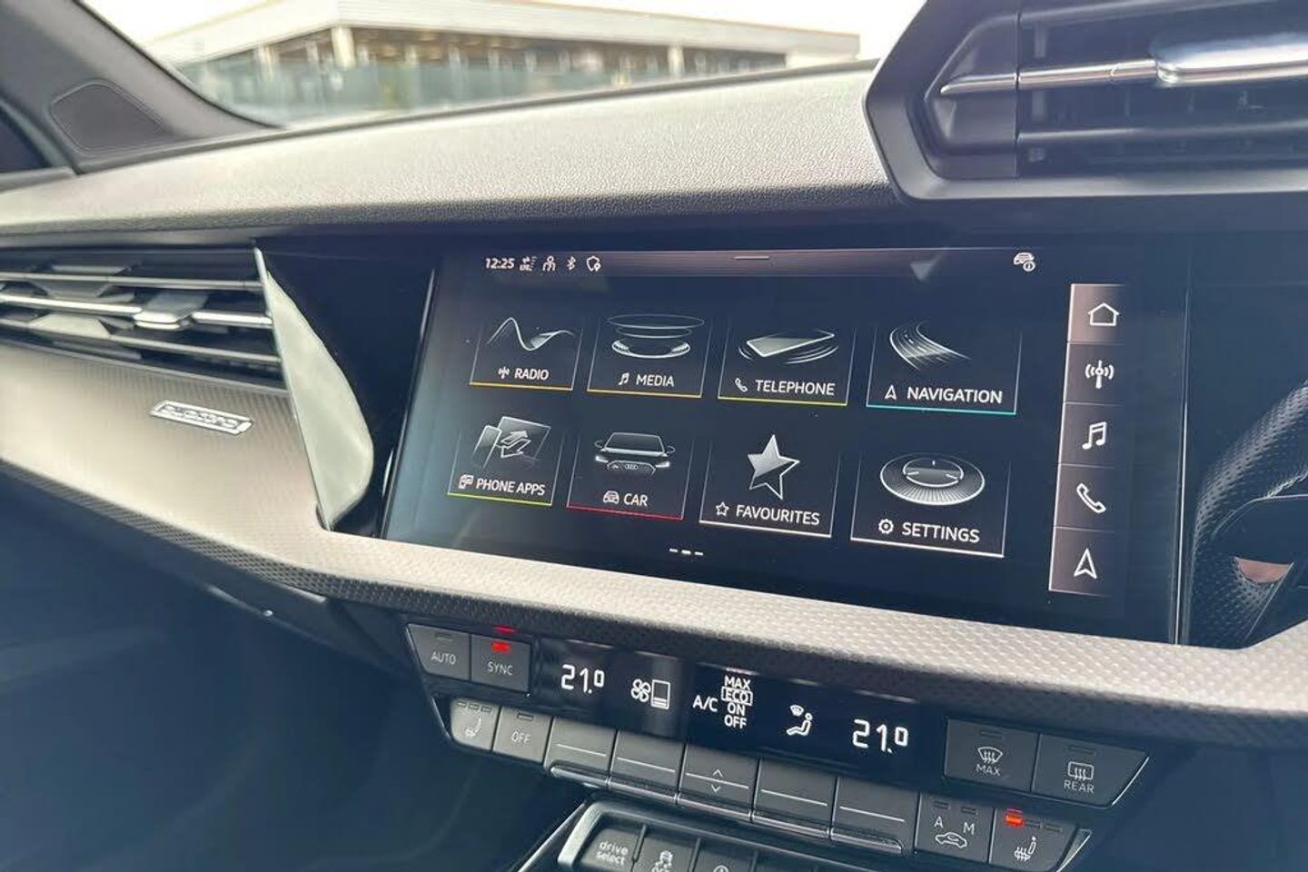 Adaptive cruise assist,Adaptive cruise control,Audi connect emergency call and service,Audi smartphone interface,Audi virtual cockpit with RS specific display 12.3" full colour digital instrument cluster,Automatic start/stop system with recuperation,Bluetooth interface,Camera based traffic sign recognition,Collision avoidance assistant,Head up Display,Lane departure warning system,Legal emergency call,Parking assist with parking system plus,Power operated tailgate - Luggage compartment lid opens electrically,Progressive power assisted steering,Reversing camera,Quattro permanent four wheel drive,Rear suspension,DAB Digital radio,3rd brake light,Acoustic glass windscreen,Audi beam uses LEDs to project the Audi sport logo onto the ground as you exit your RS 3,Audi matrix LED headlights, LED rear lights, dynamic front and rear indicators and headlight cleaning system,Auto dimming rear view mirror,Black side skirts,Body colour roof,Carbon exterior door mirror,Carbon fibre engine cover,Electric adj heated/folding + auto dimming exterior mirrors with memory + LED indicator + auto kerb side function for passenger side exterior mirror,Front spoiler in high gloss black,Heat insulating glass windscreen,Light and rain sensors,Panoramic glass sunroof,Privacy glass - dark tinted rear and rear side windows from B-pillar backwards,RS exterior features in gloss black,RS sports exhaust system,3 spoke leather multifunction steering wheel with gear shift paddles,4 way lumbar support for front seats,40/20/40 split folding rear seat bench,Black cloth headlining,Dual zone electronic climate control,Electrically adjustable front seats with memory function for driver's side,Front and rear headrests,Front centre armrest,Front sports seats RS embossed logo,Front/rear floor mats,Heated front seats,Honeycomb stitching and RS embossing,Illuminated door sill trims inlays in aluminium with RS 3 logo,RS emblems,Stainless steel pedals and front footrest in black,Aluminium interior elements pack - RS3,Ambient lighting pack - RS3,Comfort and sound pack - RS3,Driver assistance pack with 3 spoke leather multi function steering wheel - RS3,MMI navigation plus with MMI touch - RS3,RS bodystyling - RS3,Storage Pack - RS3,3x3 point rear seat belts,ABS/EBD,ASR,Audi pre sense front,Driver/Front Passenger airbags,EDL,ESC - Electronic Stability Control + traction control,Front passenger airbag deactivation,Front side airbags with head airbags and interaction airbag,Hill hold assist,Seat belt reminder with passenger presence detection in rear,Tyre pressure loss indicator,Warning triangle and first aid kit,Anti theft alarm,Anti-theft wheel bolts,Electronically operated child lock,Remote control central locking,Full decorative carbon trim,19" 5 Y spoke black with graphic print alloy wheels,Tool kit,Tyre repair kit,RS Dynamic Pack