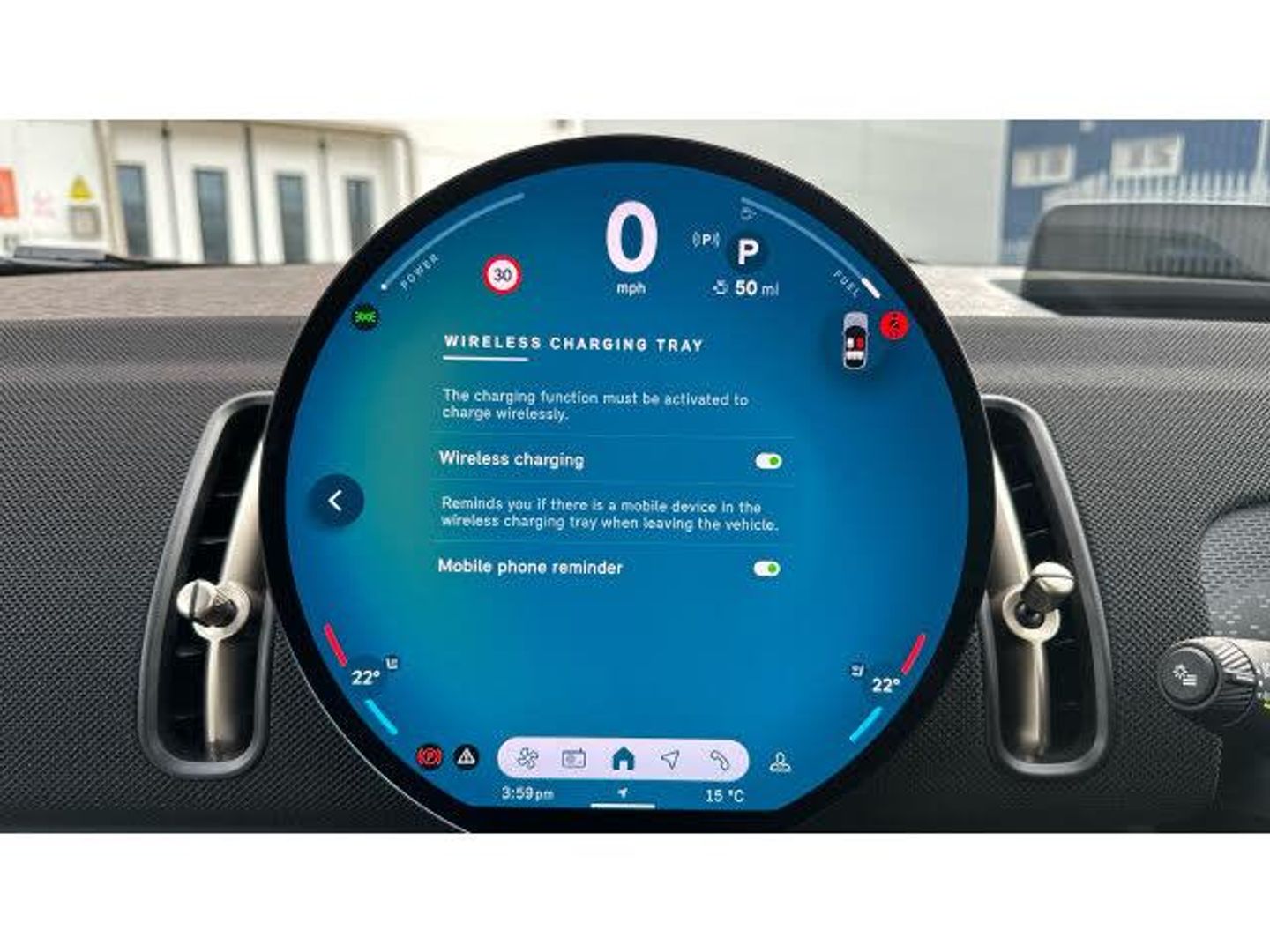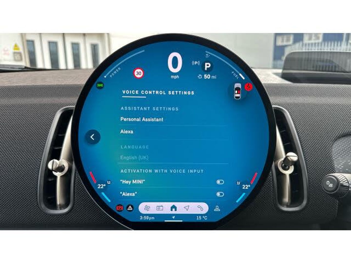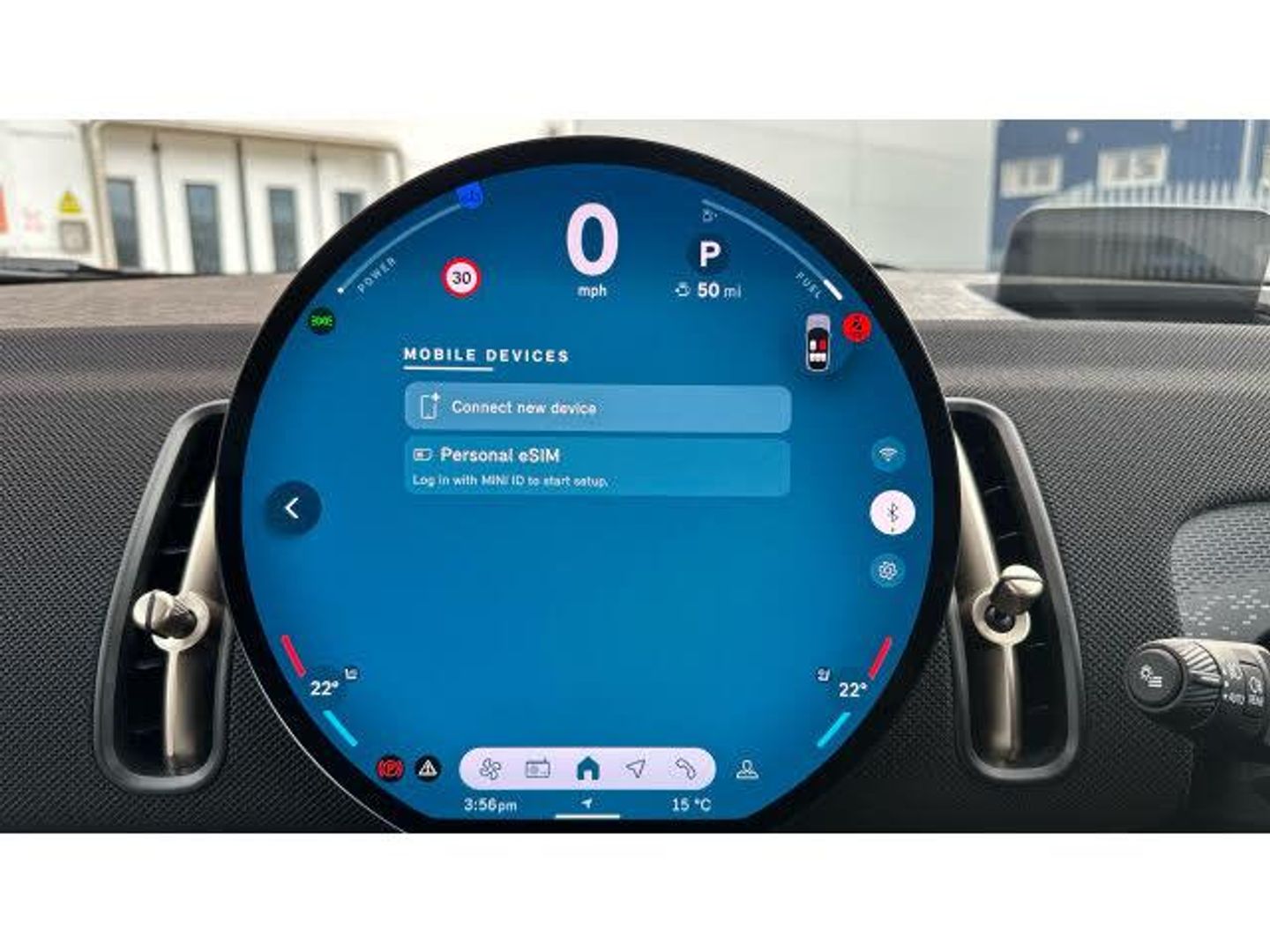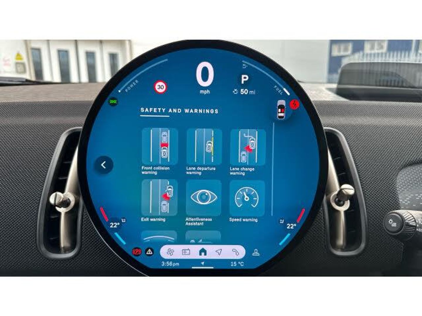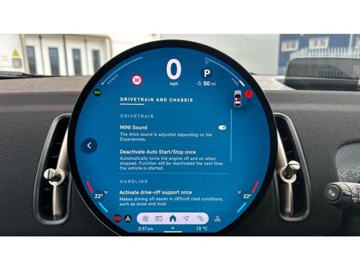 Floor mats, Heated rear window, Front and rear electric windows, Rain sensor with auto headlights, Rear window wiper, Sun protection glazing, Darkened rear glass, ABS, DSC - Dynamic Stability Control, Hill start assist, Electronic handbrake, Traction control, Electronic Stability Programme (ESP), Hill descent control, Compatible mobile phone bluetooth with audio streaming, E-call, Bluetooth connection, Rear view camera, Driving assistant plus, Electro-mechanical speed dependant steering assistance, Parking assistant, MINI Experience Modes, Cruise Control (DCC), Hill hold assist, Parking assistant in camera and ultrasound based assistance system, rear view camera, parking aid and distance control, Digital dashboard display, MINI TeleServices, MINI Head up display, Mini navigation system, Circular OLED Screen, Electric folding mirrors, Interior rear-view mirror with automatic anti-dazzle function, Electric adjustable heated door mirrors