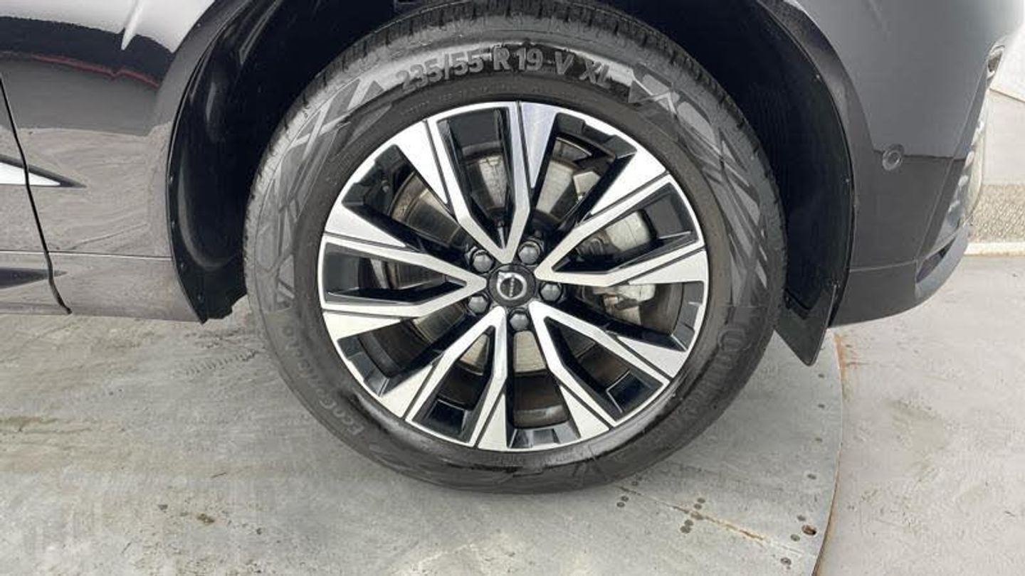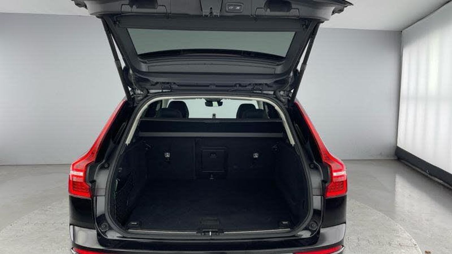 Tinted rear windows, Tailored gear shift, Blond headlining, Metal Mesh aluminium decor, Leather upholstery, Tailored steering wheel. Charcoal, Comfort front seats, 8-speed Geartronic? automatic. AWD, Pedals, Four-zone climate system, Afterrun parking climate, Dual-stage airbags, Knee airbag. driver side, Road Sign Information, Lane Keeping Aid and Lane Departure Warning, Front grille with high-gloss black insert, Heated grill emblem, LED headlights, Trailer lamp control, Fog lamps, 12.3-inch driver display, Google Assistant. Google Maps and Google Play Store, Adaptive cruise control, Pilot Assist, Intelligent Speed Assist (ISA), Volvo Cars App remote functions, Air-ventilated subwoofer, Digital Audio Broadcasting (DAB+), Harman Kardon Premium Sound, Power retractable door mirrors, Wireless phone charging, Automatic door locking, Remote key, Door mirror covers. high-gloss black, Double locking, Tinted rear windows, BLIS? and Cross Traffic Alert, Alarm, Power child safety lock, Power tailgate, Keyless entry with hands-free power tailgate, Air purifier and remote cabin pre-cleaning, Digital owners manual, Power driver seat with memory, Fully adjustable passenger seat, Heated rear seats, Manually foldable rear head restraints, 5 seats, Mechanical release second seat row, Power 4-way lumbar support, Textile interior cabin floor mats, Protection net, Rear centre armrest, Illuminated vanity mirrors, Interior illumination. high level, Power outlet. load compartment, First-aid kit, Load cover. manual, Auto-dimmed rear view mirrors, Power cushion extension. driver, Chassis, Tyre pressure monitoring, Rear Collision Warning, Hill Descent Control, Slippery road alert, Emergency brake light, Adaptive power steering, 19? 5-V spoke glossy black diamond cut, Temporary mobility kit, Lockable wheel bolts, Wiper blades with integrated washers, Body-coloured door handles with ground lighting, Tailgate scuff plate. stainless steel, Volvo tread plates. aluminium, High-gloss black side window trim, Roof rails. glossy black, All-wheel Drive (AWD), Tempered side and rear windows, Park assist. front. rear and sides, Ticket holder, 360 camera, Alcohol lock software (not available in the UK), Protective cap kit. Matt Tech Grey, Apple CarPlay, 9-inch centre display, Whiplash injury protection, Inflatable Curtain, Side impact protection, Intelligent Driver Information System (IDIS), High positioned rear brake lights, ISOFIX mounting points. rear seat, Safety belts, Rain sensor, Steering wheel remote control, Humidity sensor, Start/Stop technology, Bluetooth connection, [Exterior]Heated windscreen, [Interior]Heated front seats, Heated steering wheel, [Safety and Security]Passenger airbag cut-off switch, Hill Start Assist, Oncoming Lane Mitigation, Warning triangle