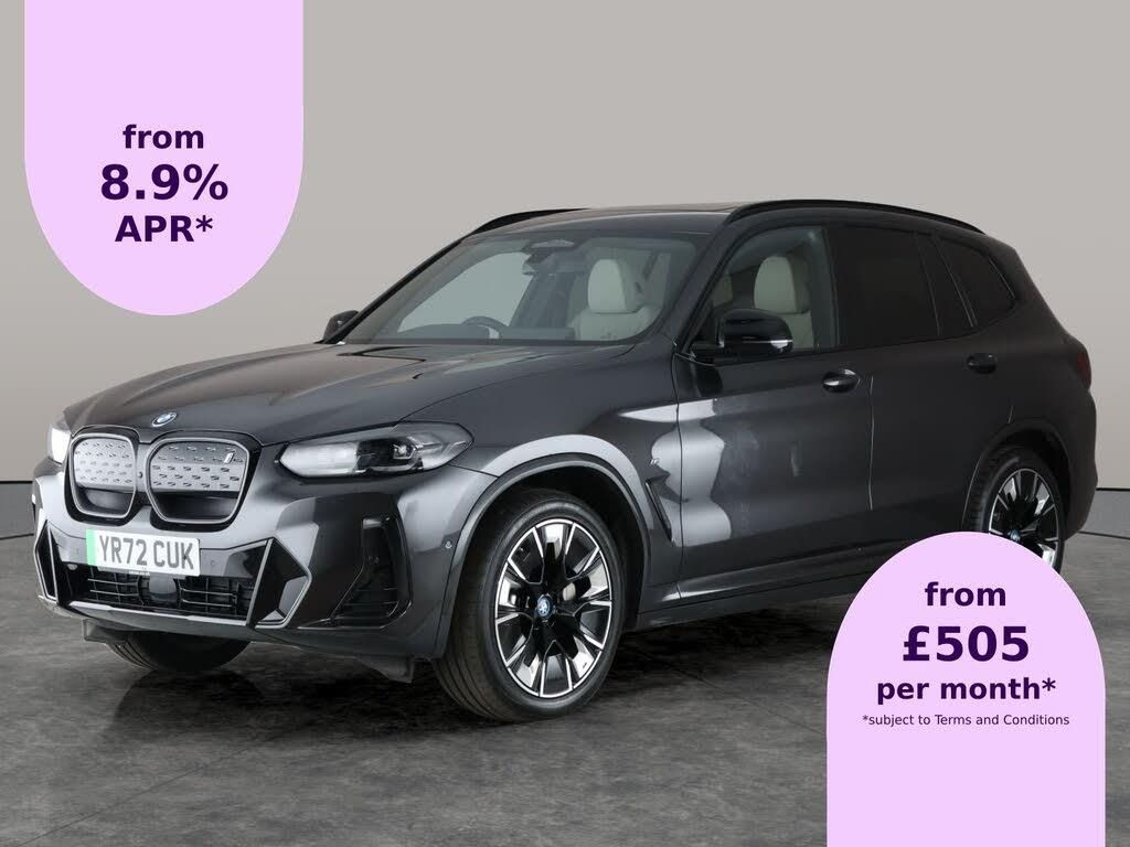 Experience the BMW iX3 M Sport, a stylish grey electric SUV with impressive features for a modern drive. Enjoy open skies with the panoramic sunroof, while Harman/Kardon upgraded sound ensures every journey feels premium. Effortlessly park with Parking Assistant Plus and surround view, and stay in control with adaptive cruise and gesture controls. Apple CarPlay keeps you connected, and the head-up display puts information right where you need it. LED headlights complete the slick, comfortably advanced package. 1 service recorded, last serviced on 10/10/2024 at 13,376 miles. MOT to 05/10/2026. Visit our website for service history, online valuation, full vehicle specification plus multiple images. Certain features listed may be available via subscription packages at extra costs, please consult with BMW for details. This vehicle is VAT qualifying. Any feature/option specified here is from 3rd party data. We cannot guarantee the accuracy of any specification supplied by a 3rd party. We recommend that you physically check the specification of the vehicle on site prior to purchase. This information does not form part of the buying contract. Terms & Conditions apply. We have over 2,000 cars available from our 10 national branches, check our website to see all our stock. Our Trustpilot rating is 4.4/5 with over 9,000 reviews.