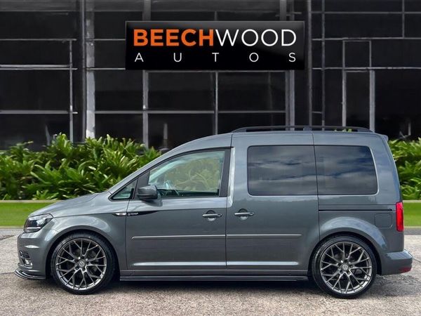 Beechwood Autos has over 70 Custom VW Caddy's in stock and our passion and vision for new and individual styles of VW Caddy vans have attracted some of the best craftsmen and suppliers in the industry working with us to create one off custom builds. We specialise in transforming the VW Caddy beyond the standard into fully customised sport vans with bespoke leather, custom paint, Sportline, ABT and other top branded parts, we aim to offer our customers quality products and excellent value for money, from simple VW Caddy's builds to completely radical custom Caddy's. So for any VW Caddy needs come and see what we've got in stock, there's always plenty of custom transformations on the go, and if we don't have it, we'll build it for you, to your exact specification!, , A Luxury Vehicle at an Affordable Price, Indium Grey in Colour, BRAND NEW WHEELS AND TYRES, TMG Virtual dash, Upgraded Colour Coded Bumpers, Lowered 75mm on LPC Coilovers Front & Rear, Colour Coded Rear Spoiler, ABS Gloss Black Splitter Spoiler, ABS Front Splitter, Side Skirts, Gloss Black Grills. We can further customise this Caddy to you exact specification! Part exchange considered., Open until 10pm, 7 days a week!