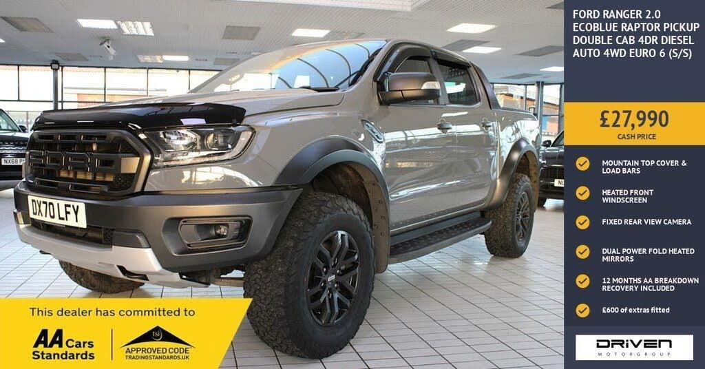FORD RANGER 2.0 ECOBLUE RAPTOR PICKUP DOUBLE CAB 4DR DIESEL AUTO 4WD FINISHED IN CONQUER GREY AND COMPLIMENTED WITH PART LEATHER INTERIOR, THIS VEHICLE HAS BEEN VERY WELL CARED FOR AND MAINTAINED WITH DOCUMENTED SERVICE HISTORY PLUS COMPREHENSIVE PRE DELIVERY HEALTH CHECK COMPLETED PRIOR TO SALE 38528 MILES. KEY FEATURES INCLUDE ALLOY WHEELS, LOAD BOX BEDLINER, LOCKABLE MOUNTAIN TOP COVER AND LOAD BARS, AIR CONDITIONING, AUTOMATIC HEADLIGHTS, CENTRE CONSOLE COOL BOX, CRUISE CONTROL, DUAL ELECTRIC HEATED DOOR MIRRORS, FIXED REAR VIEW CAMERA, FORD SYNC 3 CD PLAYER, DAB RADIO, HEATED WINDSCREEN, LED HEADLIGHTS, KEYLESS, LANE ASSIST, REAR PARKING SENSORS, ALARM, PRIVACY GLASS PLUS MUCH MUCH MORE. COMMITTED TO AA CARS STANDARDS: 3 MONTHS OR 3000 MILES WARRANTY INCLUDED WITH AN OPTION TO UPGRADE: 12 MONTHS AA BREAKDOWN RECOVERY INCLUDED: £75.00 CONTRIBUTION TOWARDS YOUR NEXT SERVICE/MOT AT ANY AA CARS STANDARD APPROVED WORKSHOP: WE STAND BY THE QUALITY OF OUR VEHICLES. WITH THE PURCHASE OF THIS VEHICLE, YOU WILL RECEIVE 3 MONTHS OR 3000 WARRANTY, 12 MONTHS AA BREAKDOWN RECOVERY, GIVING YOU ADDITIONAL PEACE OF MIND AND PROTECTION. ALL OUR CARS COME WITH AT LEAST 6 MONTHS MOT AND PRE SALE HEALTH CHECK AND ROAD TEST. OUR PROFESSIONAL TEAM ENSURES YOUR VEHICLE STAYS IN TOP CONDITION, AND YOU ENJOY A HASSLE-FREE OWNERSHIP EXPERIENCE. 4.6 STARS ON GOOGLE WITH OVER 550 REVIEWS: JOIN OUR COMMUNITY OF SATISFIED CUSTOMERS! OUR DEALERSHIP IS PROUD TO HAVE A 4.6 STAR RATING ON GOOGLE, BACKED BY OVER 550 POSITIVE REVIEWS. WE ARE COMMITTED TO PROVIDING EXCELLENT SERVICE AND HIGH-QUALITY VEHICLES. This Vehicle Comes Equipped with High Specification, Which Includes: - Drive this car home with complete confidence and satisfaction: All cars proudly offered by driven group are rigorously inspected, hpi checked and prepared to the highest standard To drive this car home, visit www.drivegroup.co.uk or call 01642-601999 to arrange an appointment with our sales team Please note we do not operate an organised distance selling scheme as defined by the consumer contracts (cancellation, information and additional charges) regulations 2013. Therefore, even if you choose to not view your vehicle at our premises prior to purchase,you will not be entitled to cancel your order under any 14 day cancellation period. All other statutory rights remain unaffected. Whilst every effort has been made to ensure the accuracy of the information contained in this website, please check with us about any item which may affect your decision to purchase. Driven motor group shall not be liable for any errors, inaccuracies or delays in content.