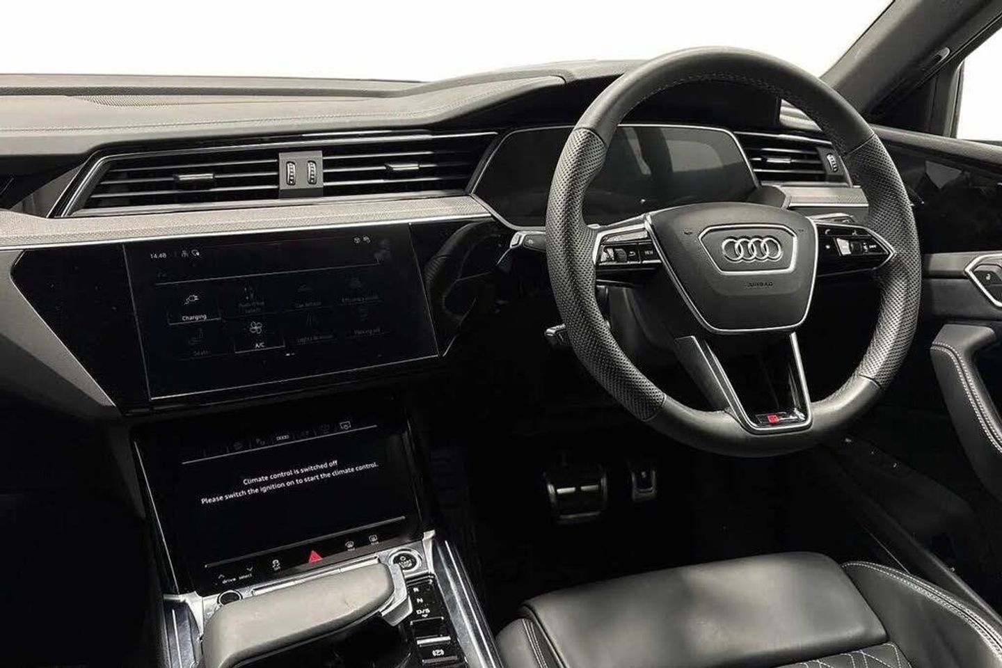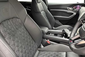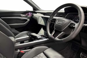 22" x 9.5J '6-segment spoke' diamond cut Audi Sport alloy wheels,Park Assist Plus,Power door closure,Front cross traffic assist,With front and rear view camera system and two side cameras,Head-up display,Virtual door mirrors,Tour Pack,City Assist Pack,Park Assist Pack (part of Technology Pack),Matrix LED headlights,Multi-function Camera,Extended LED Interior Lighting Pack - multi-coloured,With dynamic road sign display,S sport seats with diamond stitching,Exterior Ambient Lighting (Grille Illumination),2 USB-C ports with charging functionality in the rear,Technology Pack Pro,SWIN management,Audi Beam with Vorsprung logo,Tow bar,Heated leather multi-function steering wheel with paddles for recuperation,Electric steering column,Without right exterior mirror,Without left exterior mirror,Panoramic glass sunroof,Black roof rails,Sunblinds for rear & side windows,Heated front and outer rear seats,Central locking system "Keyless Entry",Gloss black finish for the exterior Audi Rings and e-tron logo at the rear,Inlay in carbon twill,Sun visors front - slidable,Lane keeping system plus semi-automatic vehicle control in a medical emergency and traffic jam assist,Audi pre sense front,Electrically adjustable - heated and folding - automatically dimming on both sides with memory function - including automatic kerb-side function for the passenger-side exterior mirror,Extended Leather pack,MMI Navigation Plus with MMI Touch,With extended safety system (proactive passenger protection system - basic and rear),Park Assist with Parking Aid,Audi side assist,Multiple matrix beam,LED headlamps with variable light distribution,Adaptive cruise control,4-Zone deluxe air conditioning,Adaptive windscreen wipers,Audi virtual cockpit plus,Bang & Olufsen Premium Sound System,Equipment options subset for Great Britain