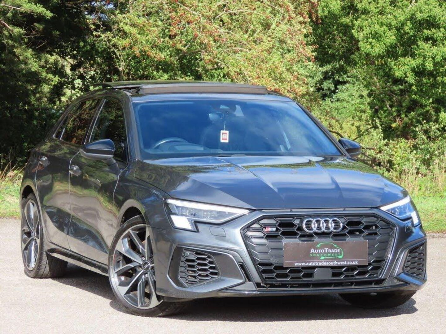 12v Socket and Storage Compartment in Front Centre Console, 19in Alloy Wheels - 5-Twin Spoke Edge - Anthracite Black - Diamond Cut Finish, 2 USB-C Ports with Charge and Data Functions, 4-Way Lumbar Support for Front Seats, Advanced Key, Airbags - Driver and Front Passenger with Passenger Airbag Deactivation, Aluminium Interior Elements, Aluminium Window Trims, Anti Theft Locking Wheel Bolts, Anti-Theft Alarm, Audi Beam, Audi Connect Emergency Call and Service, Audi Connect Navigation and Infotainment Services Plus (3 Year Subscription From New), Audi Drive Select, Audi Matrix LED Headlights with LED Rear Lights - Dynamic Front and Rear Indicators - Headlight Cleaning System, Audi Pre-Sense Front with Pedestrian and Cyclist Recognition, Audi Smartphone Interface, Audi Virtual Cockpit Plus, Auto Dimming and Frameless Rear View Mirror, Automatic Start-Stop System with Recuperation, Black Styling Pack, Bluetooth Interface, Brake Calipers Painted in Glossy Black, Cloth Headlining in Black, Collision Avoidance Assistant, Comfort and Sound Package, DAB Digital Radio, Door Mirrors - Electrically Adjustable - Heated - Folding - Automatically Dimming with Memory Function and Integrated LED Indicators with Kerb View Function for Passenger Side, Driver Assistance Package, Dual-Branch Oval Twin Tailpipes in Chrome-Plated Finish, Dual-Zone Electronic Climate Control, ESC - Electronic Stabilisation Control inc ABS - ASR and EDL, Electric Windows - Front, Electrically Adjustable Front Seats with Memory Function for Drivers Side, Electronically Operated Child Locks, Extended Ambient Lighting Pack, First Aid Kit and Warning Triangle and 2 Safety Vests, Front Side Airbags with Head Airbags and Interaction Airbag, Front and Rear Centre Armrest in Leather, Front and Rear Floor Mats, Head-Up Display, Heated Front Seats, Hill Hold Assist, I-Size and Top Tether Child Seat Mounting for the Outer Rear Seats, Illuminated Door Sill Trims with Aluminium Inserts and S Logo, Inlays - Carbon, LED Interior Light Package, Lane Change Assistant with Exit Warning System and Rear Cross Traffic Alert, Lane Departure Warning, Light and Rain Sensor, Luggage Compartment Floor Covering, MMI Navigation Plus with High Resolution 10.1in Touchscreen Colour Display, Power Operated Tailgate, Privacy Glass, Privacy Glass - Dark-Tinted Rear Window - Rear Door and Side Window., Progressive Steering, Rear Side Air Outlets - Grained Matt Black, Remote Central Locking, S Suspension with Damping Control, Seat Belt Monitoring, Split-Folding Rear Seat Bench can be Split 40: 20: 40 or Fully, with Centre Armrest and Cup Holders, Steering Wheel - 3-Spoke Leather-Multi-Function, Storage Package, Tool Kit, Tyre Pressure Loss Indicator, Tyre Repair Kit, Voice Control System with Natural Language Interaction, Windscreen with Acoustic Glazing, Audi Phone Box Light with Wireless Charging, Panoramic Sunroof, Pedals and Footrest - Stainless Steel