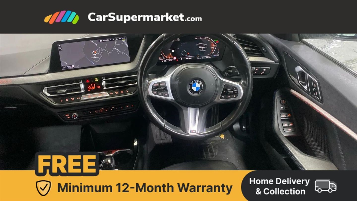 Active guard plus,Attentiveness assist,BMW Online services,BMW Teleservices,Check Control warning system for monitoring of lights and door/luggage compartment open warning,Connected eDrive Services,Eco pro mode,Integrated owners handbook,Oil sensor for level and grade,On board computer,Optimum shift indicator,Personal Profile,Pull away assistant,Speed limiter,Aluminium lightweight construction,Anti roll bar front and rear,Balancer shaft,Double VANOS,Drive Performance Control,Electronic differential lock,High precision injection,M sport suspension,Petrol Particulate Filter,VALVETRONIC engine management,Bluetooth audio streaming,DAB Digital radio,Auto dimming rear view mirror,Automatic headlight beam throw control,Automatic windscreen wipers and automatic headlight,Body colour door handles,Body colour mirror caps,Chrome 'M' logo side designation,Chrome exhaust tailpipe in single, round (Exhaust tailpipe, stainless steel - single, round),Chrome kidney grille frame with Satin Aluminium struts,Direction indicator side lights in exterior mirrors,Electric folding and anti dazzle exterior mirrors,Fading support,Follow me home headlights,Front and rear bumper system with replaceable deformation elements,Front and rear electric windows with open and close fingertip control, anti trap facility and comfort closing,Front door sill finishers in black plastic with M designation in metallic look,Green tinted heat protection glazing,Heated, electrically adjustable exterior mirror aspheric on driver side, convex on passenger side,High gloss shadowline window frame, Recess cover mirror frames and B/C pillar embelisher trim,High level third brake light,LED daytime running lights,LED eyebrow turn indicators,LED front fog lights,Lightweight engineering,Matt black air guide grilles,Model designation on right side of tailgate,Nearside reverse light in rear light cluster,Preparation for high beam assistant,Rain sensor including auto headlights activation,Rear fog lights,Rear window wiper,Shark fin antenna,Visible VIN plate,Welcome lighting,12V power socket in centre console,3 rear seat head restraints,3 spoke M sports design leather steering wheel finished in nappa leather with specific M badge,Anthracite headlining,Child seat ISOFIX attachment for two outer rear seats and front passenger seat with anchorage points,Conditioned based service,Dakota leather upholstery with perforation and contrast stitching,Driver and front passenger seat heating,Folding rear clothes hook,Four grab handles integrated in roof lining,Front and rear door pockets,Front and rear door pockets with bottle holders,Front and rear side armrest integrated into door trim,Front armrest foldable with integrated storage compartment,Front sports seats with electric side bolster adjustment,Glove compartment,Height adjustable front head restraints,Manual adjust steering wheel,Multi-function controls for steering wheel,Storage compartment in centre console,Sun visors with vanity mirrors and insert tab,Two zone automatic air conditioning,Additional interior lighting pack - 1 Series,Connected pack professional - 1 Series,Extended storage pack - 1 Series,Interior lights pack - 1 Series,Luggage compartment pack - 1 Series,M Sport exterior styling aerodynamics pack - 1 Series,2 tone horn,3 point seatbelts on all seats, front pyrotechnic belt tensioners, stopper and belt force limiters, rear coded belt buckles,Airbags - front driver/passenger, front & rear curtain, front side,Anti lock braking system (ABS) with brake assist,BMW emergency call,Brake drying,Braking readiness,Crash sensor activating central locking release, hazard warning lights, fuel cut off, interior lighting + activation of safety battery terminal clamp,Driver and front passenger seat belt security check,Dynamic stability control + (DSC+),Dynamic Traction Control - DTC,Electrically operated hand brake,Front and rear disc brakes,Front passenger manual airbag deactivation,Seatbelt warning,Side impact protection,Tyre pressure monitoring system,Warning triangle and first aid kit,Automatic drive away locking facility,Central locking switch for all doors, fuel filler cap and luggage compartment,Deadlocking function system to all doors,Locking wheel bolts,Remote control with integrated key with High-gloss Black inlay and M designation and 1 button for open/ close lock, window, open luggage compartment,Start/stop button with comfort go keyless engine start and auto start stop deactivation button,Thatcham Cat.1 alarm and immobiliser,Contrast stitching on instrument panel,Reduced rolling resistance tyres,Alpine White,Lumbar Support - Driver and Front Passenger,Spare Wheel - Space Saver,Perforated Dakota Leather - Black with Blue Highlight