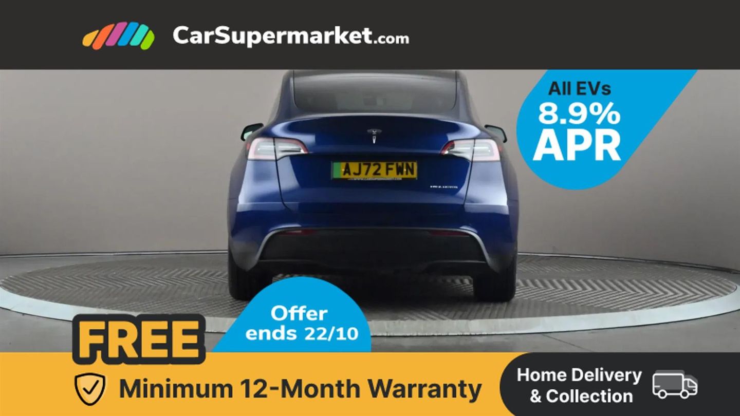 15" Touchscreen display,Acoustic seat-belt warning,Blind spot monitoring,Bluetooth hands free phone with voice control system,Custom driver profiles,Electric assisted front and rear doors,Emergency call service,Front and rear parking sensors,Homelink (programmable garage door opener),Mobile App interface,Navigation system,Power lift tailgate,Reversing camera,Service indicator,Software updates over WiFi,Speed limit recognition,Speed sensitive power steering,11 kW AC onboard charger,CCS charging connector,Dual motor AWD wheel drive,Tesla mobile connector + domestic adapter (British 3-pin),Type 2 connector,4 USB C ports,DAB Digital radio,Music and media via bluetooth,Premium audio 14 speakers, 1 subwoofer, 2 amps and full immersive sound,3rd brake light,Auto headlights,Auto high beam,Automatic headlights and wipers,Daytime running lights,Electric windows with one touch open,LED fog lights,LED Headlights,LED tail lights,Power folding, auto dimming and heated wing mirrors,Rain sensitive windscreen wipers,Rear side wing doors,Rear view mirror auto dimming,Rear window defroster,12 way Power adjustable driver seat with lumbar support,2 fixed rear headrests,3 seat bench in 2nd row,Auto dual-zone climate control system,Center console with storage, 2 cup holders and armrest,Driver and front passenger sunvisors with illuminated vanity mirrors,Electronic fold flat seat release 40/20/40,Expansive glass roof with ultraviolet and infrared protection,Front head restraints,Glovebox, lockable with illumination,Heated front seats,Heated rear seats,Heated steering wheel,HEPA filtration system - "Bioweapon defence mode",Interior ambient lighting,Map and reading lights,Power adjustable steering wheel,Rear centre armrest with 2 cup holders,Single front passenger seat,Type 2 cable,3 point front seatbelts with pre-tensioners,3x3 point rear seatbelts,ABS + traction control,Active safety technologies including collision avoidance and automatic emergency braking,Collision warning,Driver/Front Passenger airbags,EBD + Brake Assist,Electronic parking brake,Electronic stability control,Emergency braking,Rear door child safety locks,Side curtain airbags,Tyre pressure monitoring system,Anti theft alarm,Dashcam,Keyless driving and keyless entry,Wireless phone charging,Premium open pore wood decor,Deep Blue