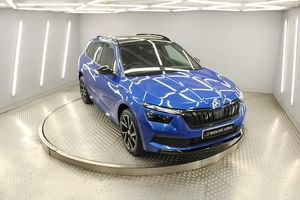 Race Blue,Parking Sensors - Front and Rear, 12V Socket on Central Console, 2 USB-C Ports, Amundsen Satellite Navigation with 9.2in Touchscreen Display with Virtual Cockpit - Web Radio - Voice Control and Care Connect 1 Year and Infotainment Online 1 Year, Bluetooth, DAB Radio, Emergency-Call, Skoda Proactive Services, Speakers x8, Wireless Smartlink, Cruise Control, Rear Parking Sensors, TPMS - Tyre Pressure Monitoring System, Trip Computer - Black and White, 18in Alloy Wheels - Vega Black, Anti-Theft Locking Wheel Bolts, Black Lettering on Boot Lid, Black Roof Rails - Door Mirrors and Radiator Grille, Body Coloured Roof Spoiler, Bumpers - Body Coloured, Electrically Adjustable and Heated Door Mirrors, Front and Rear Electric Windows, Headlights - Range Adjustment, Heated Rear Windscreen, Monte Carlo Plaque, Panoramic Sunroof with Black Roof Rails, Privacy Glass, Rear Diffuser - Black, Rear Fog Lights, Sports Bumpers, Tyre Repair Kit, Full LED Headlights, Rear LED Lights with Dynamic Indicators - High Functionality, 3-Spoke Leather Sports Multi-Function Steering Wheel, Air Vents with Chrome Surround, Aluminium Pedals, Ambient Lighting White, Black Ceiling for Black/ Beige Interior, Black Roof Lining, Carbon Effect Dashboard Inserts, Chrome Interior Door Handles, Dimming Rear View Mirror with Black Surround, Front Centre Armrest, Glove Compartment - Illuminated, Height Adjustable Driver and Front Passenger Seat - Manual, Ice Scraper, Kamiq Door Sills, Light Sensors, Manual Air Conditioning with Pollen Filter, Manual Lumbar Support for Front Seats, Manual Parking Brake, Reading Lights - Front and Rear, Sun Visors with Illumination on Front Passenger Side, Textile Floor Mats, Third Rear Headrest, Umbrella in Driver Side Door, Virtual Cockpit, Power Steering, Speed Limiter, ABS - Anti-Lock Braking System, Airbags - Passenger Deactivation Switch, Alarm with SAFE Function for Central Locking, Driver and Front Passenger Airbag, Electronic Engine Immobiliser, Front Assistant, HHC - Hill Hold Control, ISOFIX Child Seat Preparation - Front Passenger, ISOFIX Child Seat Preparation - Outer Rear, Lane Assistant, One Tone Horn, Remote Central Locking - with 2 Keys, Seatbelt Reminder for Driver and Co-Driver, Side Airbags in Front with Curtain Airbags, Top Tether for Front Passenger Seat