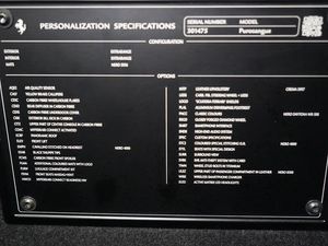 22-23in Alloy Wheels - Forged - Glossy Liquid,Black Ceramic Exhaust Pipes,Embroidered Full Shield,Embroidered Prancing Horse on Headrests,Front Massage and Ventilated Seats,Front Suspension Lifter,Glossy Carbon Fibre Front Spoiler,Glossy Carbon Fibre Rear Diffuser,Glossy Carbon Fibre Sill Kick,Glossy Carbon Fibre Steering Wheel with LEDs,Glossy Carbon Fibre Underdoor Cover,Glossy Carbon Fibre Upper Tunnel Trim,Leather - Crema,Nero Daytona,Panoramic Roof,Wheel Arches in Glossy Carbon, 10.2in Passenger Display, High-End Audio System, Infotelematic System with new HMI with USB Port on Central Tunnel - Bluetooth Audio Streaming, Smartphone Interface, Wireless Smartphone Charger, Adaptive Cruise Control - Automatic Emergency Brake - Lane Departure Warning - Lane Keep Assist with Blind Spot Detection, Front and Rear Parking Sensors, Rear Parking Camera, Surround View, TPMS - Tyre Pressure and Temperature Measurement Sensor, Vehicle Dynamics Control - Manettino with 5 Settings - Wet - Comfort - Sport - Race - ESC OFF, 22-23in Alloy Wheels, Automatic Rear Doors, Car Protection Cover, Carbon Fibre Roof, Electrochromic Heated Side Mirrors with Automatic Closure, Four Soft Close Doors, Tyre Repair Kit, Adaptive Front Headlights, Full Matrix-LED Headlights, 16in Full Digital Display Instrument Cluster, Air Quality Sensors, Digital Rear View Mirror, Four Zone Air Conditioning System, Full Electric Seats, Personalisation Pack, Rain and Light Sensors, Trunk Kit, Battery Maintainer, CCM4 - Carbon Ceramic Brake System, E-Diff 3 with SSC Integration, EPS - Dynamic Electronic Power Steering, Ferrari Active Suspension System, SSC - Side Slip Control 8.0, ABS EVO - Anti-Lock Braking System, Airbag - Side, Anti-Theft System SVR with Card, ISOFIX for Rear Seats, Key with Transponder - Anti-Theft System - Remote Control for Doors and Trunk - Keyless Start System, PCV 3.0 with Independent Rear Wheels Steering System, Stolen Vehicle Recovery System, Traction Control F1 with SSC Integration, Two Dual-Stage Front Airbags