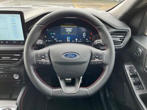 12-Way Ergonomic Power Adjust Drivers and Passengers Seat 12V Power Point in Floor Console 12v Power Point in Cargo Area 12v Socket - Voltage Regulator 19in Alloy Wheels - ST-Line- Ebony Black - Machined Finish 2nd Row Sliding Seats 360 Degree Camera ABS - Anti-lock Braking System Acoustic Vehicle Alert System - AVAS Adaptive Cruise Control Air Conditioning - Electronic Automatic Temperature Control - EATC Airbag - Driver and Front Passenger Side Airbag - Front Passenger Deactivation Switch Airbags - Driver and Front Passenger Airbags - Front and Rear Side Curtain Aluminium - Finish Front Scuff Plates with ST-Line Script Aluminium Foot Pedals - ST-Line Design Ambient Lighting Auto Dimming Rear View Mirror Auto Wipers Automatic Door Relocking Black Roof Rails Centre Console with Electronic Parking Brake Child Locks - Manual on Rear Doors Cross Traffic Alert Digital Colour 12.3in Instrument Cluster Driver Assistance Pack Driver and Passengers Sun Visor with Illumination Dual Exhaust Tailpipes with Unique Brushed Stainless Steel Finish EPAS - Electric Power Assisted Steering Electric Parking Brake with Auto Hold Electrical Charging Point in Second Row Engine Immobiliser - SecuriLock Enhanced Electronic Stability Control - ESC with Traction Control - Emergency Brake Assist - EBA - Hill Start Assist - HSA and Trailer Sway Control Exterior Door Handles - Body Coloured Ford Easy Fuel System Ford Keyfree System - Keyless Entry with Ford Power Starter Button Ford SYNC 4 Navigation Front Seats - 2-Way Manual Height Adjust Passive Head Restraints Front Seats - Drivers and Passengers Seatback Map Pockets Front Seats - Sports Style V-shape with High Bolster Front Windows - Laminated Glass Front and Rear Bumper - Sporty Body Colour with Rear Ebony High-Gloss Insert Front and Rear Floor Mats with Red Stitching Front and Rear Parking Sensors Full LED Headlamps Gearshift - Automatic - Electronic Rotary Gearshift Dial Glovebox Lights Handsfree Power Tailgate Headlights - Automatic Follow Me Home Lighting Headlights - Automatic High Beam Assist Headlights - Levelling System - Manual Headlights - Unique Bending Headliner - Sports Dark Heated and Power Folding Door Mirrors - Puddle Lights - Memory Function - Camera High-Mounted Brake Light Kuga Badge LED Daytime Running Lights LED Fog Lights - Front Lane Keeping Aid with Lane Departure Warning Large Rear Spoiler Load Compartment - Lights Load Compartment - Tie Down Hooks Load Compartment Carpet Locking Wheel Nuts Lower Bodyside Moulding - Body Colour Lower Door Frame Beltline - Black Mini Overhead Console with Sunglasses Holder Bin MyKey Pop-Out Door Edge Protectors Power Door Deadlocks - Double Locking Power Door Locks Power Opening Panoramic Roof Pre-Collision Assist with Autonomous Emergency Braking Quickclear Heated Windscreen Rear Duct on B-Pillar Rear Lights - LED Rear Privacy Glass Rear Seat - 60-40 Split Folding Seats Rear Seat Centre Head Restraint Rear Seats - 2-Way Head Restraint Up-Down Rear Seats - Folding Centre Armrest with Integrated Cup Holder Rear Seats - Sliding Seat Adjust Tracks - Fore-Aft Red Brake Calipers Remote Tailgate Release Removable Package Tray Rocker Panel Mouldings - Body Colour - ST-Line Design ST-Line Badge on Left and Right Side Wings ST-Line Bodystyling Kit ST-Line Front and Rear Bumper Moulding - Body Colour Seat Belt - Drivers - Front Passenger and Rear Seat Belt Reminder Alert Seat Belts - Front 3-Point Seatbelts with Load Limiter Seat Belts - Front Height Adjustable Seat Belts - Rear Retractable Rear Belt - 3-Point All Positions Seats - ISOFIX Mounting Provision for Child Seats - Outer Seats Only Selectable Drive Modes Single Rear Fog Light Standard Home Charging Cable - 3-Pin Domestic Socket 230V Steering Column - Locking Electric Steering Column - Rake and Reach Adjustment Steering Wheel - ST-Line Sports-Style Perforated Sensico-Trimmed with Red Stitching Suspension - Sports Tailgate Badge - PHEV - Plug-In-Hybrid Tailgate Handle - Body Colour Tether Anchorage - Two Rear Seat Top Tether Anchorage Restraints Thatcham Category 1 Perimeter and Volume Sensing Alarm Tow Hooks - Front and Rear Trip Computer Tyre Inflation Kit Tyre Pressure Monitoring System Upper Door Frame Beltline - Black Windows - Power Front and Rear with Global Closing Winter Pack Wiper - Intermittent Rear Window Wiper Wrong Way Alert eCall