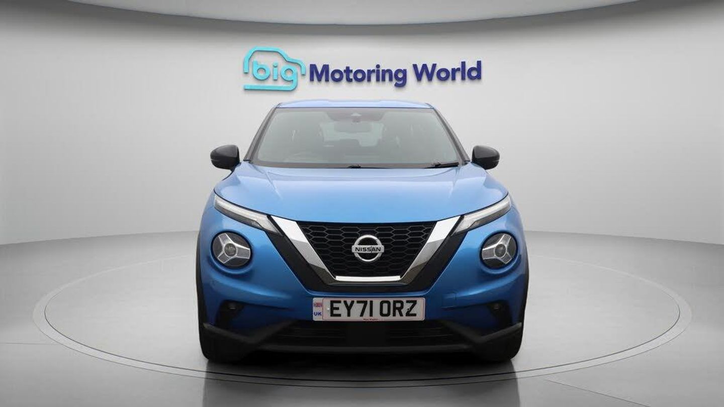 Leather Seats,Apple CarPlay-Our Nissan Juke is finished in Blue. Specification includes a range of fantastic features including Leather Seats, Apple CarPlay, Adaptive Cruise Control, Android Auto, Privacy Glass, Heated Seats, Heated Windscreen, Rear View Camera, Bluetooth, Bose Specification information is supplied by CAPHPI and may vary to the actual car. This data does not form any part of a buying contact. Please check specification prior to purchase in-store. The MOT is valid until October 2026, visit bigmotoringworld.co.uk for more photos, a 360 tour, service history and a free HPI report.Were BIG on peace of mind and this Blue Nissan Juke has completed our comprehensive 200 point inspection and passed all checks. Its ready for you to drive away with immediate collection in-store. We include a 90-day warranty as standard plus an option to extend for up to 3 years.Reserve this car exclusively for you, safely and securely at bigmotoringworld.co.uk, with a fully refundable £99 deposit. Test drive before you buy, with no commitment, no hassle and a completely haggle free experience. Still searching and want to see thousands more cars? We are BIG on choice with over 8000 cars to choose from.Visit our award winning web site bigmotoringworld.co.uk.Were Big Motoring World and were BIG on what matters to you.-Multi Award Winning Website & Car Supermarket of the year WINNER 2018. Call now.