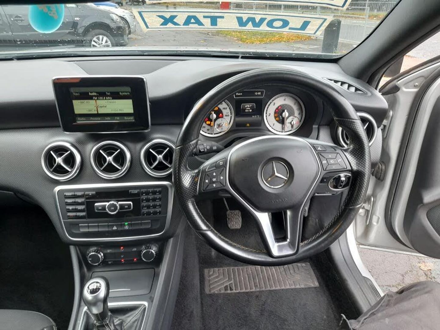 MERCEDES A180 BLUEEFFICIENCY SPORT CDI 5 DOOR HATCHBACK in Silver 1.5l turbo diesel manual 73173 miles standing on 17" alloy wheels. Part Black leather interior seats with white stitching, isofix in rear. Central locking, cruise control, electric windows and mirrors, A/C, radio, CD player, full airbags, bluetooth. This vehicle has had 2 former keepers and comes with service history. Road tax is ONLY £20 for the year and has an average of 72.4mpg. ALL OUR VEHICLES ARE SOLD WITH 12 MONTHS MOT AND A FULL SERVICE INCLUDED IN THE PRICE. Warranty is 3 months/3000 miles.