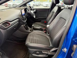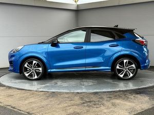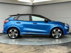18in Alloy Wheels - 5-Spoke - Matt Black Machined Finish, ABS - Anti-lock Braking System, Acoustic Laminated Windscreen, Active Grille Shutter, Automatic Dimming Rear View Mirror, Automatic Headlights with Rain-Sensing Wipers and Auto High Beam, B&O Premium Audio System and Ford SYNC 3 Navigation, Carbon-Look Interior Deco Spears, Centre Console - Premium with Openable Stowage Area with USB Connectivity - 2 Cupholders and 12v Power Point, Courtesy Lights - Ambient LED Courtesy Lighting - Single Colour, Cruise Control with Intelligent Speed Assist, Drivers Manual 4-Way Seat Adjustment with Manual Lumbar Adjust, ESC - Electronic Stability Control and Hill Start Assist, Ecoboost Hybrid Tailgate Badge, Electric Windows - Front and Rear, Electronic Air Temperature Control - EATC, Emergency Brake Warning - Automatic Hazard Warning Lights, First Aid Kit Strap, Ford MegaBox Extended Bootspace, Ford Power Starter Button, Front Bumper - Unique ST-Line Sport Design - Body Colour, Front Floor Mats, Front Fog Lights, Front Seats - Sports Style, Full Digital 12.3in Instrument Cluster, Gear Knob - Aluminium, Handbrake - Black Sensico Trimmed with Stitching, Headliner - Deluxe, Instrument Panel - High Level, Intelligent Speed Assistance, LED Rear Lights, Lane Keeping Aid with Lane Departure Warning, Large Rear Spoiler - Body Colour with Centre High Mounted Stop Light, Locking Wheel Nuts, Lower Bodyside Moulding - Body Colour, Passenger 4-Way Seat with Lumbar Adjustment, Post Collision Braking, Power Steering, Power-Foldable Heated Door Mirrors with Puddle Lamps, Pre-Collision Assist with Autonomous Emergency Braking and Pedestrian-Cyclist Detection, Privacy Glass, Projector Headlamps with LED Daytime Running Lights, Puma Badge, Quickclear Heated Windscreen, Rear Bumper Body Colour - Diffuser, Rear Parking Sensors, Rear Seats - 2-Way Head Restraint Up-Down, Rear Seats - Second Row 60-40 Folding Seats, Remote Central-Double Locking, Restrain Device Pack, ST-Line Badge, ST-Line Body Styling Kit, ST-Line Flat-Bottomed Leather Steering Wheel with Unique Red Stitching, Selectable Driving Modes - Normal - Eco - Sport - Slippery and Trail, Soft-feel Gearshift Boot with Red Stitching, Speed Limiter, Sports Suspension, Tailgate - Manual, Thatcham Alarm, Traction Control and Emergency Braking Assistance, Trip-Fuel Computer, Tyre Inflation Kit, Tyre Pressure Monitoring System - TPMS, Wireless Charging Pad with Electronic Air Temperature Control EATC