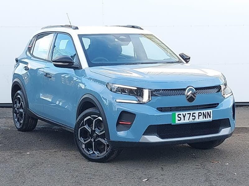 Rear parking sensors, 17" Atacamite diamond cut bi-tone alloy wheels with locking wheel nuts, DAB digital radio, 6 loudspeakers, 10.25" capacitive touchscreen, wireless mirror screen includes apple carplay/android auto and bluetooth, Cruise control + speed limiter, Manual air conditioning, 3D rear light signature, Active lane departure warning system, Citroen connect box emergency and assistance system, Connected services, Multi function trip computer, Head up Display, Exterior temperature display, Electric power steering, eCall emergency call system, e-toggle gear selector, 1x USB-C fast charge on high console, 1x USB-C fast charge in row 2, 1x USB-C connection on dashboard, Remote charging, Fast charging DC 100kW, Advanced comfort suspension with progressive hydraulic cushions, Electric front power windows with auto up/down for the driver and auto down for passenger, Body colour bumpers, Black wheel arch extensions, Black roof bars, Automatic headlights, Automatic activation of hazard warning lights, Turn indicators integrated into rear view mirrors, Tinted side windows, Standard day night switchable interior rear view mirror, Rear side wing doors, Rear roof spoiler, LED third brake light, Electrically heated, folding and adjustable external rear view mirrors, Front and rear skid plates in grey, Front intermittent wipers, Gloss black exterior door handles, Gloss black finish B and C pillar, Gloss black rear view mirror caps, Heated rear window, Intelligent beam headlights, LED daytime running lights, LED headlights with electric levelling, Map pockets in back of driver and front passenger seats with additional pocket for smartphone storage, 1 litre bottle storage in front and rear door pockets, 1/3 to 2/3 split folding rear seat, 12V socket on console, Advanced comfort front and rear seats, 4x anchoring rings on boot, Bag support hook in boot, Central storage with 2 cupholders, Chrome effect interior door handles, Closed glove box, Cloth upholstery, Driver and passenger's sun visor with courtesy mirror, Driver's seat height adjustment, Fixed boot light, Front seats adjustable with forward back slide and adjustable backrest, Seatbelt unfastened on the move audible and visual alert for front and rear seats, Parcel shelf, Padded fabric armrests in front and rear doors with labels, LED front lighting panel with map reading lights, Leather effect steering wheel with gloss black and chrome elements and integrated audio/telephone/cruise control/speed limit controls, ISOFIX mounting on outer rear seats with top tether and labels indicating fixing points, High console with armrest and closed storage, Height/reach adjust steering wheel, Height adjustable front head restraints, Tyre pressure monitoring system, Three rear 3-point seatbelts, Mono-tone horn, Hill start assist, Front side airbags + front/rear curtain airbags, Front passenger airbag deactivation, Front passenger airbag, ESP with anti skid system, Electric parking brake, Driver's airbag, Driver and front passenger seatbelts with pyrotechnic pretensioners and force limiters, Child locks on rear doors, ABS, Remote control central locking with 1x plip key and 1x non plip key, Immobiliser, Connected anti theft alarm (Volumetric and perimetric with tilt sensor), Central locking with deadlocks, AVAS Approaching vehicle alert system, Automatic door and boot locking when moving off with automatic unlocking in case of impact, 2 side air vents and 2 central air vents on dashboard
