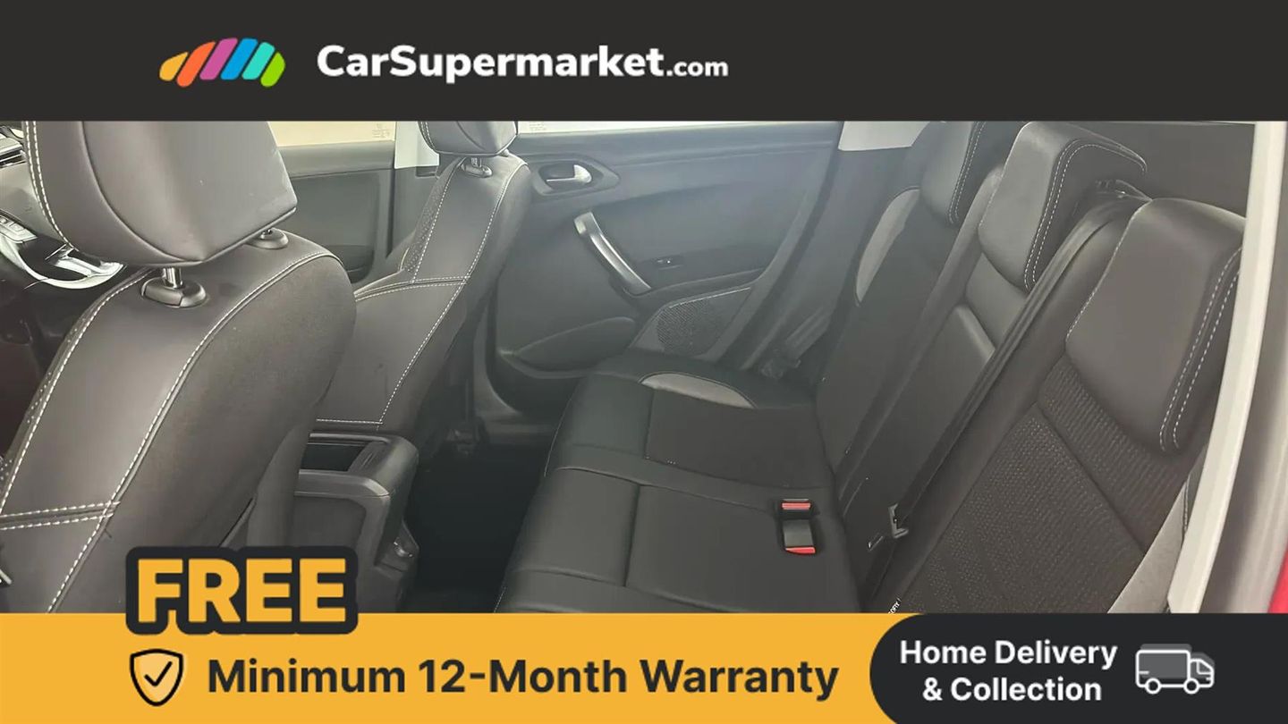 Apple car play/Android Auto,Aviation style handbrake,Bluetooth system,Cruise control + speed limiter,Electrically assisted power steering,External temperature gauge,Mirror link,Multifunction 7" touchscreen with steering wheel mounted control,Service interval indicator,Trip computer,2 front and 2 rear speakers + 2 tweeters,DAB Digital radio,USB interface,Automatic activation of hazard warning lights,Body colour bumpers,Bright chrome fog lamps surround,Bright chrome radiator grille with embossed pendant design and bright chrome surround,Colour coded door handles,Colour coded door mirrors,Cornering front fog lights,Electric front/rear windows with one touch/auto up/down,Electrically operated heated door mirrors with electric folding operation,Follow me home headlights,Front and rear scuff plates,LED daytime running lights,LED track - Laser cut headlining with ambient backlighting,Rear fog lights,Rear LED Peugeot signature 'Claw Effect' lights,Rear sports spoiler,Rear wash/wipe,Roof bars,Tinted rear and side windows,Wheel arch extensions,1/3 to 2/3 rear bench seats with one touch fold,3 point rear seat isofix location mount X 2,3 rear head restraints,Auxilliary 12V power socket,Driver seat height adjust,Driver/passenger sunvisors,Dual zone automatic air conditioning,Front head restraints,Gear shift indicator,Height/reach adjust steering wheel,Leather and chrome gear knob,Leather steering wheel,Vanity mirrors,Visibility pack - 2008,3 rear 3 point seatbelts,ABS/EBFD/EBA,Child safety lock,Driver and passenger airbags with passenger airbag deactivation switch,ESP with Hill Assist,Front and rear curtain airbags,Front side airbags,Grip control,Seatbelt warning lamp and buzzer,Tyre pressure sensor,Alarm,Deadlocks,Remote central locking,Thatcham Cat 2 engine immobiliser,LED blue instrument dial surround,15" steel spare wheel,17" Eridan anthra alloy wheel
