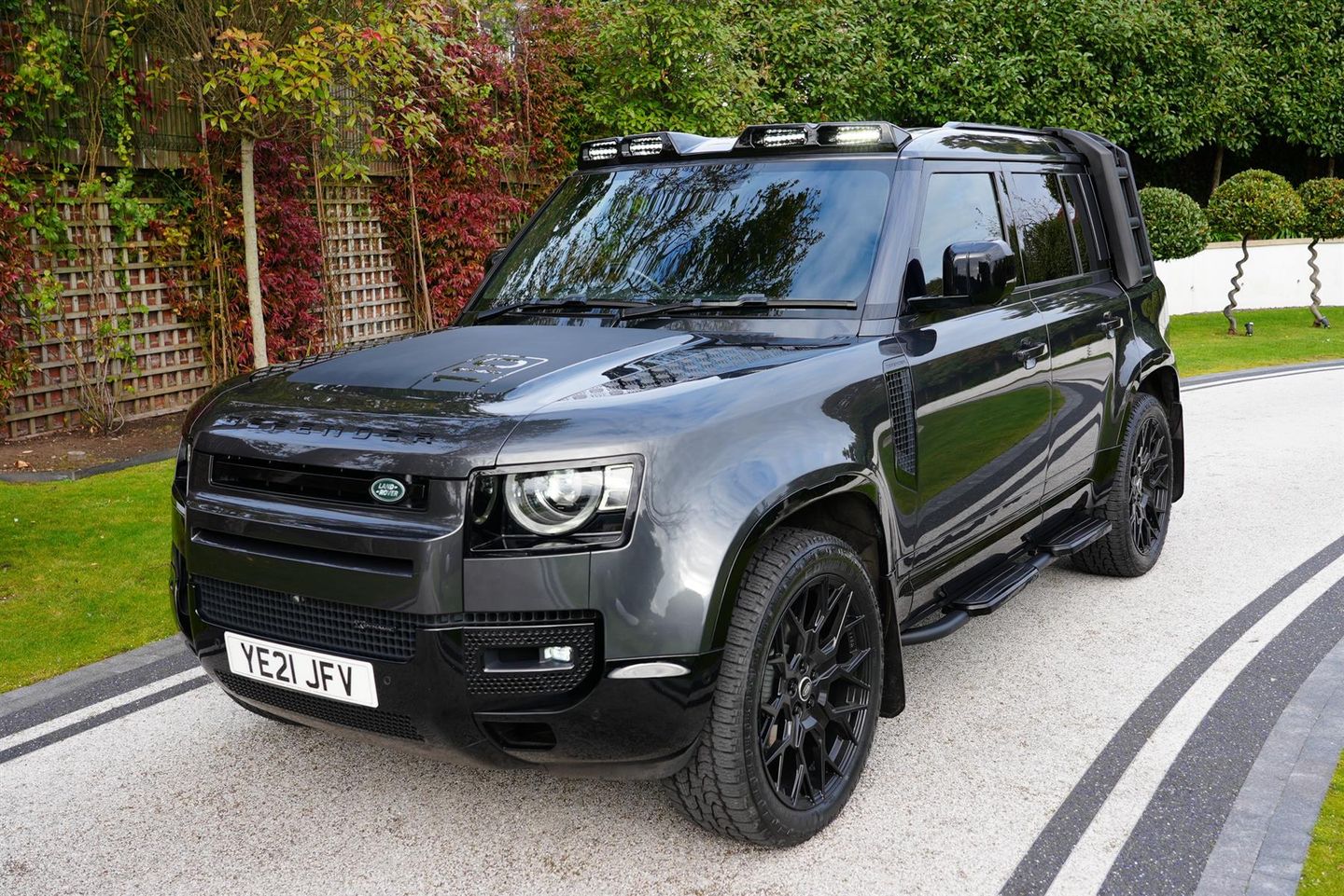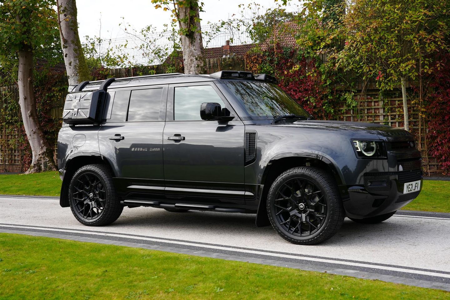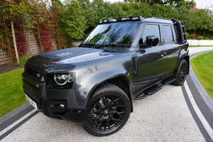 This 2021 Land Rover Defender 110 is a fantastic looking example, finished in a stunning shade of Carpathian grey. Having only had 2 previous owners from new, it's in superb condition throughout. It boasts the highly sought after 3.0 6 Cylinder engine in the D300 specification, giving it an ample 296bhp and a towing ability of up to 3500kg. 4 wheel drive is fitted standard with interchangeable modes for trickly conditions. The optional extra air suspension is a treat on the roads with a very smooth bump reeaction. The vehicle is also equipped with stunning gloss black trims from standard, including a variety of extras such as the exterior ladder and side box, gloss black rear spoiler, LED light bar, side steps, bonnet decals and those all important 22'' Multi-Spoke alloy wheels. The original owner didn't cheap out on the interior spec either, having a full textured leather interior, panoramic roof and a 360 degree camera for effortless manoeuvring. Enjoy the comfort of automatic two-zone climate control and heated front seats. With 3 USB-c ports, 3 cigarette ports, Apple CarPlay and Android Auto, it's safe to say, the spec on this Defender is more than adequate. Features and Spec - 22'' Velare Alloy Wheels - Nankang Conqueror 245/45/R22 Tyres - Factory Air Suspension - Ladder and Side Pod in Gloss Black - Trims and Flares in Gloss Black - Defender Badging in Gloss Black - Defender 110 Bonnet Decal in Matte Black - Lip Spoiler in Gloss Black - Spare Wheel Cover in Gloss Black - Rear Tow Hooks in Gloss Black - Land Rover Mudflaps - Side steps in Gloss Black - LED Roof Light Pod (Main Beam) - Interior Upholstery in Black Leather - Bluetooth Connectivity - Apple CarPlay - Android Auto - Leather Steering Wheel in Black - Adaptive Cruise Control on Steering Wheel - Full Quilted Carpet Mat Set - Front Heated Seats - Passenger / Driver Individual Zone Auto Climate Control - Front USB-C Port - Front USB Phone Connecting Port - Front 12V Auxiliary Port - X2 Rear USB-C Port - X2 Rear 12V Auxiliary Port - X2 Rear USB Port - Rear Boot Upholstered Luggage Cover, .