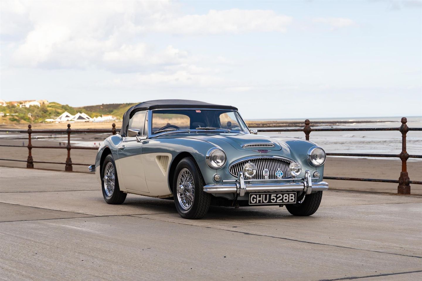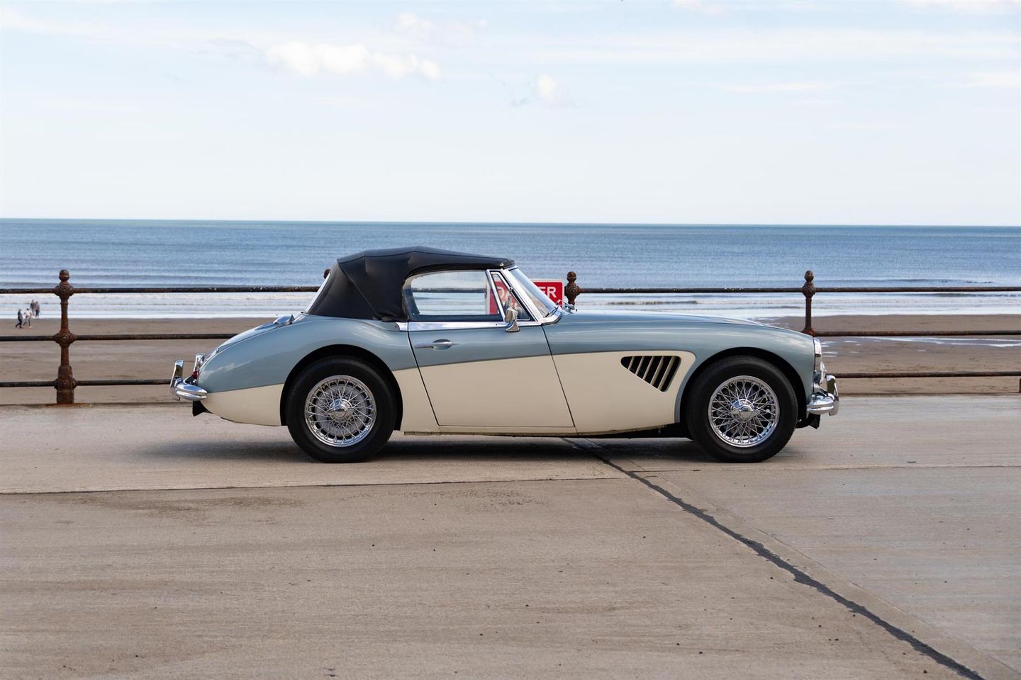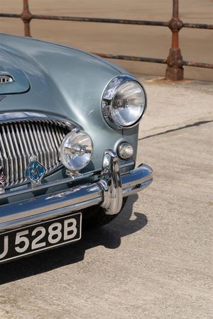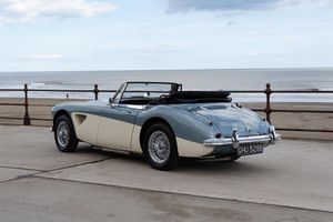 Austin Healey 3000 Mk 3 Phase 1. Original duotone Healey blue over ivory white car which was supplied new to Madrid, Spain in 1964. Older restoration but well maintained example.