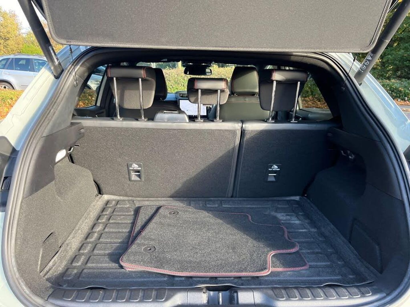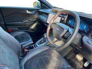 Driver impairment monitor, Emergency call service, Ford easy fuel, Full digital 12.8" instrument cluster, Lane keeping aid with lane departure warning, Power assist steering, Selectable drive modes(Normal, sport, Eco, trail, slippery), Speed sign recognition, Sport suspension, 12" landscape touchscreen display with wireless apple car play and android auto premium B&O audio system with 10 speakers, Ford pass connect and emergency assistance, Ford SYNC4 with connected navigation, Automatic headlights with rain sensing wipers and auto high beam, Front fog lamps, LED daytime running lights, LED rear lamps, LED third brake light, Power foldable heated door mirrors with puddle lamps and puma logo protection, Quickclear heated windscreen, Rear privacy glass, Rear side wing doors, Rear wiper, ST-Line body styling kit with unique grille, 3 seat bench in 2nd row, 4 way lumbar support for passenger seat, Centre console with armrest and stowage, Electronic automatic temperature control (EATC), Ford megabox extended bootspace, Front and rear head restraints, Front floor mats, Manual 4 way driver seat adjust with lumbar adjustment, Single front passenger seat, ST-Line X Premium synthetic leather upholstery, Comfort pack with power lift tailgate - Puma, 3 rear seatbelts, Child safety lock, Electronic stability control (ESC) and hill start assist, Pre-collision assist with autonomous emergency braking, pedestrian/cyclist detection & post-collision braking, Tyre pressure monitoring system (TPMS), Thatcham alarm