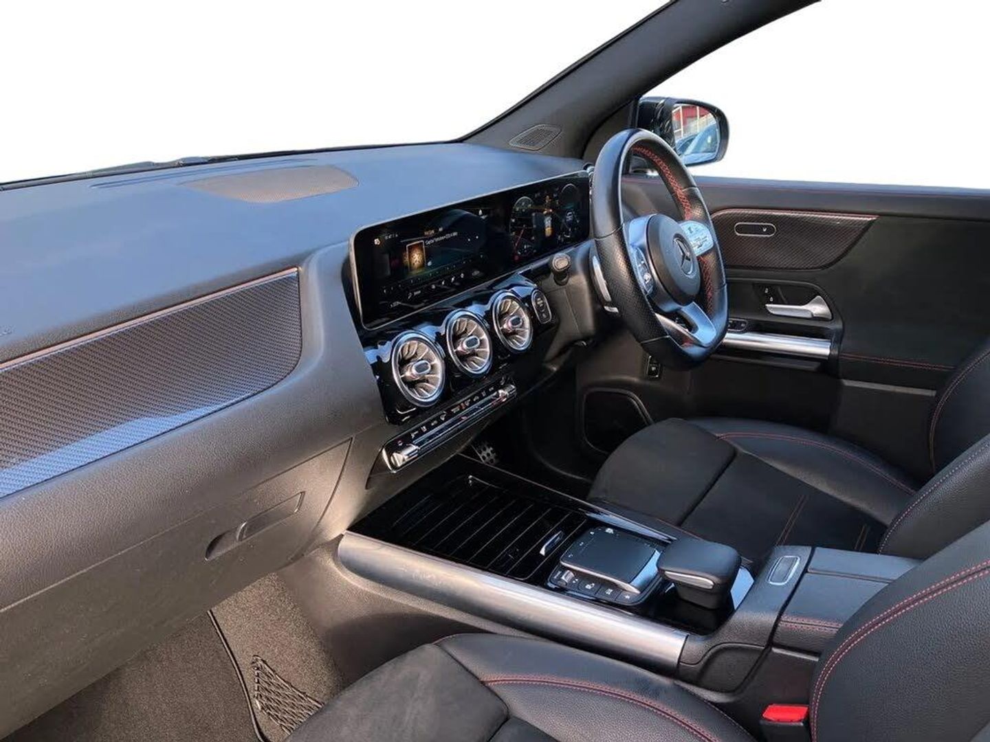 10.25 inch touchscreen central media display,10.25" Digital instrument cluster display screen,Active lane keeping assist,Attention assist,Cruise control + speed limiter,Direct steering,DYNAMIC SELECT with a choice of driving modes (ECO, Comfort, Sport and Individual),ECO start/stop function,Fluid level warning indicator for fuel, oil, coolant and washer fluid,Hard-disk navigation,Hey Mercedes Voice activation,Lamp failure indicator,Mercedes me connect including emergency call system, accident recovery, breakdown and maintenance management,Mercedes me remote services,Multi function trip computer,Outside temperature gauge,Owners manual and service booklet in English,Pre-installation of private car share,Radio aerial integrated into front and rear windshields,Service indicator (ASSYST),Smartphone integration with Apple CarPlay and Android auto,Speed limit assist,Status display for rear seat belts in instrument cluster,Lowered comfort suspension,Rear axle multi-link,2 USB ports (type C) in rear stowage compartment and one in front of center console,Bluetooth connectivity including audio streaming,DAB Digital radio,MBUX multimedia system,Media interface,Mercedes-Benz (225w) sound system with 10 speakers,Adaptive brake lights,Aerial for GPS,Aluminium roof rails,AMG front and rear apron,AMG specific/dual flow exhaust pipes in chrome (non-functional),Automatic headlamp activation,Beltline strips and weather strip in chrome,Black grained claddings with chrome parts,Body colour bumpers,Body colour door mirrors,Body coloured door handles with chrome insert for keyless entry,Car wash function,Dark privacy glass from B-pillar backwards,Electric front windows,Electric rear windows,Electrically adjustable and heated door mirrors with integrated LED indicators,Front bumper with underride guard in high gloss chrome,Heat insulating dark tinted glass,Heated glass rear windscreen + timer control,Heated windscreen wash system,Interior mirror with black reading lamps and frameless,LED high performance headlamps with integrated LED daytime running lights,LED tail lights in two piece design,LED third brake light,Matt titanium grey front and rear apron trim,Rain sensor windscreen wipers,Rear fog lights,Rear side wing doors,Rear wiper,Roof spoiler,Single lamella raditor grille with chrome dotted diamond grille and inlay,12V power socket in centre console,3 seat bench in 2nd row,3 spoke multifunction sports steering wheel in nappa leather with flattened bottom and perforated grip area,40:20:40 split folding rear seat backrests,Adjustable head restraints,Air conditioning - Two zone thermotronic luxury automatic climate control with display,Ambient lighting in front headrests,AMG floor mats in black with AMG lettering in front,Artico man-made leather/Microcut microfibre upholstery with red contrast stitching,Auto Mercedes-Benz child seat recognition sensor,Black roof lining,Brushed door pulls in silver chrome,Courtesy light in boot,Floor mats in velour,Front centre armrest with stowage,Galvanished gear shift paddles on steering wheel,Heated front seats,illuminated door sills with changeable cover,Illuminated glovebox,Interior lighting - 64 colour Ambient lighting,Leather trimmed gearknob,Luggage net on driver/front passenger seat backrest,Manually height and reach adjustable steering column,Multi-gesture touchpad control on center console,Single front passenger seat,Sports pedals in brushed stainless steel with black rubber studs,Sports seats,Stowage compartment in centre console,Stowage compartment with retractable cover,Sunvisors with illuminated vanity mirrors,Twin front cup holders,Two outer rear seat isofix and top tether child seat fixing points,AMG body styling pack - GLA,Comfort seat pack - GLA Class,Interior lighting with light and sight pack - GLA,Keyless go comfort package - GLA,Load compartment pack - GLA,Mirror pack - GLA Class,Parking pack - GLA,3 rear 3 point seatbelts,ABS with Brake Assist,Active bonnet pedestrain safety measure which detects an impact and raises bonnet by 65mm,Active brake assist includes forward collision warning system with autonomous braking,Adaptive brake assist with hold function and hill start assist,Bonnet with power domes,Brake pad wear warning indicator,Childproof locks manually operated for rear doors and electrically operated for rear power windows,Crash responsive emergency lighting,Driver and passenger head and side airbags,Drivers knee airbag,Dual stage driver/passenger airbags,Electronic parking brake,ESP curve dynamic assist,ESP with ASR,Front and rear seatbelt reminder,Front brake callipers with Mercedes Benz logo lettering on front,Front brake discs internally ventilated and perforated,Front passenger seat occupancy sensor,Sports braking system,Tyre pressure monitoring system,Warning triangle and first aid kit,Window airbags,Alarm system with immobiliser and interior protection -Thatcham category 1,Keyless entry lock/unlock,Keyless Go starting function