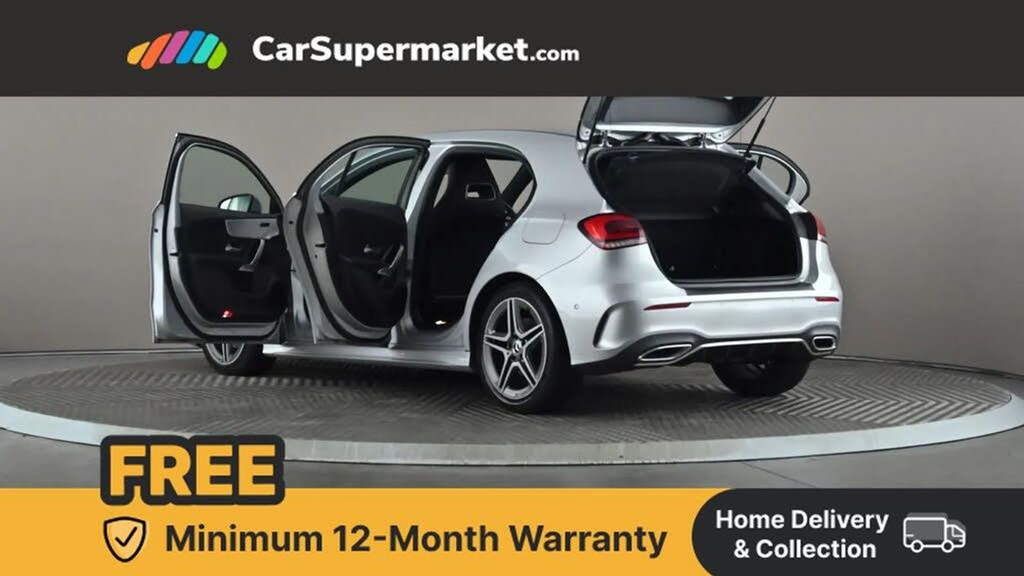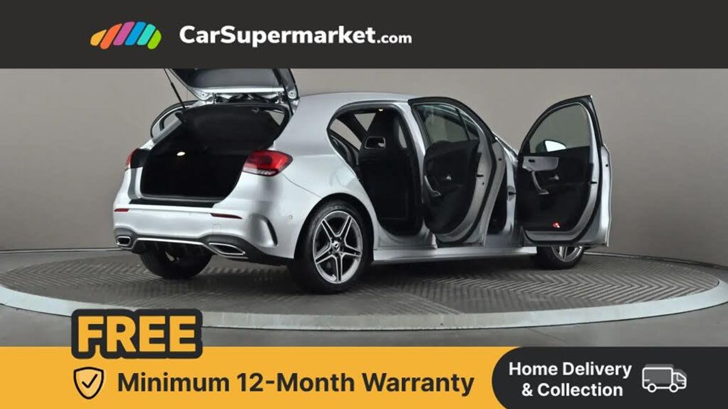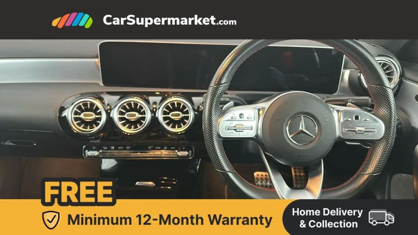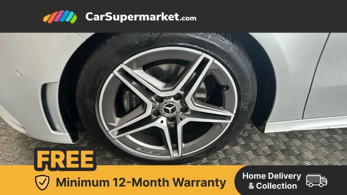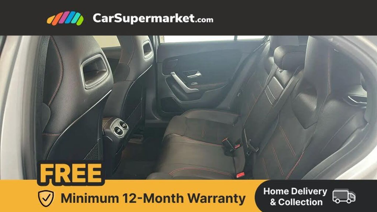 10.25" Digital instrument cluster display screen,10.25" media display,180 degree rear view camera with parking guidelines,Active lane keep assist,Active park assist with parktronic system including front and rear parking sensors,Attention assist,Brake pad wear indicator warning light,Direct steering,Direction indicators with lane change function,DYNAMIC SELECT with a choice of driving modes (ECO, Comfort, Sport, Sport+ and Individual),Fluid level warning indicator for fuel, oil, coolant and washer fluid,Hard-disk navigation,Lamp failure indicator,Mercedes me connect including emergency call system, accident recovery, breakdown and maintenance management,Outside temperature gauge,Radio aerial integrated into roof spoiler,Service indicator (ASSYST),Speed sensitive power steering,Stop/start system,Trip computer,Voice activation,Lowered comfort suspension,DAB Digital radio,Dual bluetooth interface, 2 USB ports (type C),MBUX multimedia system with DAB digital radio and touchpad including satellite navigation,Mid-range sound system,Adaptive brake lights,AMG front, rear apron and side skirts,Blue tinted glass,Body colour bumpers,Body colour door handles,Body colour side skirt,Body coloured door mirrors,Chrome beltline trim,Diamond radiator grille with chrome pins and silver louvre + chrome insert,Electric adjustable and heated door mirrors with integrated LED side indicators,Electric front windows,Electric rear windows,Exhaust system - Twin trapezoidal tailpipes in polished stainless steel,Headlamp assist automatic headlamp activation,Heated glass rear windscreen + timer control,LED high performance headlamps with integrated LED daytime running lights,LED tail lamp,LED third brake light,Rain sensor windscreen wipers,Rear fog lights,Rear wiper,12V socket,3 Spoke flat bottom leather multi function steering wheel with perforated leather in grip area,40:20:40 split folding rear seats,Air vents surround and cruciform nozzle in silver chrome,Artico man-made leather/Microfibre Dinamica upholstery with red contrast stitching,Auto Mercedes-Benz child seat recognition sensor,Black roof lining,Brushed stainless steel sports pedals with rubber studs,Controller on centre console with chrome surround,Cup holder and stowage compartment lighting,Front centre armrest with storage compartment,Front door sills with Mercedes Benz lettering,Front footwell lights,Front reading lamps,Front seat backs luggage nets,Front seat cushion length adjustment,Front signal exit lamp,Front vanity lights,Gearshift paddles on steering wheel,Handle recess/closing light,Height/reach adjustable steering column,Illuminated door sills,Illuminated glovebox,Interior lighting - 64 colour Ambient lighting,ISOFIX Child seat top tethers and anchor fixings,Load securing rings in luggage compartment,Luggage compartment cover,Manual height adjustable front seats,Oddments tray lighting,Rear armrest,Rear head restraints,Rear Reading Lamps,Seat occupancy sensor for front passenger seat,Sports seats with integrated headrests,Storage compartment under load area floor,Sunvisors with illuminated vanity mirrors,Touchpad,Touchpad illumination,Twin front cupholders,Two zone thermotronic luxury automatic climate control,Mirror package - A Class,Seat comfort pack - A Class,3 rear 3 point seatbelts,ABS with Brake Assist,Active bonnet,Adaptive brake assist with hold function and hill start assist,Black seatbelts,Brake calipers with Mercedes-Benz lettering + perforated brake discs,Childproof locks manually operated for rear doors and electrically operated for rear power windows,Crash responsive emergency lighting,Driver and passenger head and side airbags,Drivers knee airbag,Dual stage driver/passenger airbags,Electronic parking brake,ESP curve dynamic assist,ESP with ASR,Front and rear seatbelt reminder,Tyre pressure monitoring system,Warning triangle and first aid kit,Window airbags,Alarm system/interior protection/immobiliser,Keyless Go Lock/Unlock function,Remote central locking and crash sensor with emergency opening function,18" AMG 5 twin spoke light alloy wheels in titanium grey with highsheen finish,Tirefit sealant kit,Mojave Silver