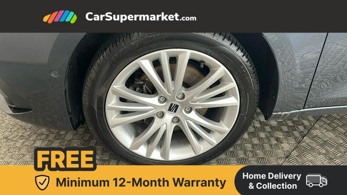 Cruise control with speed limiter,Digital cockpit,E-call,Four x USB Type C ports,Front assist with forward collision warning braking reaction to vehicles, pedestrians and cyclists,Full link smartphone integration with Mirror Link, wireless Apple CarPlay and wired Google Android Auto,Lane assist,Lockable tailgate,Park assist (inc front/rear parking sensors),Power assisted speed sensitive electro-mechanical steering,RPM, trip computer, outside temp gauge, instrument light brightness, low fuel warning light, lights on reminder, gearshift indicator,Service interval indicator,Start/stop system with regenerative braking,Standard suspension,XDS electronic differential lock and dynamic traction support,7 speakers,Auxiliary input socket,Body colour door handles,Body coloured bumpers,Body coloured exterior mirrors with integrated LED indicators,Dark tinted rear windows,Dynamic headlight range control,Electric front/rear windows,Electrically adjustable and heated door mirrors,LED front fog lamps with cornering function,LED headlights and LED tail lights,LED rear fog lamp,Manual dimming rear view mirror,Matt black roof rails,Rain sensor,Rear coast to coast lighting,Rear side wing doors,Rear wash/wipe,Separate daytime running light with automatic headlight control,Third brake light,Welcome light silhouette from exterior mirrors,12V Accessory socket in the load area,12v power point in centre console,3 seat bench in 2nd row,60/40 split rear bench seat,Driver seat lumbar adjustment,Driver/passenger manual seat height adjustment,Dust/pollen filter,Front and rear height adjustable headrests,Front and rear reading lights X 4,Front centre armrest,Front seatback storage pockets,Grey headlining,Height/reach adjust steering wheel,Illuminated glove box interior lighting,ISOFIX points in outer rear seats with top tether anchorage points,Leather flat bottomed, perforated steering wheel and leather gearstick,Luggage tie-down hooks,Single front passenger seat,Sliding boot cover,Sunvisors with mirror,Three zone climate control,Two tone cloth upholstery,Media system plus with navigation - Leon,3 point seatbelts on all rear seats,ABS,Brake control system - ESC and brake booster,Child proof door locks,Driver and front passenger airbags with front passenger airbag de-activation, front side and curtain airbags,Electronic parking brake,Extended safety system - seat belt tensioner, window closure and hazard lights,Hill hold control,Rear disc brakes,Seat belt reminder for front and rear seats,Tiredness recognition system, driver alert system,Tyre pressure monitoring system,Anti theft alarm system with interior monitoring in cab, backup horn and towing protection,KESSY Go (Keyless start),Locking wheel bolts,Chrome interior detailing,17" Dynamic tri-spoke alloy wheels with 91W tyres,Tool kit,Magnetic Grey