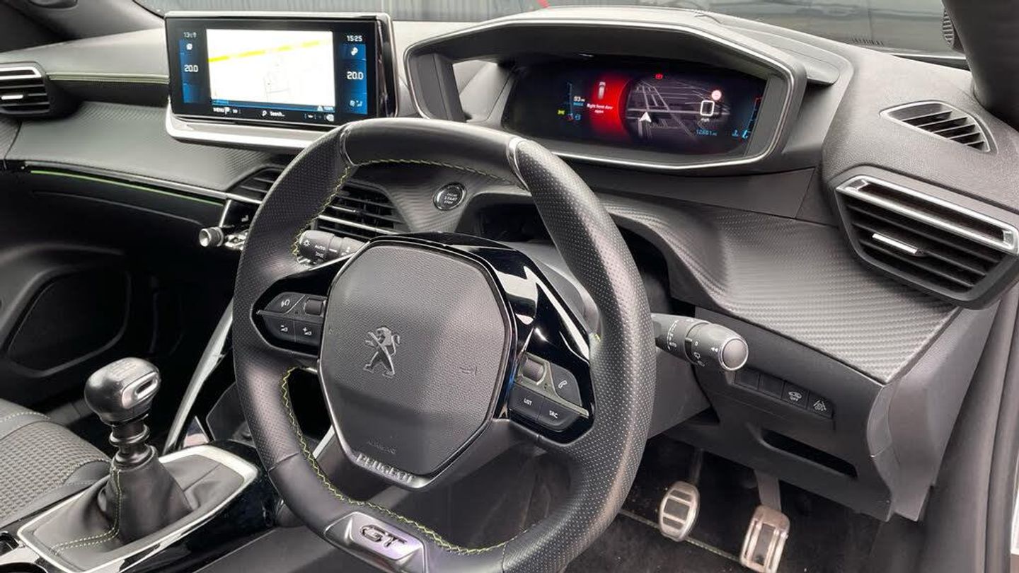 12V Power Socket, 6-Speaker Radio - MP3 Compatible, Bluetooth Telephone Facility, DAB Digital Radio, Front USB Socket x2 including x1 USB-C, Mirror Screen - Apple CarPlay - Android Auto and MirrorLink, Peugeot Connect SOS and Assistance, PEUGEOT i-Cockpit 10in Capacitive Colour Touchscreen with Connected 3D Navigation, Rear USB Socket x2, Smartphone Charging Plate, Smartphone Docking Station, Blind Spot Monitoring System, Driver Attention Alert, Exterior Temperature Indicator with Ice Warning, Front and Rear Parking Sensors, Gear Shift Indicator, Multifunction Trip Computer, PEUGEOT 3D i-Cockpit - Configurable 3D Head-Up Instrument Panel, Programmable Cruise Control and Speed Limiter, Tyre Pressure Sensors, Visio Park 1 - 180 Degree Colour Reversing Camera, Voice Recognition - Radio-Navigation-Telephony Features, 17in Alloy Wheels - Salamanca - Diamond Cut, Dark Tinted Rear Side and Tailgate Windows, Door Mirror Shells - Diamond Black, Electric - Heated and Power Folding Door Mirrors with Floor Lighting, Electric Windows - Front and Rear with One Touch, Exhaust Pipe - Twin Chrome Surrounds, Exterior Door Handles - Body-Colour, Front Wing Trim - Black with Gloss Black Detail and GT Badging, Gloss Black B Pillar, Gloss Black Rear Cluster Connecting Strip, Gloss Black Window Surround, GT Model Designation Badging on Tailgate, LED Side Indicator Lights Integrated into Door Mirrors, Longitudinal Roof Bars - Gloss Black, Lower Door Protection with Silver Inserts, Lower Front Bumper - SIlver, Model Designation Badges - Front and Rear, Nera Black - Roof, Radiator Grille - Dark Chrome Chequered and Gloss Black Edge Trim, Radiator Grille - Gloss Black Higher Part, Rear Number Plate Lights x2, Rear Spoiler - Diamond Black, Stainless Steel Door Sill Scuff Plates, Tailgate with Heated Rear Windscreen and Wiper Blade, Tyre Inflation Kit, Visibility Pack, Wheel Arch Extensions, Full LED Headlights with Smartbeam Assist, Headlights Left On Audible Warning, LED Daytime Running Lights - 3-Claw Headlight with Distinctive Tooth Design, LED Front Fog Lights with Remote Cornering Function, Rear Full LED 3D Peugeot Signature Claw Effect Lights with Daylight Function, 1-3 - 2-3 Folding Rear Seat, 8-Colour Customisable Ambient Lighting, Aluminium Pedals, Automatic Air Conditioning with Pollen Filter and Carbon Active Filter, Automatic Front Windscreen Wipers, Dashboard - Front and Rear Door Panel Finish - Carbon Effect, Driver and Front Passenger Seat Mechanical Height Adjustment, Driver and Front Passenger Sport Seats, Frameless Electrochrome Rear View Mirror, Front and Rear Carpet Mats in Black with Lime Green Stitch Detail, Front Central Armrest with Storage Compartment, Front Optimised Safety Headrests and Rear Retractable Headrests - x3 - Height-Adjustable, Gear Lever Top - Full Grain Leather, High Centre Console, LED Front Interior Light with Reading Spotlights -x2- and Rear Interior Light with Timer, Lime Green Contrast Stitching to Front Centre Console - Door Panels - Dashboard Facia, Map Pockets on Front Seat Backs, Mistral Full-Grain Perforated Leather Steering Wheel with Lime Green Stitch Detail and Satin Chrome GT Emblem, Modular Boot Floor - 2 Position, Peugeot i-Cockpit - Compact Multi-Function Steering Wheel, Piano Keys - Gloss Black and Chrome Plated Toggle Switches to Access Main Functions of Vehicle and Touchscreen Functions, Push Button Start, Rear Reversing Lights, Roof Lining - Mistral Black, Seating - Driver and Front Passenger Seat Manual Adjustment - Longitudinal and Back Rest Angle, Seats - Heated Front, Electric Power Steering with Reach and Rake Adjustable Steering Column, ABS with Electronic Brake Force Distributor EBD and Emergency Brake Assist EBA, Active Safety Brake - Night Function - Cyclists - Pedestrians, Alarm with Anti-Lift Sensor, Automatic Door Locking When Moving Off, Automatic Hazard Light Activation Upon Heavy Brake Application, Child Locking Functionality on Rear Doors, Deadlocking, Driver and Front Passenger Side Airbags, Driver and Passenger Airbag with Passenger Airbag Deactivation Switch, Electric Parking Brake, Electronic Code Immobiliser, ESP - Electronic Stability Program - with Hill Assist, Front and Rear 3 Point Retractable Seatbelts - With Force Limiter, Front and Rear Curtain Airbags, ISOFIX Child Seat Fittings - x2 in the Outer Rear Seat, ISOFIX Location Points - Front Passenger, Lane Keeping Assist, Rear Windscreen Wiper Triggered Automatically in Reverse Gear, Seatbelt Unfastened on the Move Audible and Visual Alert for Front and Rear Seats, Speed Limit Recognition and Recommendation