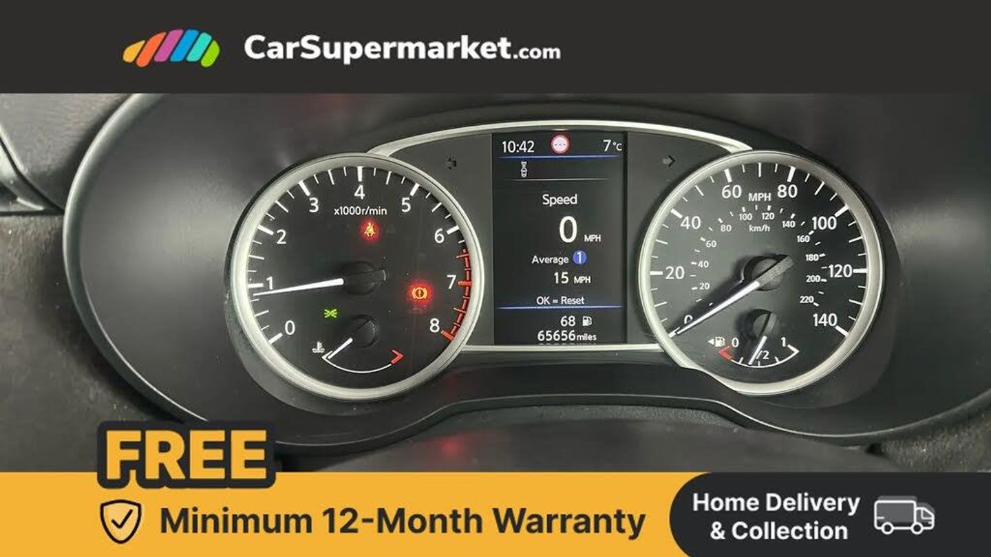 Adjustable speed limiter,Advanced drive assist display 5'' TFT coloured screen,Bluetooth system,Cruise control,eCall emergency call system,Engine start button,Lane departure prevention,Lane departure warning system,Nissan connect display audio,Outside temperature gauge,Power assist steering,Rear parking sensors,Rear view camera,Smartphone integration with Apple CarPlay and Android auto,Stop/start system,Traffic sign recognition,Trip computer,4 speakers,Audio system with MP3,DAB Digital radio,Steering wheel mounted audio controls,USB/iPod connection,Antenna,Automatic activation of hazard warning lights,Automatic headlights,Black door mirrors,Body colour front door handles,Body coloured bumpers,Concealed rear door handles,Electric folding door mirrors,Front and rear electric windows,Front fog lights,Heated door mirrors,High beam assist,High mounted stop lamp,Jacknife key type x1,LED Headlights,LED signature daytime running lights,LED turn indicators on door mirrors,Rain sensor windscreen wipers,Rear privacy glass,Rear roof spoiler,Rear side wing doors,Rear wiper with reverse link,Variable front intermittent wipers,12V power point front,2 height adjustable rear headrests,2 x front and 1 x rear cup holders,3 seat bench in 2nd row,60/40 split folding rear seat,Automatic air conditioning,Boot compartment cover,Boot light,Chrome interior door handles,Driver's seat manual height adjust,Driver/passenger sunvisors and vanity mirrors,Front and rear door pockets with bottle holders,Front console storage box,Gear shift indicator,Grey PVC front door pads,Height adjustable front headrests with satin sliver decoration,Illuminated electric window switch,Isofix front passenger and rear seat preparation,Leather/Alcantara upholstery,Map reading lamp,Parcel shelf,Passenger seat back pocket,Reclining front seats,Satin silver accents on steering wheel,Satin silver air vents,Satin silver gearknob,Single front passenger seat,Soft touch upper IP with grey PC Insert,Tilt/telescopic adjustable steering wheel,ABS+EBD+Brake assist,Crash sensor,Driver/Front Passenger airbags,Front and rear curtain airbags,Front side airbags,Height adjustable front seatbelts with pre-tensioners and load limiters,Hill start assist,Intelligent emergency braking with pedestrian recognition,Passenger airbag deactivation system,Rear door child safety locks,Rear seatbelts with pre-tensioners and load limiters,Seatbelt warning,Three 3 point rear seatbelts,Tyre pressure monitoring system,Warning triangle and first aid kit,Anti-theft immobiliser,Remote central locking,17" Alloy wheels,Tyre repair kit,Echo Grey