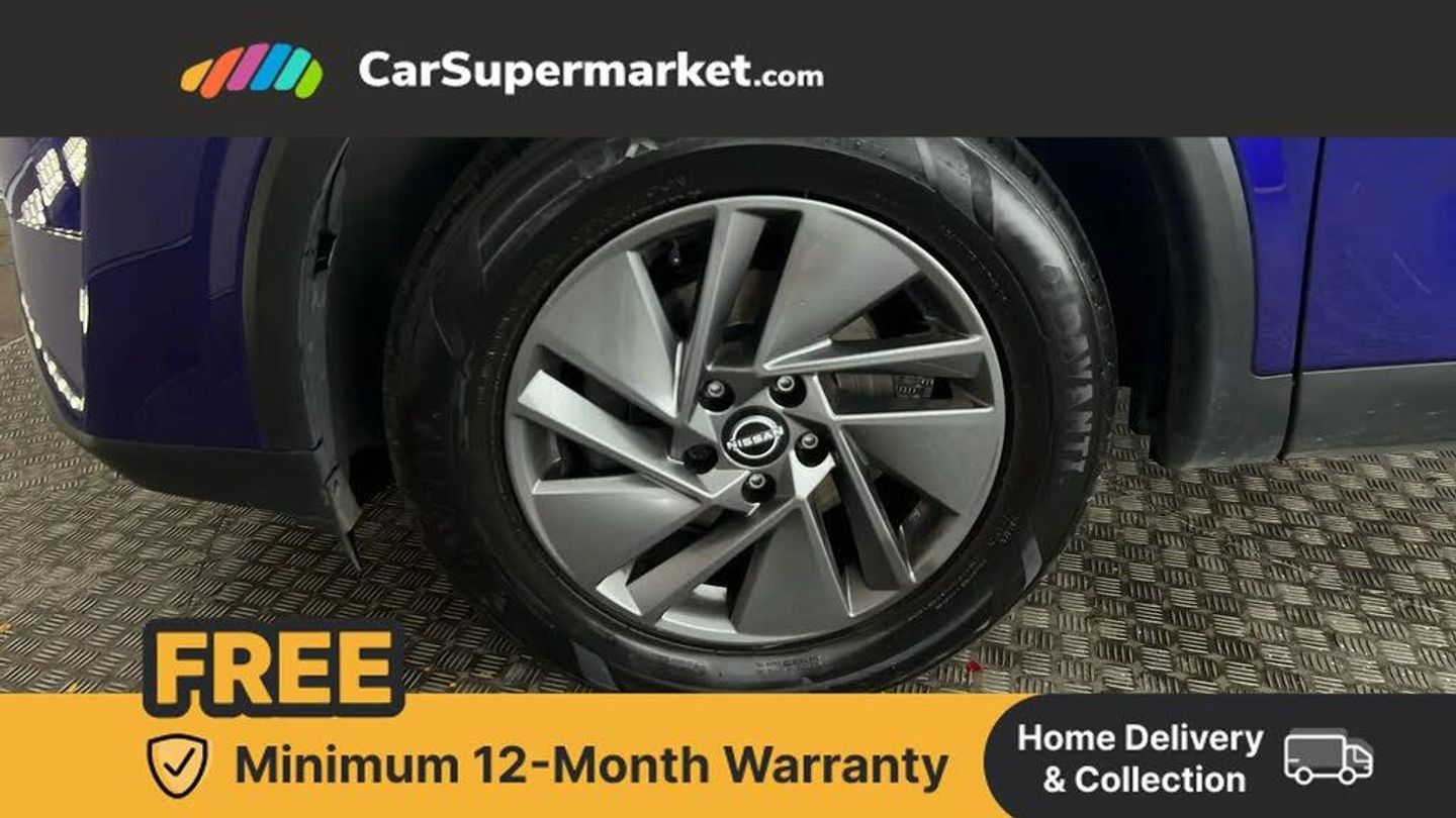 7" High definition full colour TFT screen combimeter,Android auto/Apple CarPlay (Wired),Blind spot warning,Drive modes (sport, normal, eco),Electric speed sensitive power steering,Emergency and breakdown call,Idle stop/start system,Intelligent Cruise control (ICC),Intelligent driver alert system,Intelligent forward collision warning,Intelligent lane intervention,Lane departure prevention,Lane departure warning system,Maximum speed limiter,Nissan connect 8" touchscreen infotainment system,Push button starter,Rear cross traffic alert,Rear parking sensors,Rear view camera,Traffic sign recognition with legal speed adjustment,Trip computer,6 speakers,AM/FM audio system with DAB,Bluetooth audio streaming,Front USB connections (Type-A and Type-C),Auto dimming rear view mirror,Auto rear wiper when reversing,Automatic hazard signal with emergency stop signal,Body colour mirror caps,Body coloured door handles,Bodyside mouldings,Chrome side window finisher,Door handle with button,Electric auto folding door mirrors,Electrically adjustable and heated door mirrors with LED turn indicator,Follow me home headlights,High beam assist,Intelligent auto headlights,LED 3rd brake light,LED daytime running lights,LED Headlights,LED rear lights,One touch front and rear electric windows with remote opening and closing,Partially body coloured bumpers,Rear reversing light (bulb lighting),Rear roof spoiler,Rear side wing doors,Shark fin antenna,Splash free rain sensing wipers,Three blink turn signal,12v power socket in dashboard and luggage,2x Rear coat hooks,3 bench rear seats in 2nd row,3 rear headrests,4 folding assist grip,6-way manually adjustable driver's seat,60/40 split folding rear seat bench,Centre console storage tray,Chrome interior door handles,Cloth monoform upholstery,Driver and front passenger sunvisors with illuminated vanity mirrors,Dual zone automatic climate control with pollen filter,Electrically adjustable lumbar support for driver,Front and rear door storage,Front centre console and armrest,Front cupholders x 2,Front door with bottle holders,Glovebox with light,Hard trunk cover,Height adjustable driver's seat,Height adjustable front headrests,Height adjustable passenger seat,Luggage space lighting,Manually adjustable passenger (slide recline + lifter),Multifunction steering wheel,Passenger seat back pocket,Rear armrest with 2 cupholders,Rear door bottle holders,Single front passenger seat,Steering wheel gearshift paddles,Steering wheel switches,Sunglasses holder,Tilt/telescopic adjustable steering wheel,Two rear isofix child seat anchorage points with top tether,3x3 point rear seatbelt pretensioners + load limiters,ABS with EBD and brake assist,Active brake limited slip,Auto hold function,Child locks on rear doors,Curtain and front side, far side airbags,Driver and passenger airbags,Driver, passenger and 2nd row rear seat belt reminder,Electronic parking brake,Front seatbelt pretensioners + load limiters,Height adjustable front seatbelts,Hill start assist,Intelligent blind spot intervention,Intelligent front emergency braking with pedestrian, cyclist recognition and junction assist,Intelligent rear automatic braking,Tyre pressure monitoring system,Vehicle dynamic control,Capless fuel filler,Engine immobiliser,Intelligent Key,Remote central door locking with deadlocking,Thatcham Cat.1 alarm,Interior instrumental panel A finisher,17" Alloy wheels,Tyre puncture repair kit