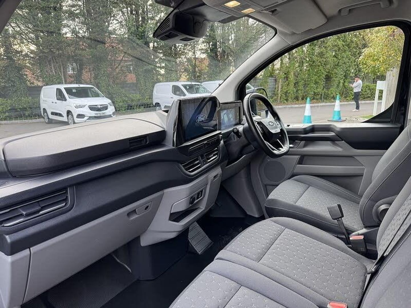 Agate Black,Cloth - Barlo Style 1 - Black Onyx, 13in Touchscreen, 5G Embedded Modem, Rear USB Port, SYNC 4, Reversing Camera Pack - DAT Pack 2, Trip Computer, Tyre Pressure Monitoring System - TPMS, Washer Tank Level Warn Lamp, 16in Alloy Wheels - Sparkle Silver, Body Colour Rear Bumper, Body Coloured Exterior Mirror Finish, Bodyside Mouldings - Body Colour, Bumper - Body Colour Front Bumper, Door Handles - Body Colour, Dual Power Mirrors - Auto-Power Fold and Heated, Electric Windows - Power Front with Driver-Passenger One-Touch, Ford Easy Fuel System, Front Splash Guard, Front Windshield Defroster - Quick Clear, Locking Wheel Nuts, Rear Splash Guards, Spare Wheel - 16in Steel, Tinted Glass Complete, Automatic Headlights with Rain Sensing Wipers, Daytime Running Lamps, Fixed DSS LED Headlamps with Auto High Headlamps, Automatic Air Conditioner, Bottle Holder - Twin 2 litre Bottle Capacity - Facia-Mounted, Comfort Dual Passenger Seat Pack, Courtesy Light, Full Height Polypro Interior Trim Panels, Full Metal Bulkhead, Headlining - Cab - Moulded, Hinged Rear Cargo Door, Interior Grab Handle with Drivers Sunglasses Holder, Interior LED Lights, Kerbside Side Load Door, LAC - Load Adaptive Control, Load Compartment - Tie Down Loops x6, Lockable Glovebox, Moulded Load Floor Liner, Sensico Gear Shift Knob, Sensico Steering Wheel, Steering Column - Rake and Reach Adjustment, Storage - Drivers Side Storage Compartment on Facia Top, Storage - Front Door Map Pockets, Storage - Underseat Stowage Compartment, Super Bright Load Compartment Lights, Tool Kit, Power Assisted Steering, 2 Remote Keys, ABS - Anti-lock Braking System, AECS NO SMS - Roll Detect 2G, Alcohol Interlock, Drivers Airbag, EBA - Emergency Brake Assist, EBD - Electronic Brakeforce Distribution, Emergency Brake Light Flashing, Engine Immobiliser, ESC - Electronic Stability Programme, Front Seat Belts with Pre-Tensioners, Hill Start Assist, HLA - Hill Launch Assist, Inclination Anti-Theft Sensor, Keyless Entry, Mechanical Parking Brake, Passenger Airbag, Power Door Deadlocks - Double Locking, Regular Van Standard Unlocking, RSC - Roll Stability Control, Seat Belts - 3-Point Diagonal Inertia Reel - All Seats, Thatcham Category 1 Alarm, Traction Control - TC, Trailer Sway Control