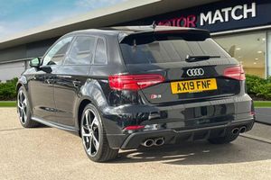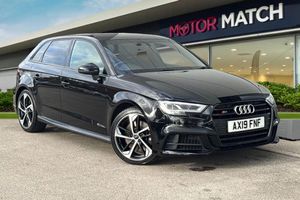 Alloys, Aux In, Audi Connect, Light and Rain Sensor, Bluetooth, Cruise Control, DAB, AC/Climate, Heated Seats, Advanced Safety, Isofix, Sat Nav, Parking Sensor;Experience the perfect fusion of power, precision, and practicality with this 2019 Audi S3 2.0 TFSI Black Edition Sportback S Tronic quattro Euro 6 (s/s) 5dr, finished in sleek black. Powered by a 2.0-litre turbocharged petrol engine producing 300 PS and paired with the seamless S Tronic automatic transmission, it delivers thrilling acceleration and confident handling through Audi?s renowned quattro all-wheel drive system. The exterior exudes athleticism, featuring LED headlights, a black styling package, and 18-inch 5-arm trapezoid Audi Sport alloy wheels in gloss anthracite black with diamond-cut detailing. The S Design body styling, silver mirror caps, and privacy glass complete the assertive look, while the sharp body lines give it a sporty yet refined presence on the road.The practical boot offers generous space for everyday use, and its split-folding rear seats make it easy to carry bulkier items when needed. Whether it?s luggage, shopping, or sports gear, the S3 combines dynamic performance with real-world functionality. Inside, the heated front sport seats with S embossing and brushed aluminium inlays create a driver-focused cockpit. The flat-bottomed leather multifunction steering wheel and S3-branded dials reinforce its performance spirit, while the Bang & Olufsen sound system brings a concert-like audio experience to every drive. Technology is at the heart of this model, with MMI Navigation, Audi Smartphone Interface, Bluetooth connectivity, and Audi Connect Inf...