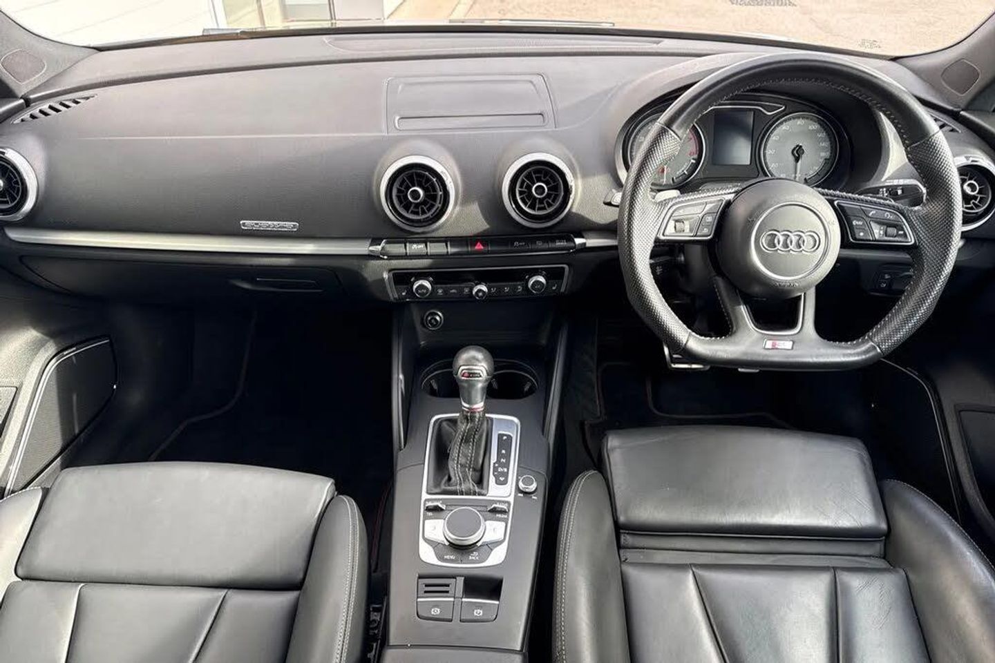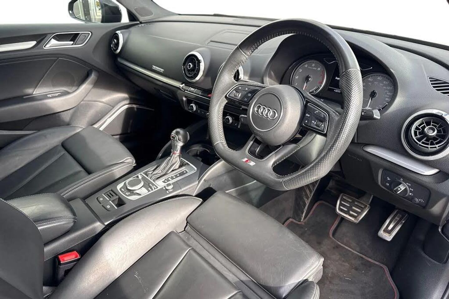 18in Alloy Wheels - 5-Arm Trapezoid Design Audi Sport in Gloss Anthracite Black - Diamond Cut Finish,2 x USB Charging Ports and 1 x AUX-IN,6-Airbag System with Knee Airbag for Driver,Aluminium Interior Elements,Anti Theft Locking Wheel Bolts,Anti-Theft Alarm,Audi Beam,Audi Connect,Audi Connect Infotainment Services - 3 Month Trial,Audi Drive Select,Audi Smartphone Interface,Auto-Dimming Rear-View Mirror with Light and Rain Sensor,Bang and Olufsen Sound System,Black Styling Package,Bluetooth Interface,Brake Calipers Painted in Black with S3 Logo at the Front,CD Drive,Cloth Headlining,Colour Drivers Information System - DIS,Cruise Control,DAB Digital Radio,Door Mirrors - Black Housing,Door Mirrors - Electrically Adjustable and Heated with Integrated LED Side Indicators,Dual-Zone Electronic Climate Control,ESC - Electronic Stabilisation Control inc ABS - ASR and EDL,Electric Windows - Front and Rear,Electromechanical Parking Brake,Exhaust Tailpipe - Dual-Branch Oval Twin with Chrome Finish,First Aid Kit and Warning Triangle,Front Centre Armrest,Front and Rear Floor Mats,Headlights Washers,Heated Front Seats,Heated Windscreen Washer Jets,Hill Hold Assist,ISOFIX Child Seat Mounting and Top Tether,Illuminated Door Sill Trims with S Logo,Inlays - Matt Brushed Aluminium,Instrument Dials with S3 Logo,LED Headlights with LED Rear Lights and Dynamic Rear Indicators,LED Interior Light Package,Lashing Points in Luggage Compartment,MMI Navigation - SD Card Based,MMI Radio Plus with 7in Electrically Retractable Colour MMI Screen,Manual Seat Adjustment,Non-Smoking Package,Pedals in Stainless Steel,Privacy Glass,Progressive Steering,Rear Parking Sensors,Remote Central Locking with 2 Fold Away Keys,S Design Body Styling,S Sport Suspension,Seat Belt Monitoring,Split Folding Rear Seat Bench - 60-40 or Fully,Steering Wheel - 3-Spoke Leather-Multifunction-Flat Bottomed-Shift Paddles,Storage Compartments in the Door Side Trims-Centre Console-Under Drivers Seat,Storage Package,Tool Kit,Tyre Pressure Warning Light,Tyre Repair Kit