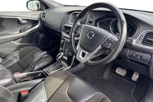 Isofix, Advanced Safety, Park Assist, Sat Nav, Alloys, Bluetooth, Cruise Control, DAB, AC/Climate;Discover a perfect blend of performance, safety, and Scandinavian design with this Volvo V40 2.0 D4 R-Design Nav Plus Auto Euro 6 (s/s) 5dr, finished in sleek grey. Powered by a 2.0-litre diesel engine producing 190 PS and paired with an automatic transmission, this premium hatchback delivers confident acceleration, impressive refinement, and outstanding efficiency. Optional extras including the Winter Pack, Dark Tinted Windows, Rain Sensor, Tempa Spare Wheel and Jack, and R-Design Sports Upholstery further enhance comfort, convenience, and confidence on the road. The exterior showcases LED headlights, silver matt mirrors, and 17-inch Ixion III diamond-cut alloy wheels for a sporty edge. Its R-Design styling, gloss black diffuser, and twin exhausts give the car a bold, athletic finish, while dark tinted windows add a touch of privacy and elegance. The boot is both versatile and practical, with split-folding rear seats for extra flexibility. Added convenience comes from the Winter Pack, featuring heated seats and a heated windscreen, while Electronic Climate Control ensures a comfortable temperature year-round. Inside, the R-Design Sports seats in Charcoal provide outstanding support, complemented by Stealth Aluminium trim and ambient theatre lighting that elevate the cabin?s contemporary feel. The 12.3-inch Active TFT digital driver display keeps vital information at your fingertips, while the leather steering wheel with R-Design logo ensures a connected driving experience....