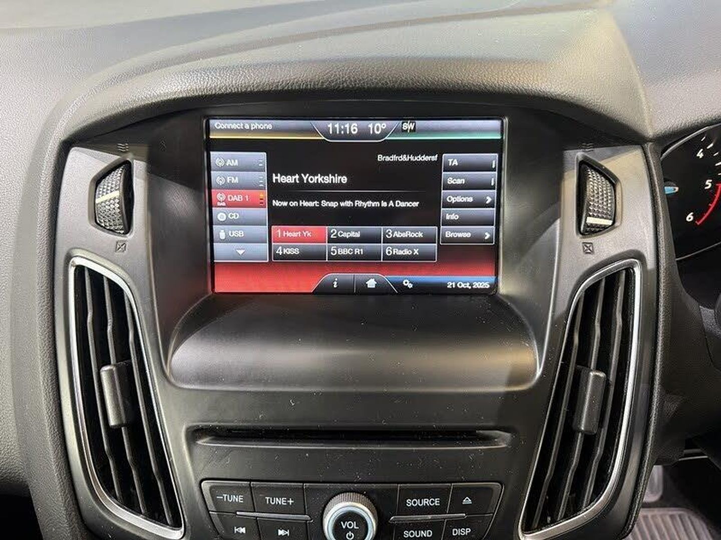 12V Power Socket - Front, 4.2in TFT Display, AUX Connection, Bluetooth Handsfree Phone System, Colour TFT Instrument Cluster Display, Emergency Assistance, Ford AM-FM CD Audio System, Ford DAB Audio System, Ford SYNC, Speakers - x6, USB Connection, Ford Eco Mode - Driver Information System, Fuel Computer, Tyre Pressure Monitoring System, Voice Control - Audio, 16in Alloy Wheels - 5x2 Spoke, Black Headlight Bezel, Body Colour Bumpers, Body Colour Exterior Mirrors, Chrome Finish on Upper Door Line, Door Handles - Body Colour, Door Mirrors - Electrically Operated and Heated, Door Mirrors with Integrated Indicators, Electric Windows - Front with One Touch Lowering Drivers, Front Upper Grille - Chrome Finish Surround, Heated Front Windscreen, Locking Wheel Nuts, Mini Steel Spare Wheel, Rear Spoiler - Body Colour, Front Fog Lights, Headlights - Halogen, Air Conditioning - Manual, Armrest - Centre Console, Height-Adjustable Mounts on Front Seat Belts, MyKey, Pollen Filter, Premium Centre Console, Seats - 60-40 Rear Split Back, Seats - Drivers Height Adjustment, Seats - Drivers Lumbar Support, Seats - Front Sports, Steering Column - Rake and Reach Adjustment, Steering Wheel - 3 Spoke - Leather Trimmed, Steering Wheel - Audio Controls, Power Steering, Suspension - Sports, ABS - Anti-lock Braking System, Airbag - Front Passenger, Airbags - Curtain, Airbags - Curtain Rear, Airbags - Side Impact, Anti-Submarining Seat Bases, Drivers Airbag, EBA - Emergency Brake Assist, EBD - Electronic Brakeforce Distribution, Emergency Brake Warning, ESP - Electronic Stability Programme, Ford Easy-Fuel Capless Refuelling System, Front Seat Belts with Pre-Tensioners, Hill Start Assist, IPS - Intelligent Protection System, ISOFIX - Child Seat Attachments, Pedals - Collapsible, Remote Central Locking, Steering Column - Collapsible, Thatcham Category 1 Alarm, Traction Control - TC, TVC - Torque Vectoring Control