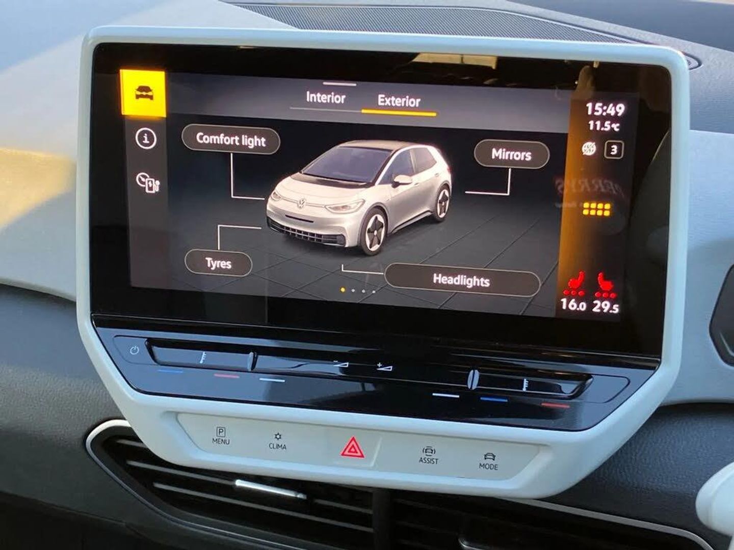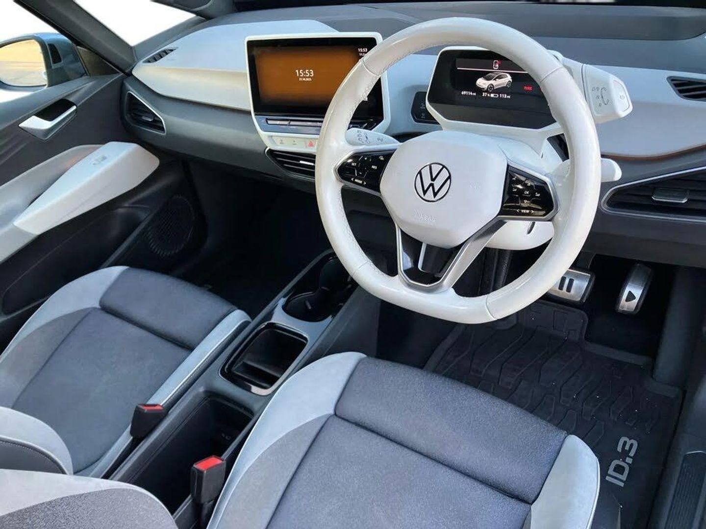 10" touch screen infotainment system,5.3" Digital dashboard display,Adaptive cruise control including Front Assist, radar sensor controlled distance monitoring system, City emergency braking system,speed limiter,BLIS (Blind spot information system),Bluetooth connectivity,Car2X technology,Driver alert system,Driver profile selection with personalisation,E-call,Front and rear parking sensors,ID. Light,Lane assist,Natural voice control,Power assisted speed sensitive steering,Remote tailgate unlocking,Security and service (SOS buttons),Trip computer,Wireless app connect,Exterior e-sound,Mode 3 32-amp / 7.2kW charging cable for charging at public charge points,DAB Digital radio,Touch control,Black roof,Body colour door handles,Body coloured bumpers,Body coloured door mirrors with intergrated indicators,Front and rear electric windows,Heated rear window,LED 3rd brake lamp,Rear side wing doors,Rear wiper,Separate LED daytime running lights which also perform the indicator function,Variable front intermittent wipers,2 seat bench in 2nd row,Artvelours cloth upholstery,Folding rear seats,Front headrests,Isofix child seat anchor points,Leather steering wheel,Multi-function steering wheel,Pause and play pedals,Pockets and smartphone pockets in seats,Reach + rake adjustable steering column,Rear headrests,Single front passenger seat,Style plus seats,Assistance plus pack - ID.3,Comfort plus pack - ID.3,Design pack - ID.3,Infotainment plus pack with wireless smartphone charging - ID.3,Interior style plus pack - ID.3,NCAP pack - ID.3,2 rear 3 point safety belts,Anti-lock braking system (ABS),Driver and passenger airbags,Electronic parking brake with auto hold,Electronic Stability Programme (ESP),Front and rear curtain airbags,Front passenger airbag deactivation,Rear door child safety locks,Side airbags,Traction control with on/off button,Tyre pressure monitor,Alarm,Immobiliser,Remote central locking,Tool kit,Tyre repair kit