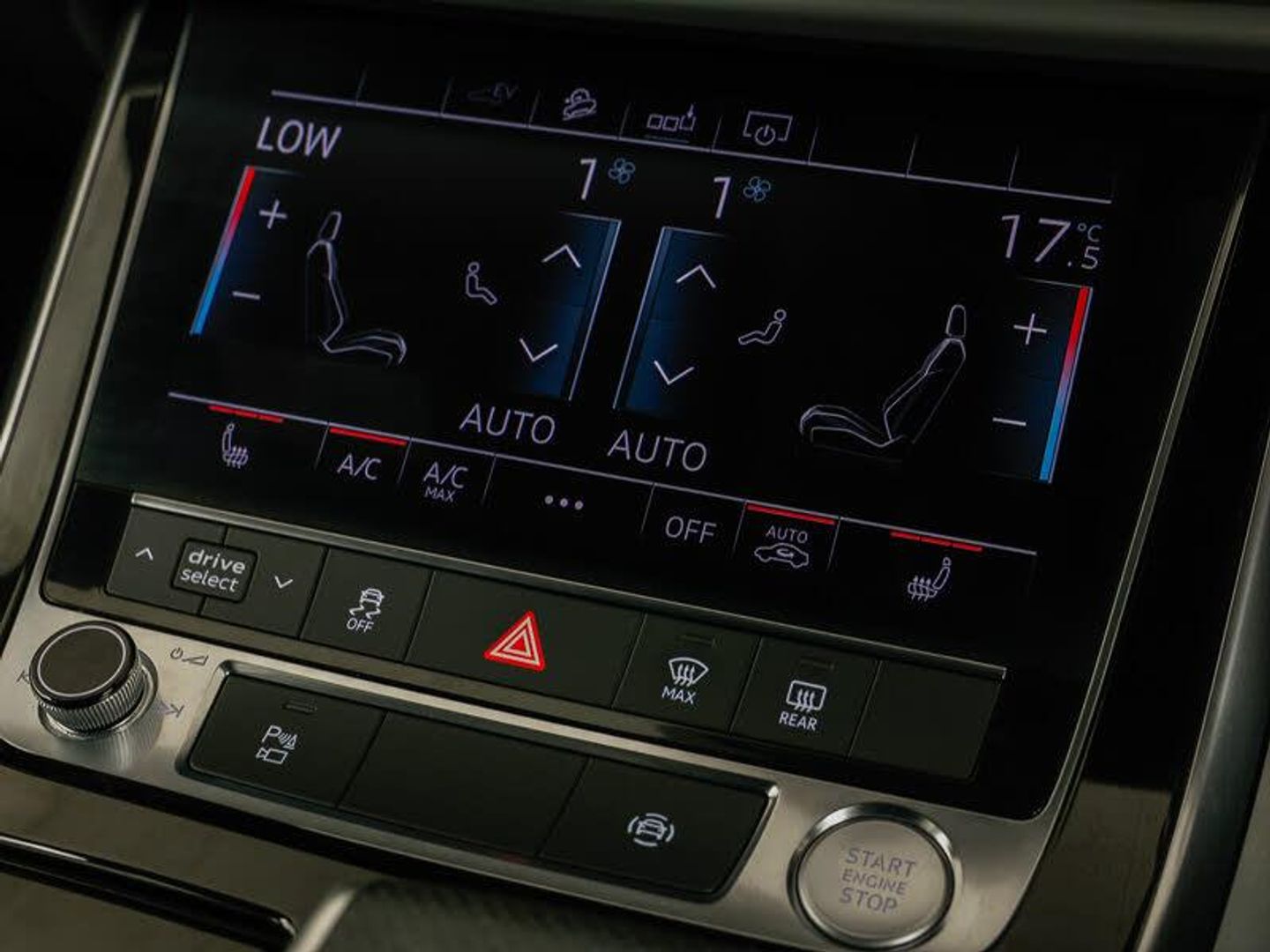 MMI navigation plus with MMI touch screens includes 10.1" and 8.6" screens with haptic feedback, Audi virtual cockpit - 12.3" high-resolution LCD display with fully customisable instrument cluster, Audi phone box with wireless charging, Parking system plus - front + rear sensors, Power operated tailgate, Rear view camera, Smartphone interface includes wireless Apple carplay/Android Auto, Audi drive select (Auto, Comfort, Dynamic, Efficiency, Individual, Off-road and All road), DAB digital radio module, Audi sound system with 6 channel amplifier, 180 watt amplifying capacity and 10 loudspeakers including subwoofer, 3 zone automatic air conditioning including remote pre-conditioning, Heated front seats, Audi matrix LED headlights with dynamic front and rear indicators, 20" 5 spoke turbine design aluminium alloy wheels