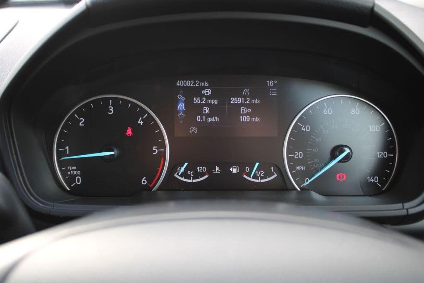 Cruise control, Easy fuel capless refuelling system, PAS, SYNC 3 nav system with DAB radio, 8" screen, voice control, emergency assistance, Apple car play/Android auto, 2x USB, Ford pass connect, Trip computer, 'Quickclear' heated windscreen/heated washer jets, Auto dimming rear view mirror, Automatic headlights, Body colour door handles, Body coloured bumpers, Electrically adjustable and heated door mirrors, Front door threshold plates, Front fog lights, Front grille with chrome trim surround, Headlamps with LED day running lights, Headlight levelling control, Power foldable door mirrors with puddle lights, Power front and rear windows with global opening/closing, Rain sensing front wipers, Rear wiper, 12V socket in front and rear, 60/40 split rear seats, 7 shade adjustable ambient lighting, Centre console with sliding front armrest, Cooled glovebox, Courtesy lights with map reading light, Driver seat height/lumbar adjust, Driver's side glovebox, Driver/passenger sunvisors and lidded vanity mirrors, EATC - Electronic Auto Temperature control, Folding grab handles, Footwell ambient lighting, Front head restraints, Front seat back map pockets, Front/rear floor mats, Groove cloth/leather upholstery, Illuminated glovebox, Illuminated luggage compartment, Isofix system on outer rear seats, Leather gear knob and handbrake grip, Leather steering wheel with audio controls, Luggage compartment carpet, Overhead console with sunglasses holder, Rake adjustable rear seats, Reach + rake adjustable steering column, Rear headrests, Steering wheel with chrome inserts, Storage drawers under front seats, Tie down hooks, Variable boot floor, Immobiliser, MyKey system, Remote central locking, Thatcham 1 volume sensing alarm, X-Pack, Front Parking Sensors, Ford Keyless Entry and Keyless Start, Groove Fabric-Salerno Leather-Vinyl - Ebony Black