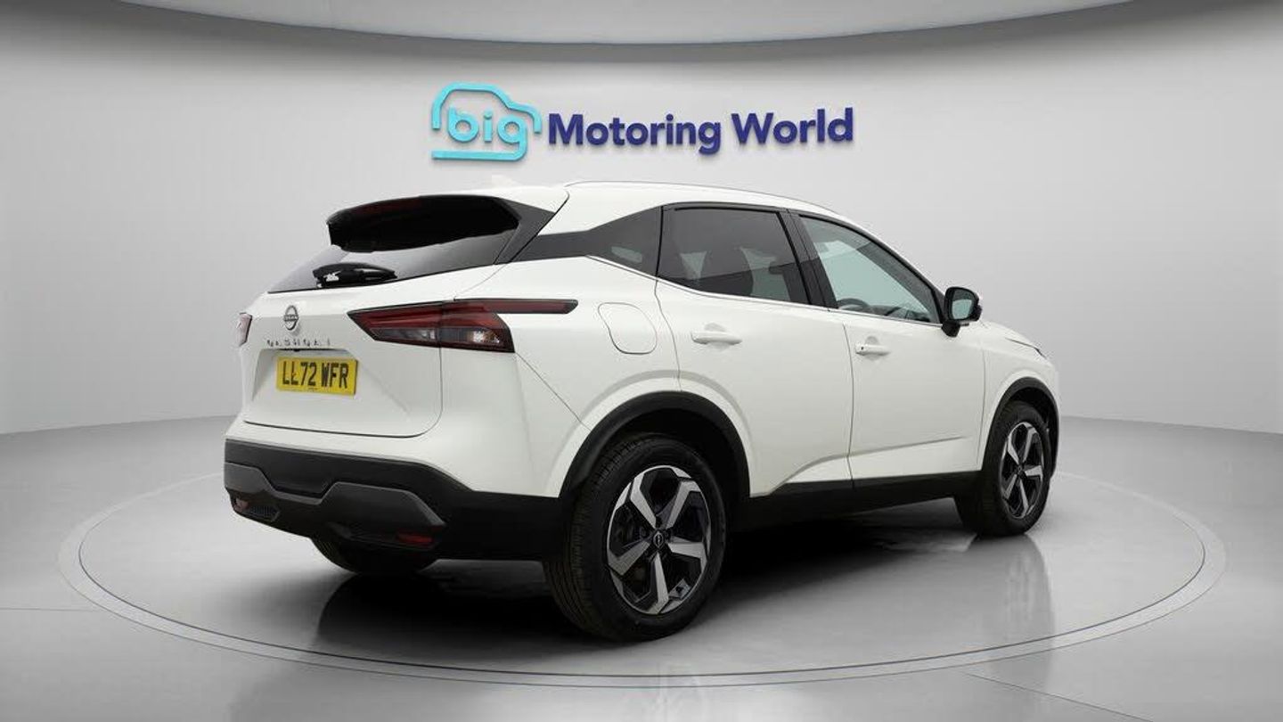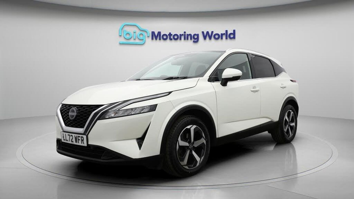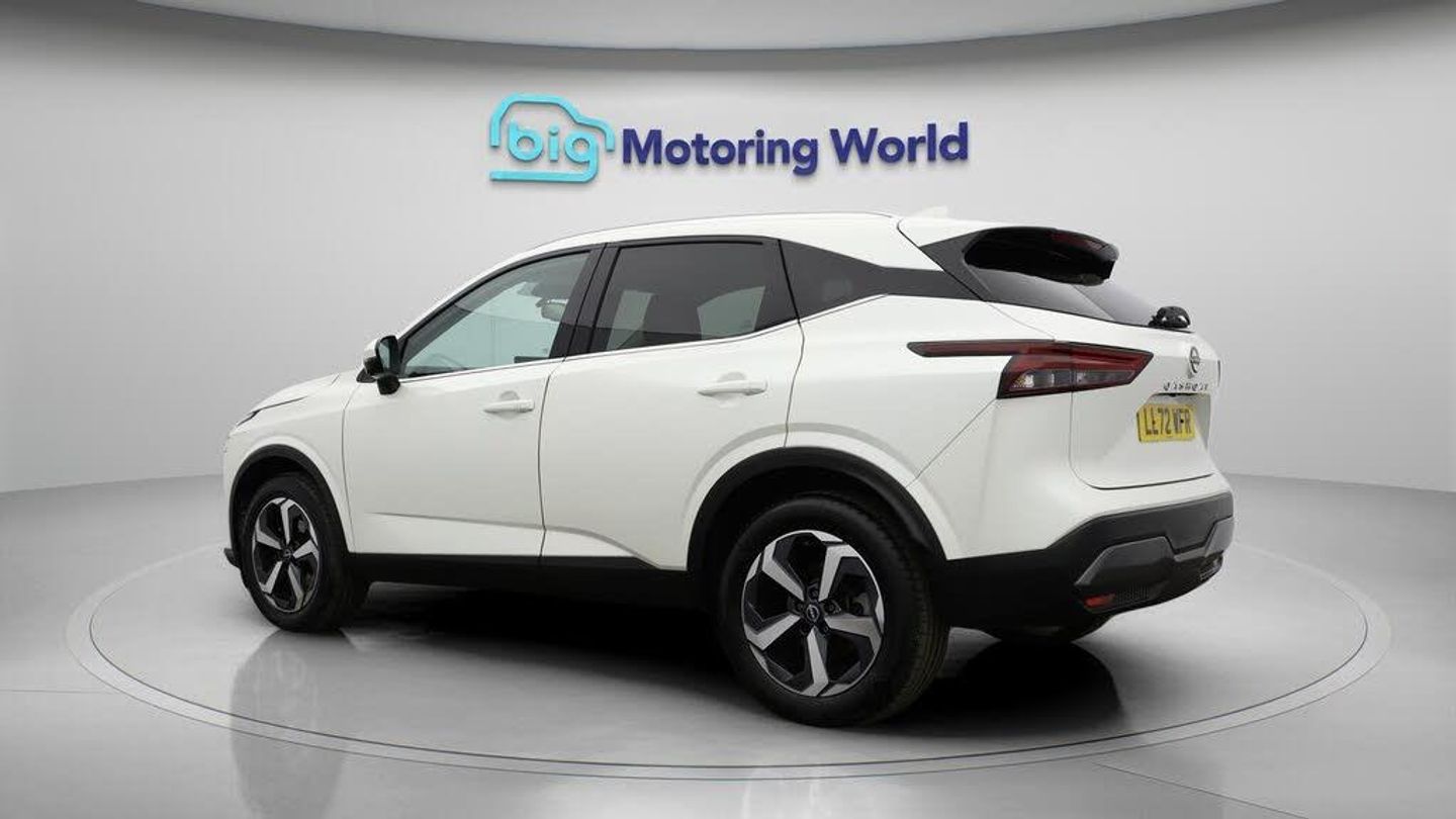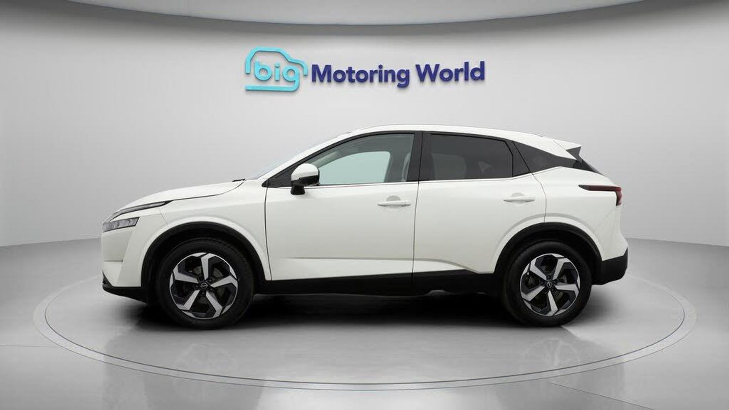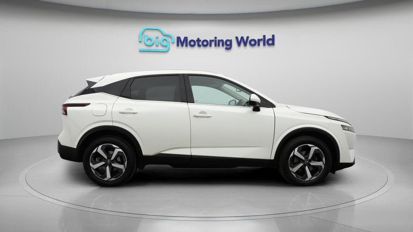 18'' alloy wheels,Satellite Nav-Our Nissan Qashqai is finished in White. Specification includes a range of fantastic features including 18'' alloy wheels, Satellite Navigation, Privacy Glass, Rear View Camera, Bluetooth, Blind Spot Assist, Parking Sensors, Ambient Lighting, 2 Zone Climate, Cruise Control Specification information is supplied by CAPHPI and may vary to the actual car. This data does not form any part of a buying contact. Please check specification prior to purchase in-store. The MOT is valid until October 2026, visit bigmotoringworld.co.uk for more photos, a 360 tour, service history and a free HPI report.Were BIG on peace of mind and this White Nissan Qashqai has completed our comprehensive 200 point inspection and passed all checks. Its ready for you to drive away with immediate collection in-store. We include a 90-day warranty as standard plus an option to extend for up to 3 years.Reserve this car exclusively for you, safely and securely at bigmotoringworld.co.uk, with a fully refundable £99 deposit. Test drive before you buy, with no commitment, no hassle and a completely haggle free experience. Still searching and want to see thousands more cars? We are BIG on choice with over 8000 cars to choose from.Visit our award winning web site bigmotoringworld.co.uk.Were Big Motoring World and were BIG on what matters to you.
