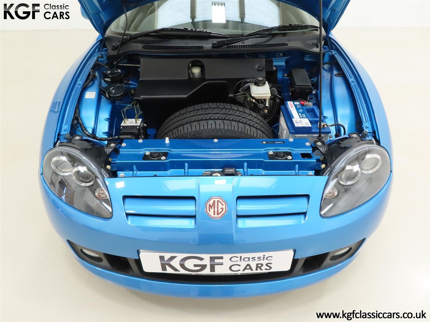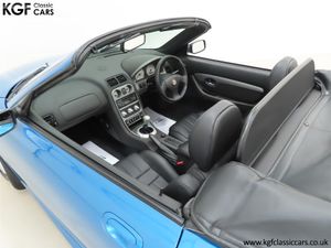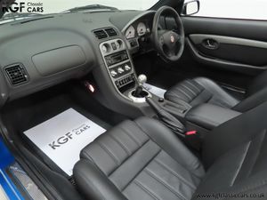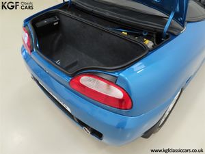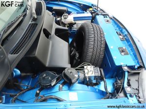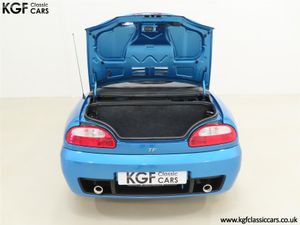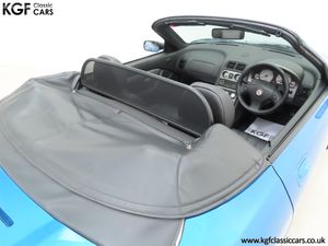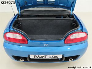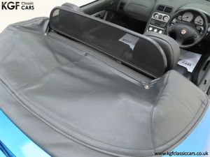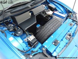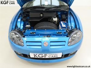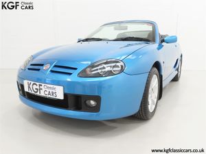 This stunning late MG Rover built TF is finished in the rare and wonderfully vibrant colour of Sonic Blue Metallic, (Code JHG), a factory cost option. The paint finish is exceptional throughout and entirely commensurate with the low mileage covered by this pampered, garaged example. The superb underside is beautifully clean with PDI marking still visible and the original panels even display factory spot welds to the wheel arches. All door, boot and bonnet apertures are spotless. The durable woven acrylic fabric hood in pristine condition features the heated glass rear window as fitted to the later examples. All trim sections are excellent and the iconic MG octagon badges and Union Jack wing plates remain intact and bright. A truly outstanding example of this increasingly collectable car.