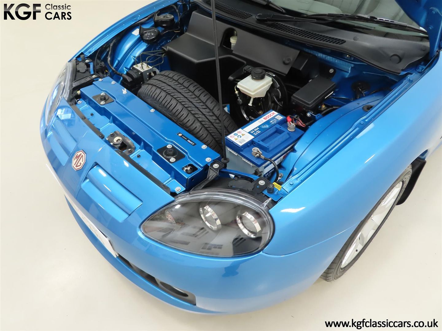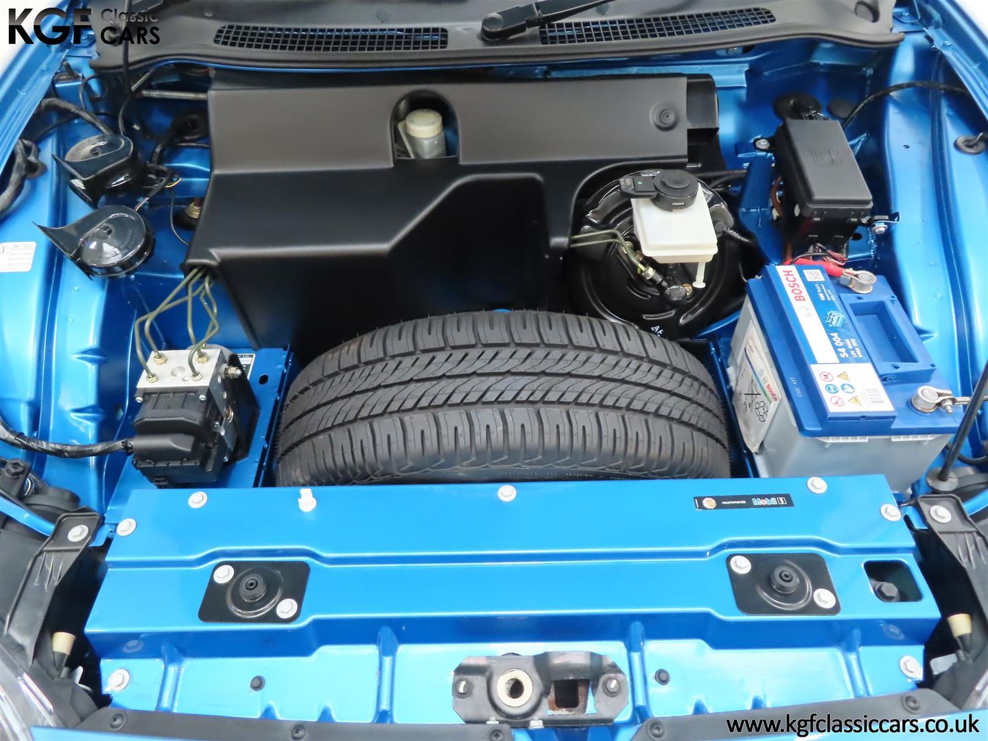 The factory fitted 15” V-spoke alloy wheels are immaculate with original MG badged centre caps. The front and rear tyres of size 185/55 R15 and 205/50 R15 respectively are matching recent replacement Toyo Proxes and the spare wheel with original Goodyear GT3 tyre is unused. The original jack and brace are stored in the leatherette bag. The braking system incorporates electronic anti-lock assistance and discs all-round, (ventilated front), to offer positive stopping power.