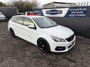 Peugeot 308 SW Active 1.6L BlueHDi 120 S&S in excellent condition inside and out with just 2 former keepers, service history and up to 88mpg. Fantastic specification including rear camera, Colour touchscreen satellite navigation, speed limiter, radar parking sensors, voice activation, Bluetooth telephone and music streaming, dual zone automatic air conditioning, stop/start technology, refrigerated glovebox, on board computer and rear privacy glass. - - As with all our cars this vehicle comes with a FRESH 12 MONTH MOT with ALL advisory work completed, fresh oil and filter service, 3 months parts and labour cover as standard and breakdown cover. Part exchange welcome, credit and debit cards accepted, free local delivery (25 miles) - - VEHICLE REG - LN18 FKH- - - COMPETATIVE FINANCE AVAILABLE - - Click the link below now to try our free finance calculator and personalise the payment options that best work for you! - - https://dappermotors.co.uk/finance - - This vehicle comes with: - Six speakers, Audio system with touch screen; radio receives AM/FM, digital and RDS colour screen, Remote controlled remote boot/hatch/rear door release, External temperature, Computer includes average speed, average fuel consumption, instantaneous fuel consumption and range for remaining fuel, Alloy trim on dashboard, alloy trim on centre console, alloy & leather gearknob and leather trim on handbrake, Load restraint, Central door locking: Operated by remote Includes windows and dead bolt, Seat upholstery: cloth and cloth, Leather covered multi-function steering wheel with tilt adjustment and telescopic adjustment, Refrigerated storage compartment in glove compartment, Ventilation system with digital display, air filter and active carbon filter, Secondary ventilation controls with digital display for front passenger, Automatic air conditioning with two climate control zones, Front and rear electric windows with one-touch on two windows, Satellite navigation system with colour, 9.7 inch display, touch screen, 3D and voice and traffic information, Floor console, Voice activating system includes audio player, includes phone and includes navigation system, MP3 player, Fixed storage box in the boot, Bluetooth includes phone connection and music streaming, Lifting gate rear door, Engine start/stop, Connections for USB (front), Single 9.7 inch touch sensitive multi-function display screen(s), Single 9.7 inch touch sensitive multi-function display screen(s), Internal Memory /HD, Selective catalytic reduction, Body colour power door mirrors; heated with integrated indicator lights, Space saver steel spare wheel, Rear radar-type parking distance sensors, Rear radar-type parking distance sensors, Halogen low beam halogen high beam headlights with ellipsoidal lenses, Front and rear side curtain airbags, Intelligent drivers airbag, intelligent passengers airbag with de-activation switch, Low tyre pressure indicator, Automatic hazard lights, Anti-theft protection with interior monitoring, Front-wheel drive, Turbo-charger, Fuel system: common rail diesel, Power steering: electric speed proportional with variable rack, Particle filter system, Speed limiter, Insurance: 21E, Flexible cargo area cover/rear parcel shelf