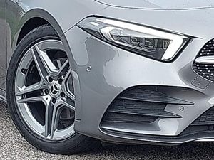 Mercedes me connect including emergency call system, accident recovery, breakdown and maintenance management, DYNAMIC SELECT with a choice of driving modes (ECO, Comfort, Sport and Individual), Attention assist, Active park assist with parktronic system including front and rear parking sensors, Active lane keep assist, 180 degree rear view camera with parking guidelines, 10.25" Digital instrument cluster display screen, Lowered comfort suspension, Mercedes-Benz advanced sound system - 225W, Privacy glass, Rain sensing windscreen wipers with two sensitivity settings, AMG bodystyling - Front apron with splitter in chrome, rear apron with chrome trim and chrome visible trim elements in tailpipe, Interior lighting - 64 colour Ambient lighting, Heated front seats, Seat comfort pack - A Class, Mirror package - A Class, Light and sight pack - A Class Premium/Premium Plus, Keyless Go, 18" AMG 5 twin spoke light alloy wheels in titanium grey with highsheen finish