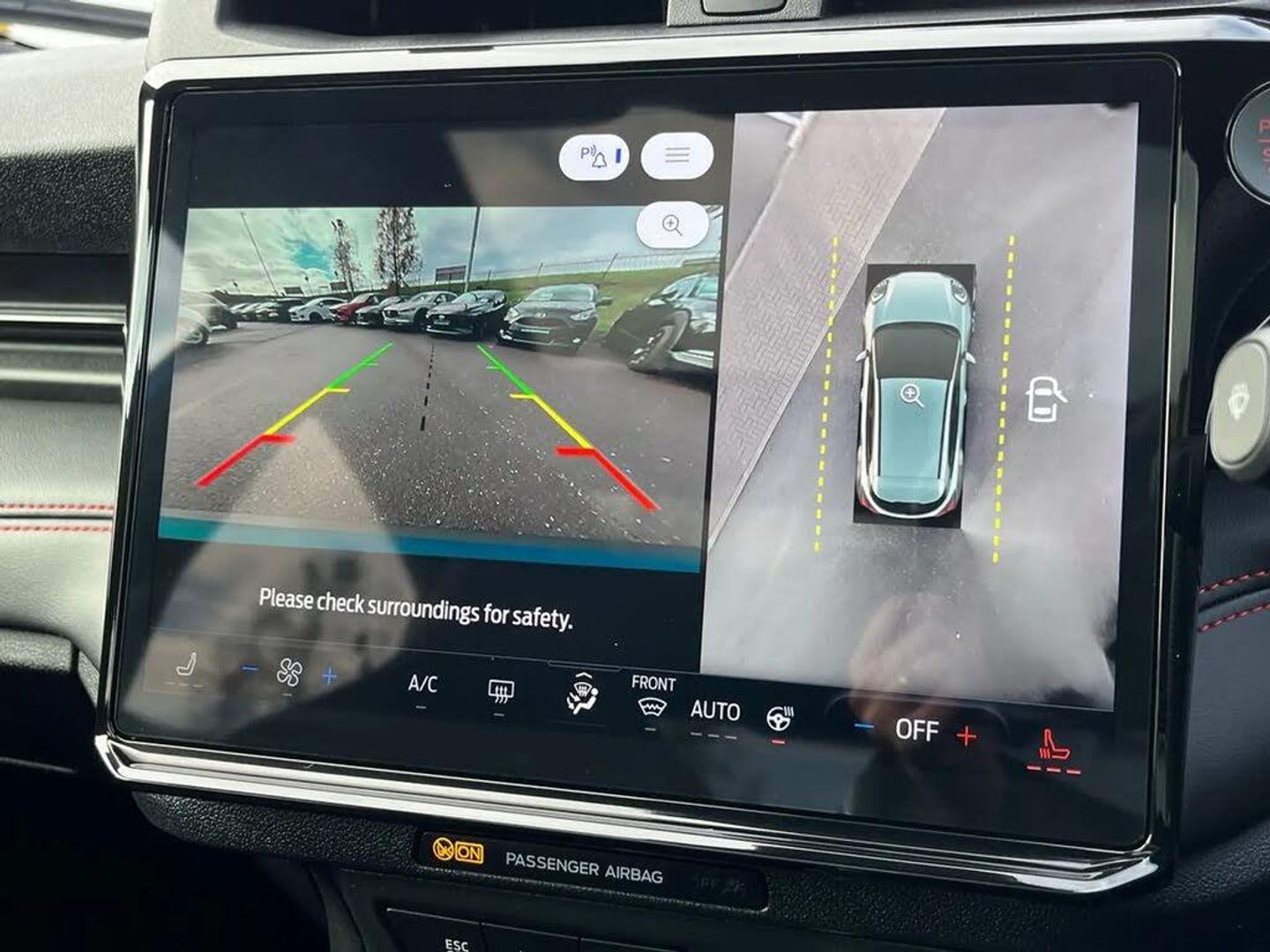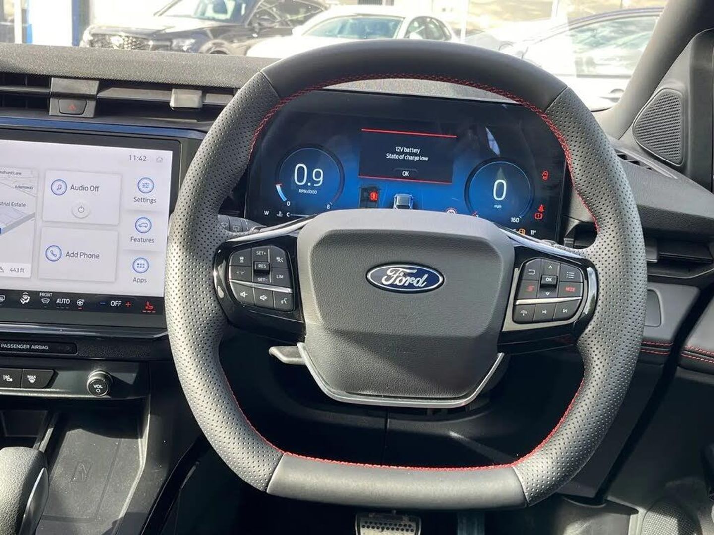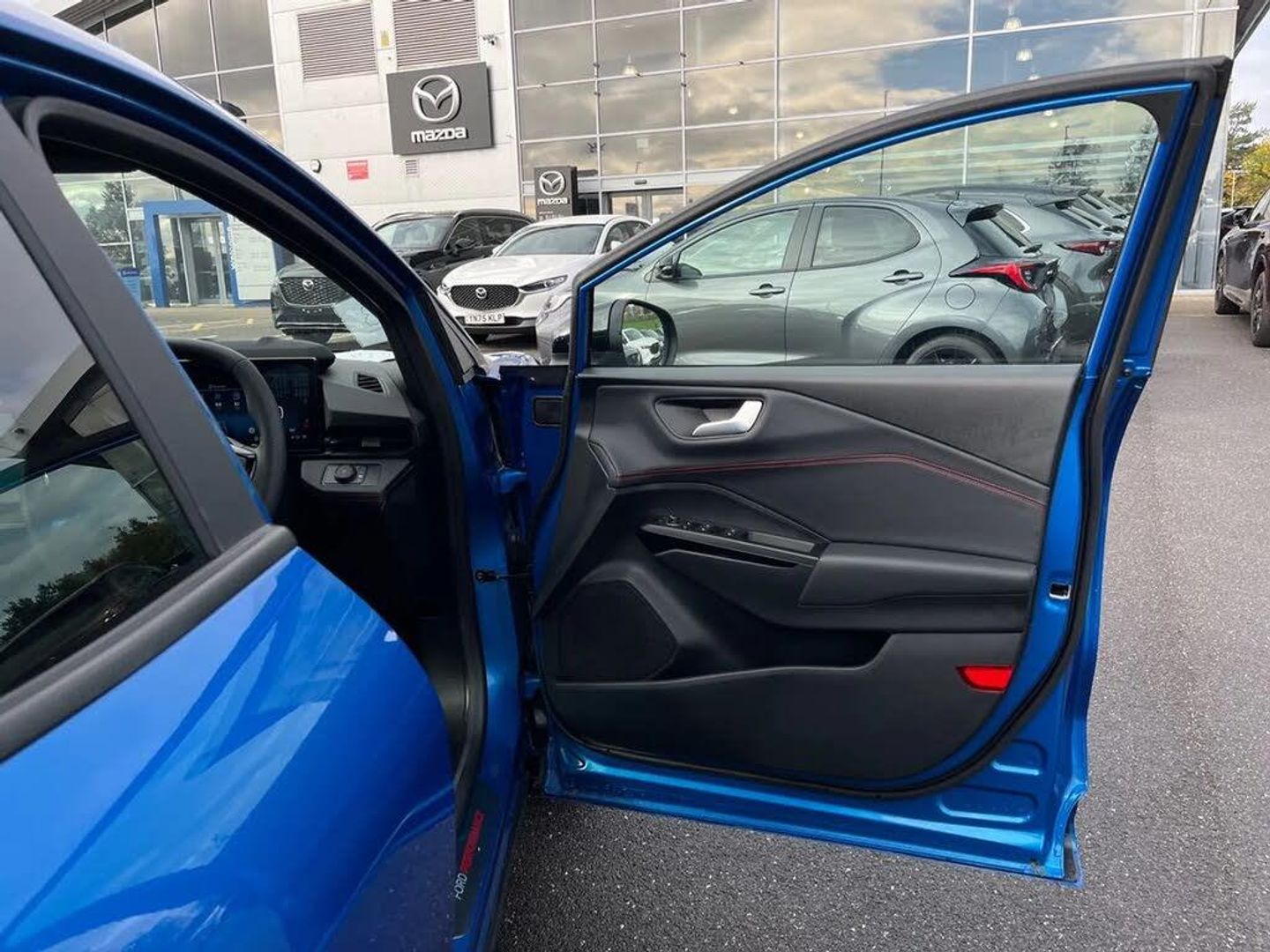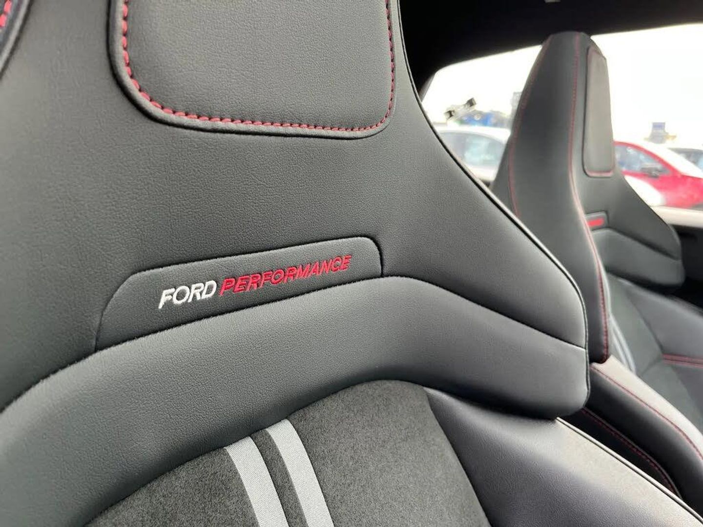 Driver impairment monitor,Emergency call service,Ford easy fuel,Full digital 12.8" instrument cluster,Lane keeping aid with lane departure warning,Power assist steering,Power lift tailgate,Selectable drive modes (normal, sport, eco, track),Speed sign recognition,ST suspension,12" landscape touchscreen display with wireless apple car play and android auto premium B&O audio system with 10 speakers,Ford pass connect and emergency assistance,Ford SYNC4 with connected navigation,Automatic headlights with rain sensing wipers and auto high beam,Front fog lamps,Glare-free matrix LED headlamps,LED daytime running lights,LED rear lamps,LED third brake light,Power foldable heated door mirrors with puddle lamps and puma logo protection,Quickclear heated windscreen,Rear privacy glass,Rear side wing doors,Rear wiper,Unique ST body styling kit including wing mirrors and Ford Performance embossed splitter,3 seat bench in 2nd row,Centre console with armrest and stowage,Electronic automatic temperature control (EATC),Ford megabox extended bootspace,Ford Performance seats premium synthetic leather upholstery,Front and rear head restraints,Front floor mats,Manual 6 way driver seat adjust with lumbar adjustment,Manual 6 way passenger seat with lumbar seat adjustment,Single front passenger seat,ST flat bottomed steering wheel with metal grey stitching,Driver assistance pack with blind spot information system - Puma for automatic transmission,Winter pack - Puma,3 rear seatbelts,Child safety lock,Electronic stability control (ESC) and hill start assist,Pre-collision assist with autonomous emergency braking, pedestrian/cyclist detection & post-collision braking,Red brake calipers,Tyre pressure monitoring system (TPMS),Keyless entry and power start button,Keyless start and wireless charger,Thatcham alarm,19" alloy wheels with magnetite dark finish,Tyre inflation kit,Panorama Roof - Power Opening,Premium Synthetic Leather - Synthetic Suede Inserts - Red Stitching - Black